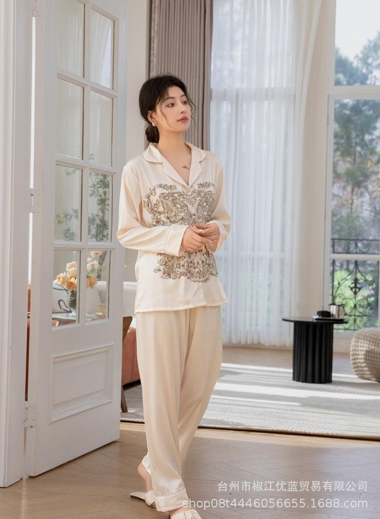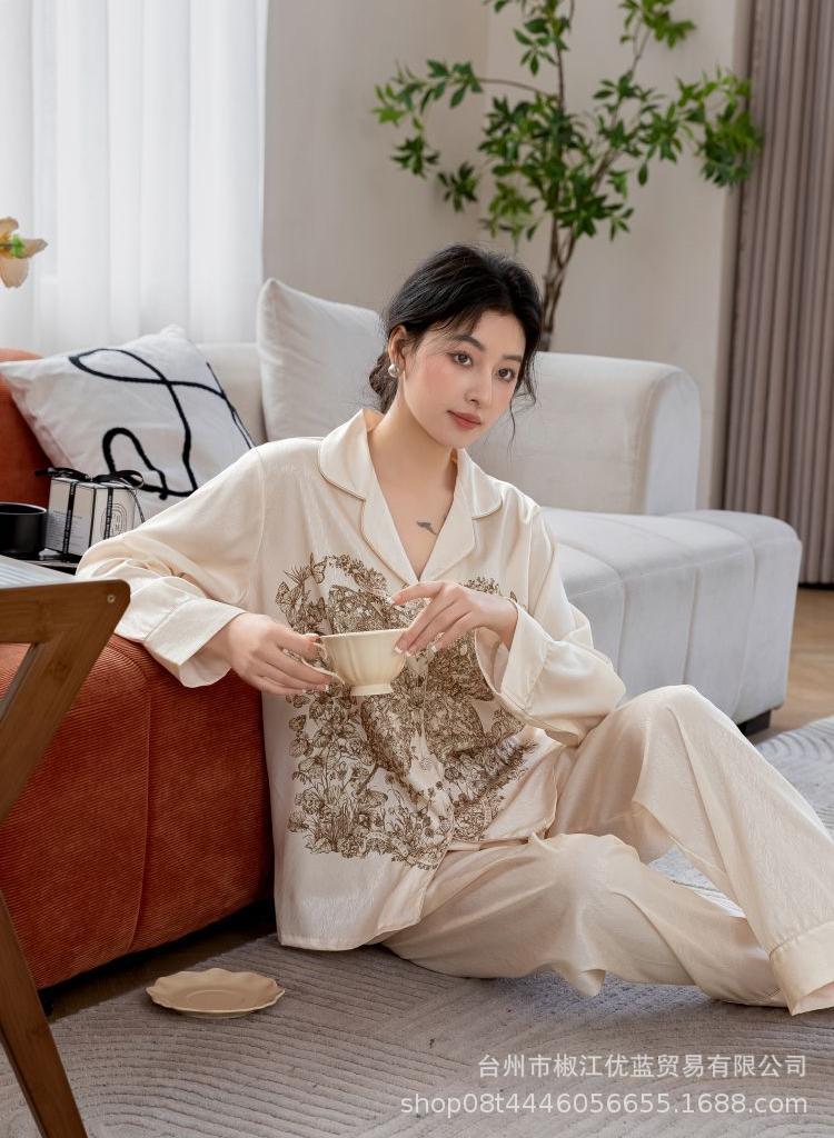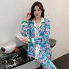 Ropa de Casa de Manga Larga Fina de Alta Gama Jungle Temperamento Adelgazante Red de Moda Se Puede Usar Afuera Pijama de Seda de Hielo para Mujer Verano