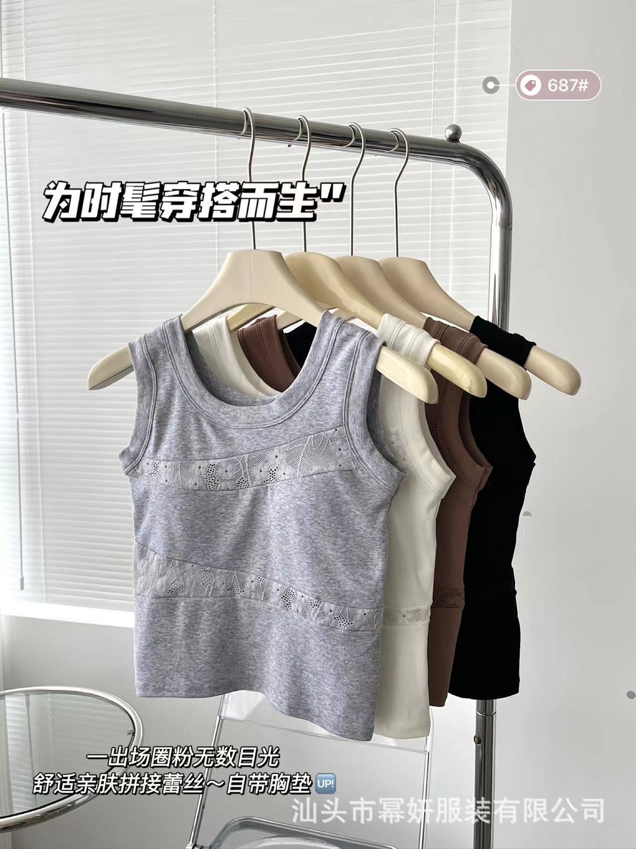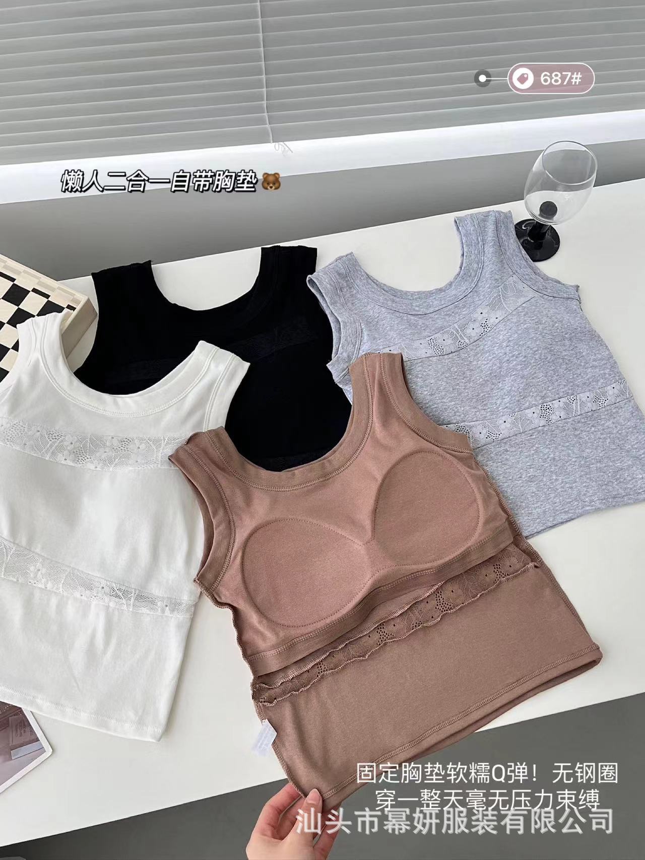 Deseo Puro Sensual Diseño Sensual Encaje Tirante Ancho Hermosa Espalda con Almohadilla en el Pecho Camisola Deseo Puro Top Ajustado