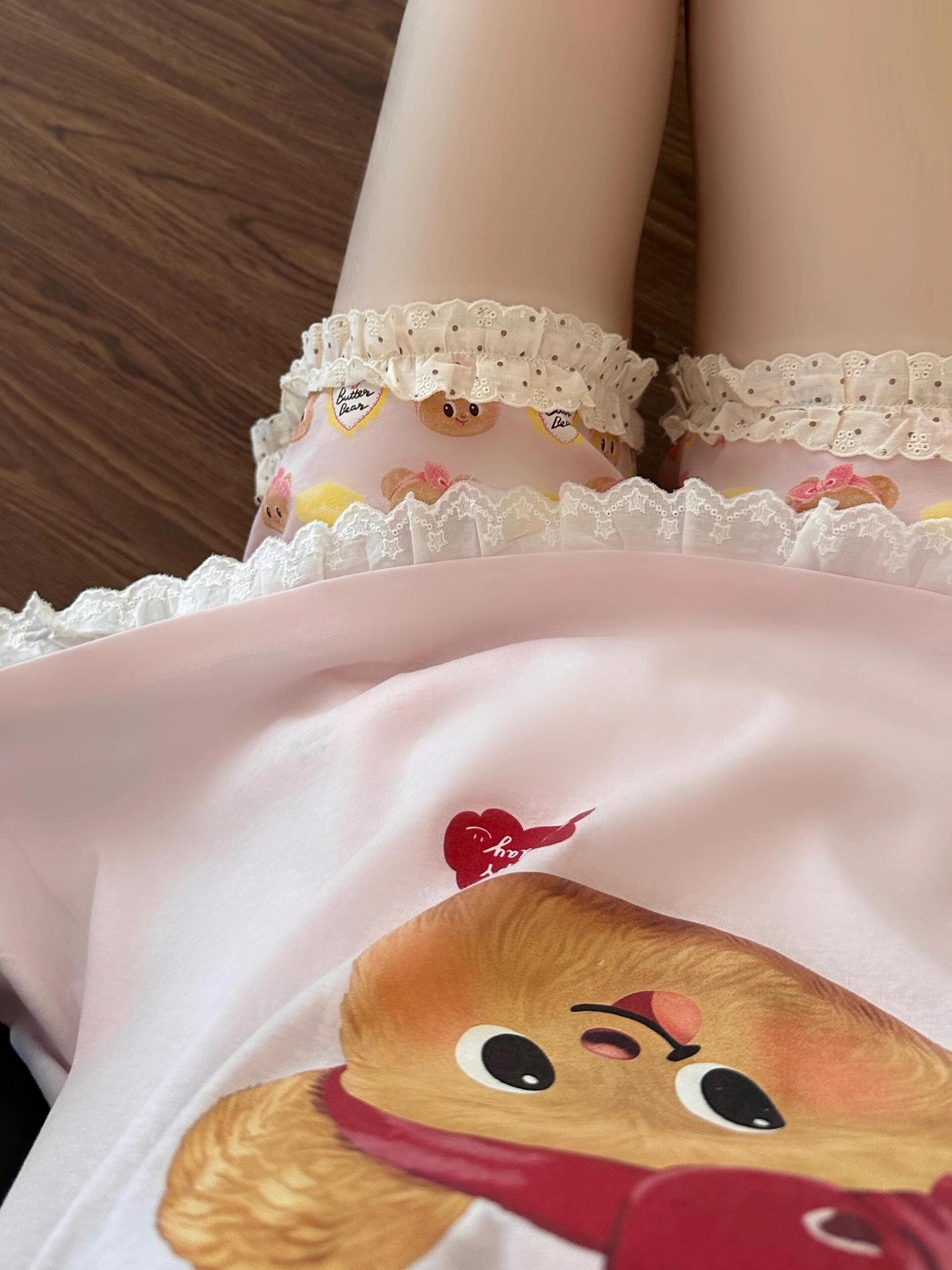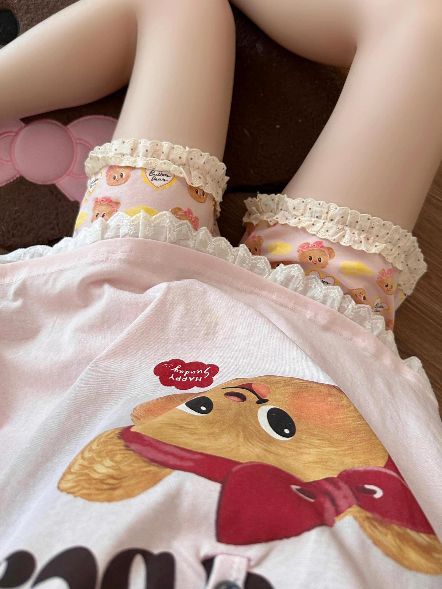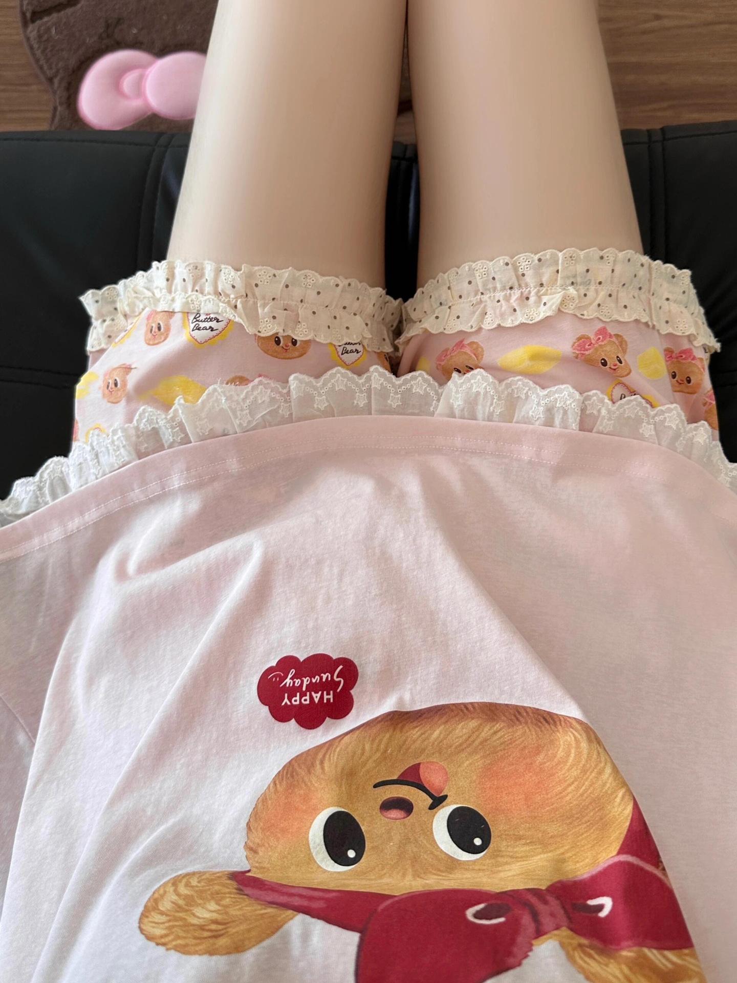 Pijama Lindo con Estampado de Oso de Mantequilla para Mujer Verano Nuevo Encaje Chaleco Shorts Ropa para el Hogar Conjunto de Dos Piezas