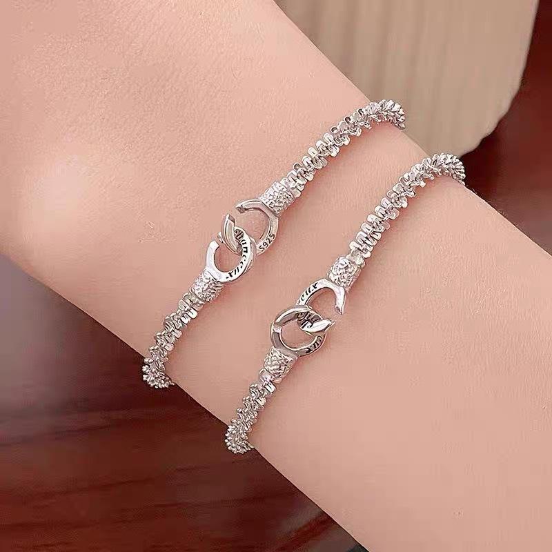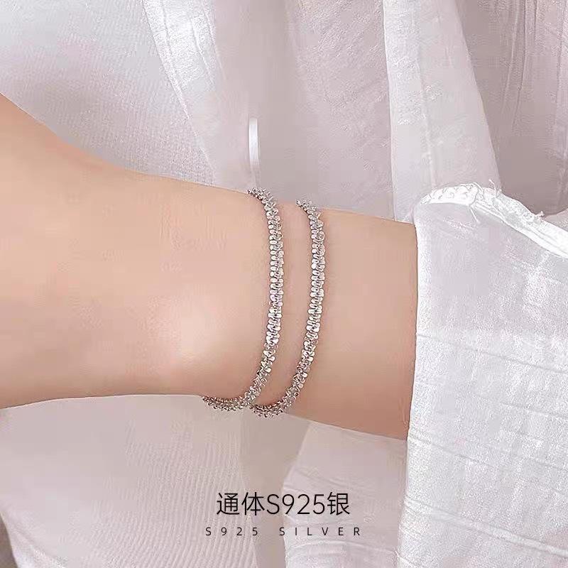 Pulsera Brillante de Plata S925, Diseño Simple de Nicho, Pulsera para Mujer con Cierre de Anillo Doble de Alta Gama, Pulsera de Lujo Accesible