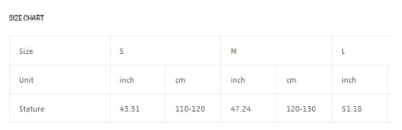 Children (3~8 years old, 100 ~ 140cm)