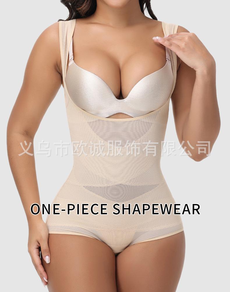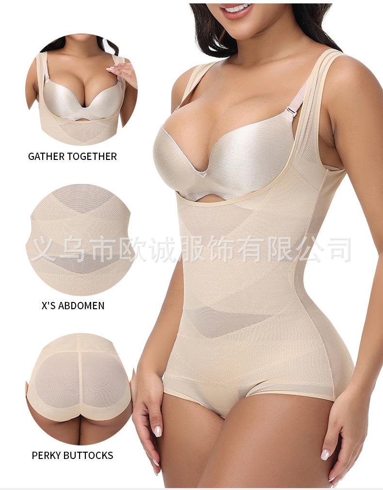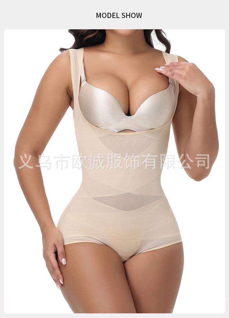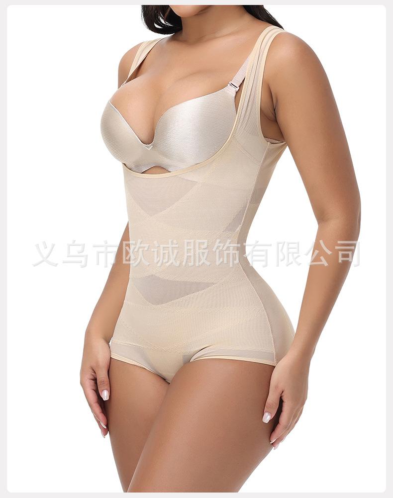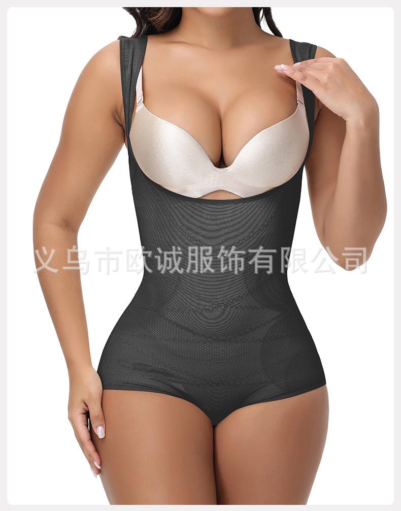 Europeo y Americano Talla Grande Malla Control de Abdomen Levantacola Chaleco Mono Entrepierna Abierta Moldeador Cuerpo Ajustado Corsé Íntimos de Nailon