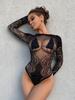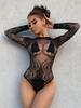 Mono de bikini sexy de manga larga con encaje de malla de diamantes de imitación de estilo europeo y americano, lencería sexy de jacquard tz695