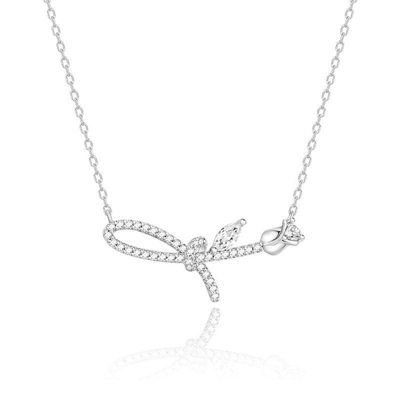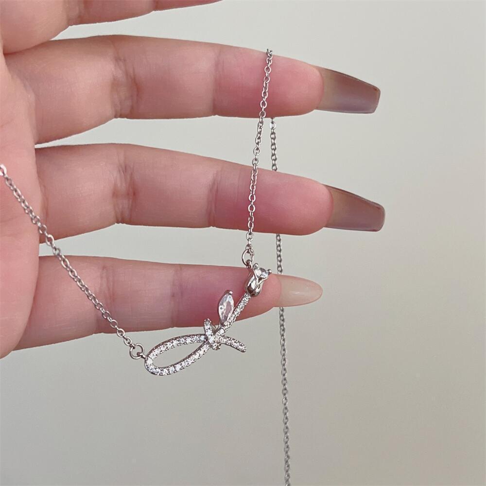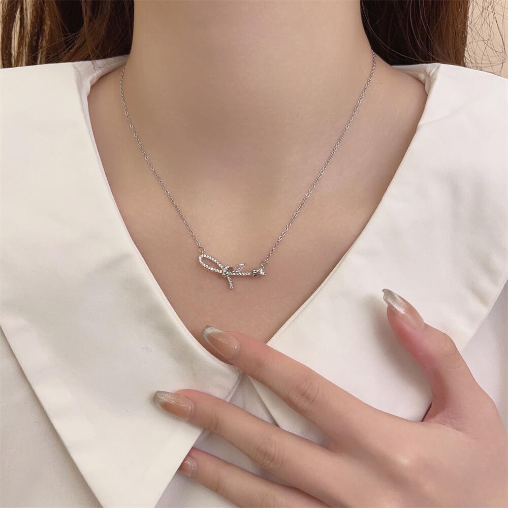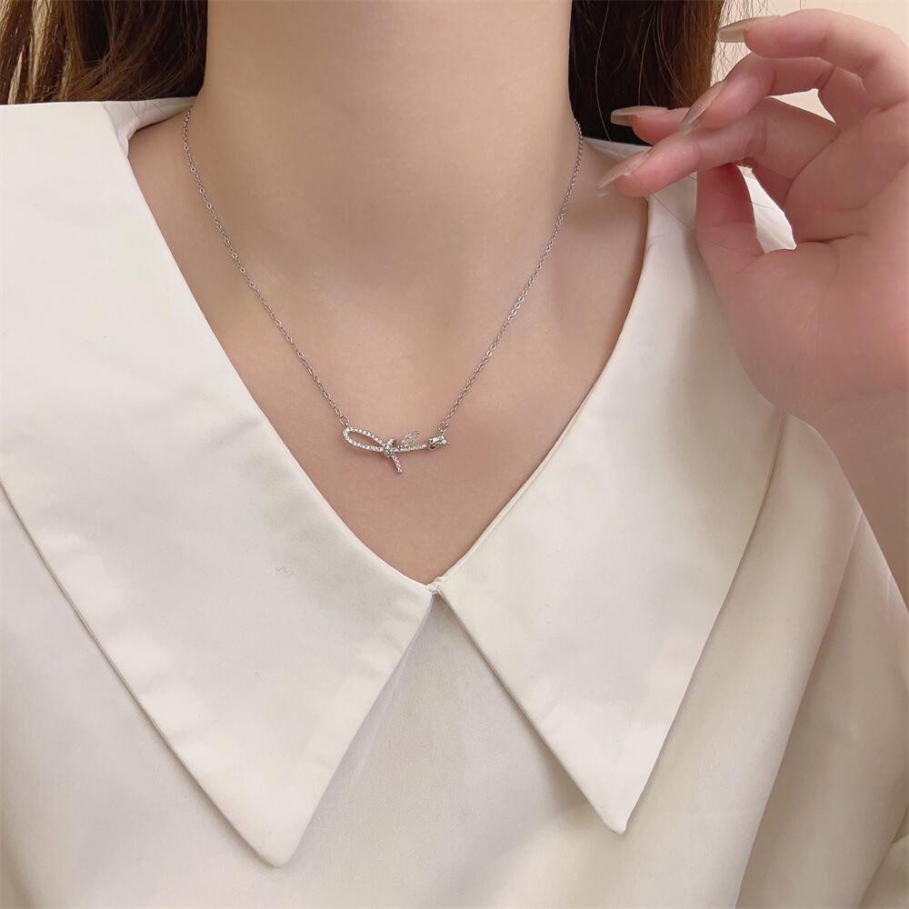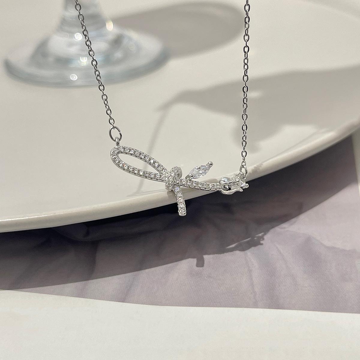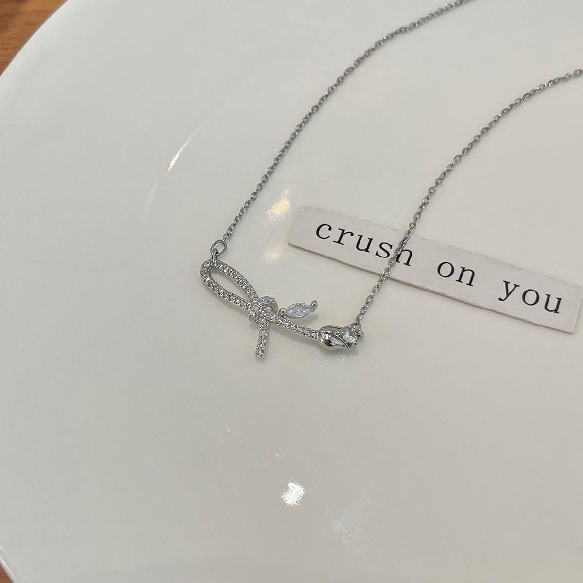 Collar de flor de circonita con microincrustaciones, dulce y fresco, con nudo rosa, cadena de clavícula con lazo para mujer, regalo