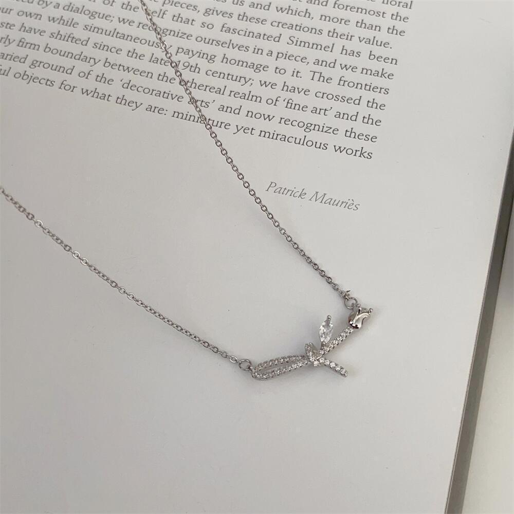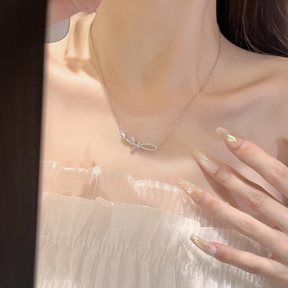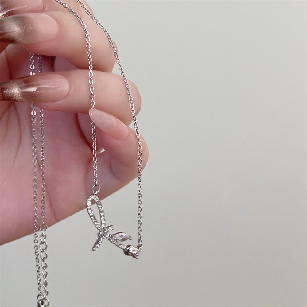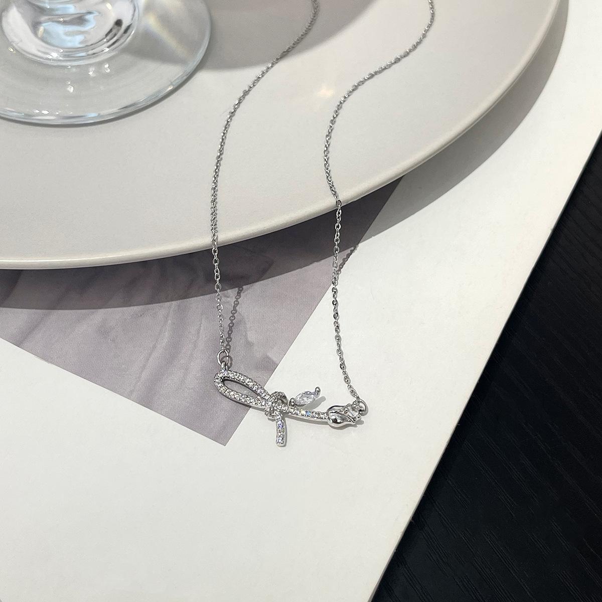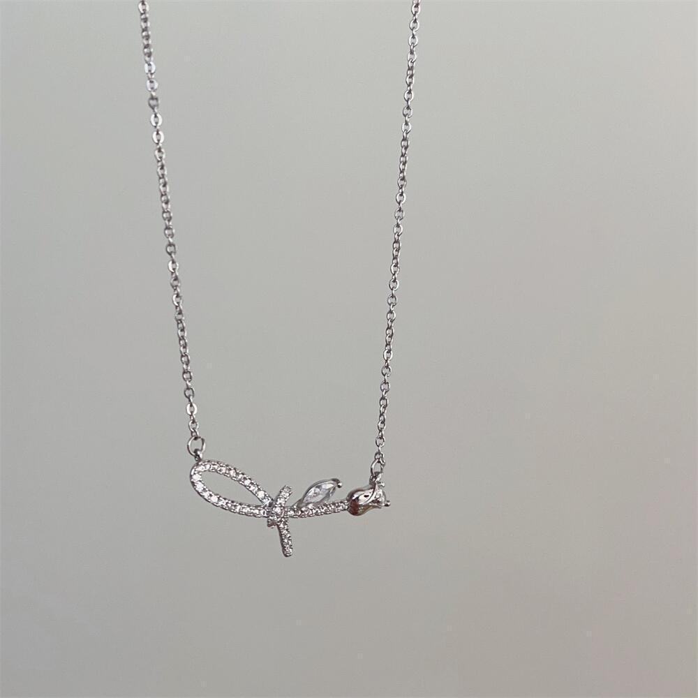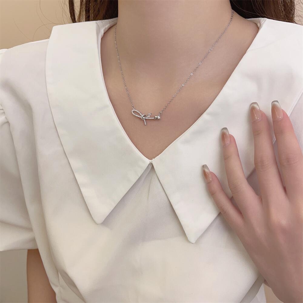 Collar de flor de circonita con microincrustaciones, dulce y fresco, con nudo rosa, cadena de clavícula con lazo para mujer, regalo