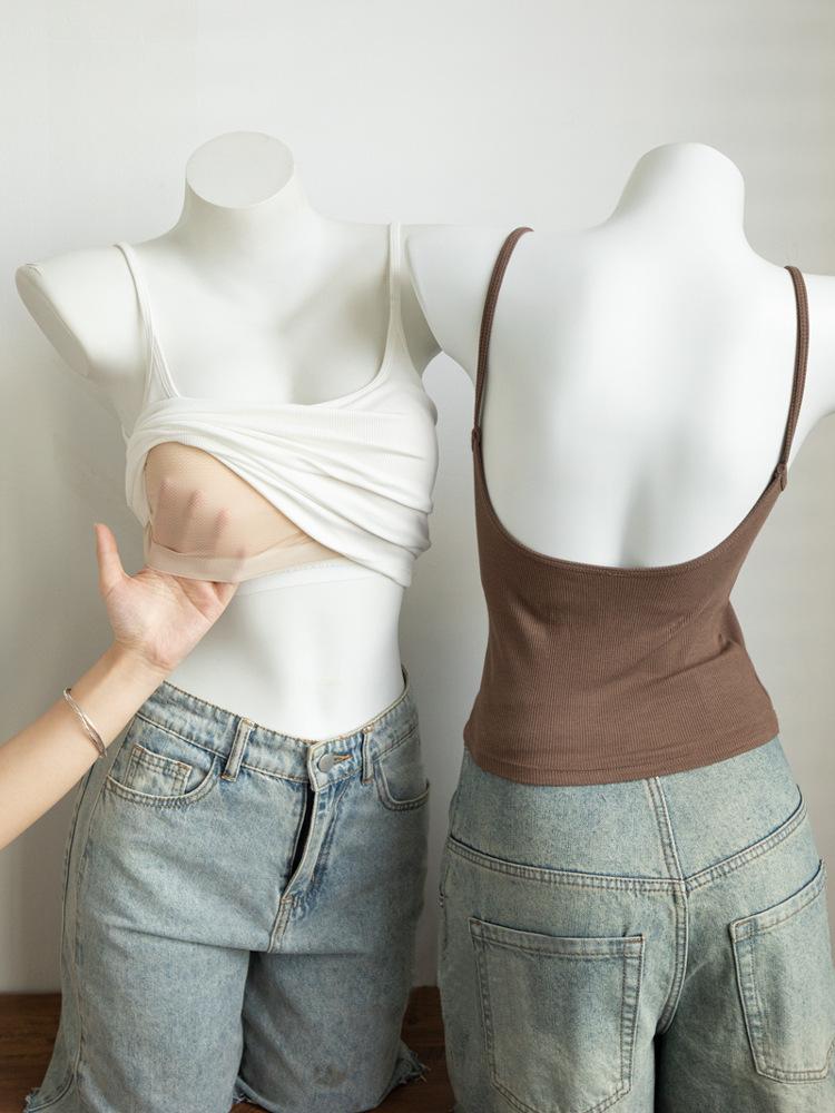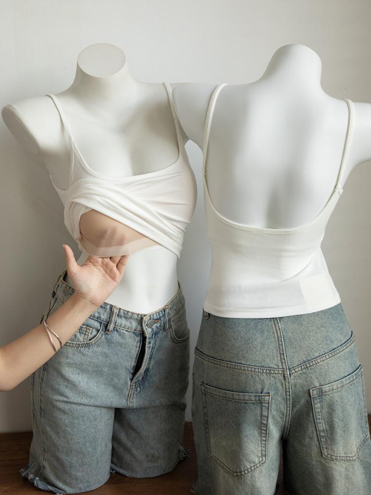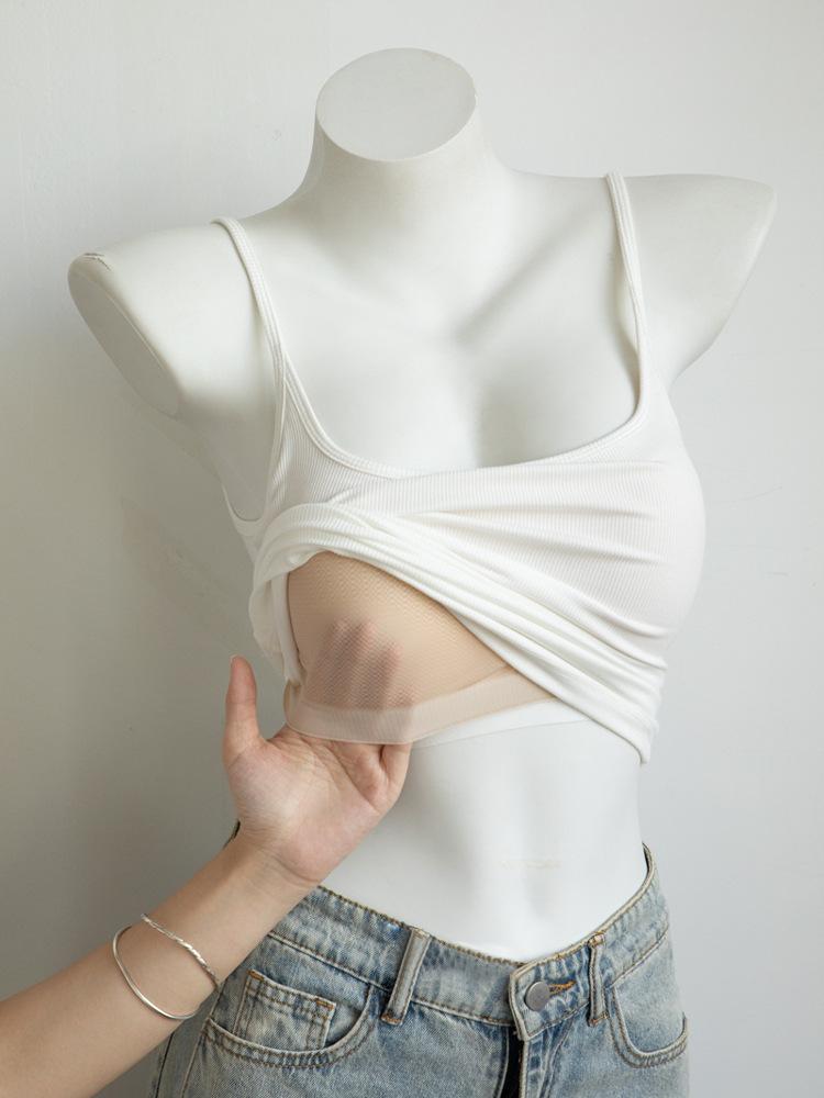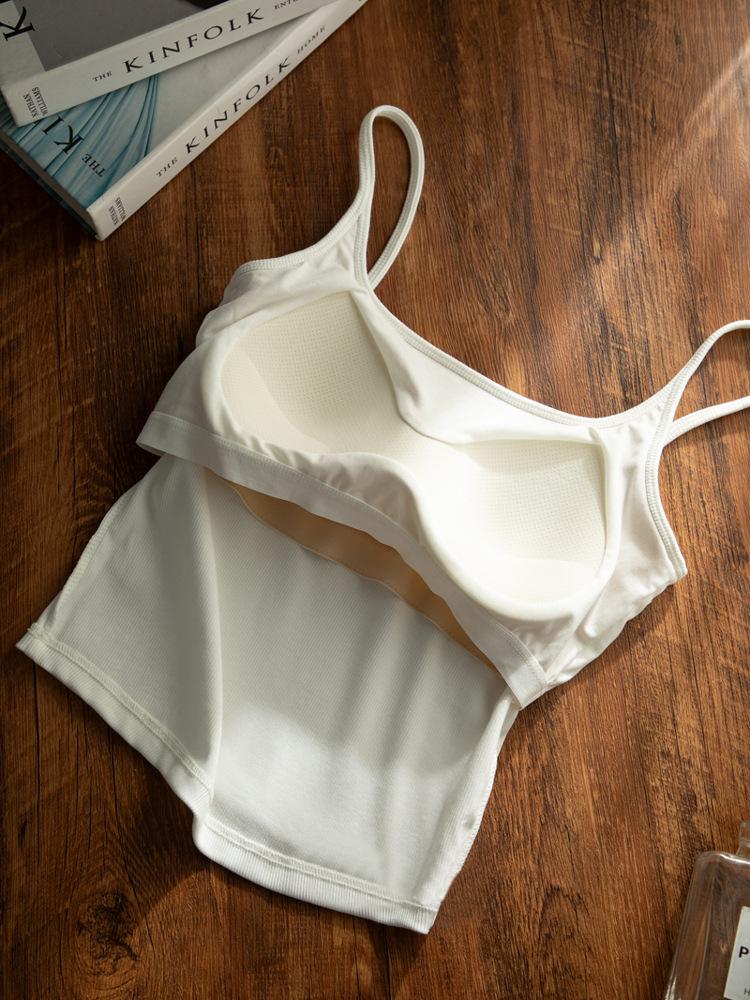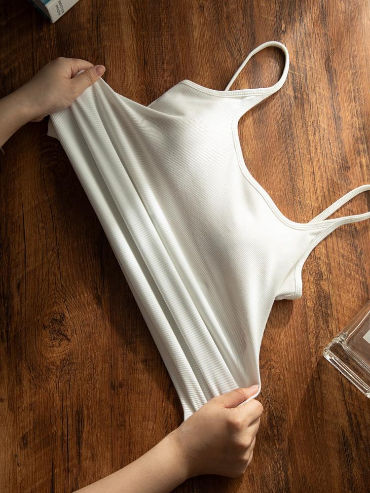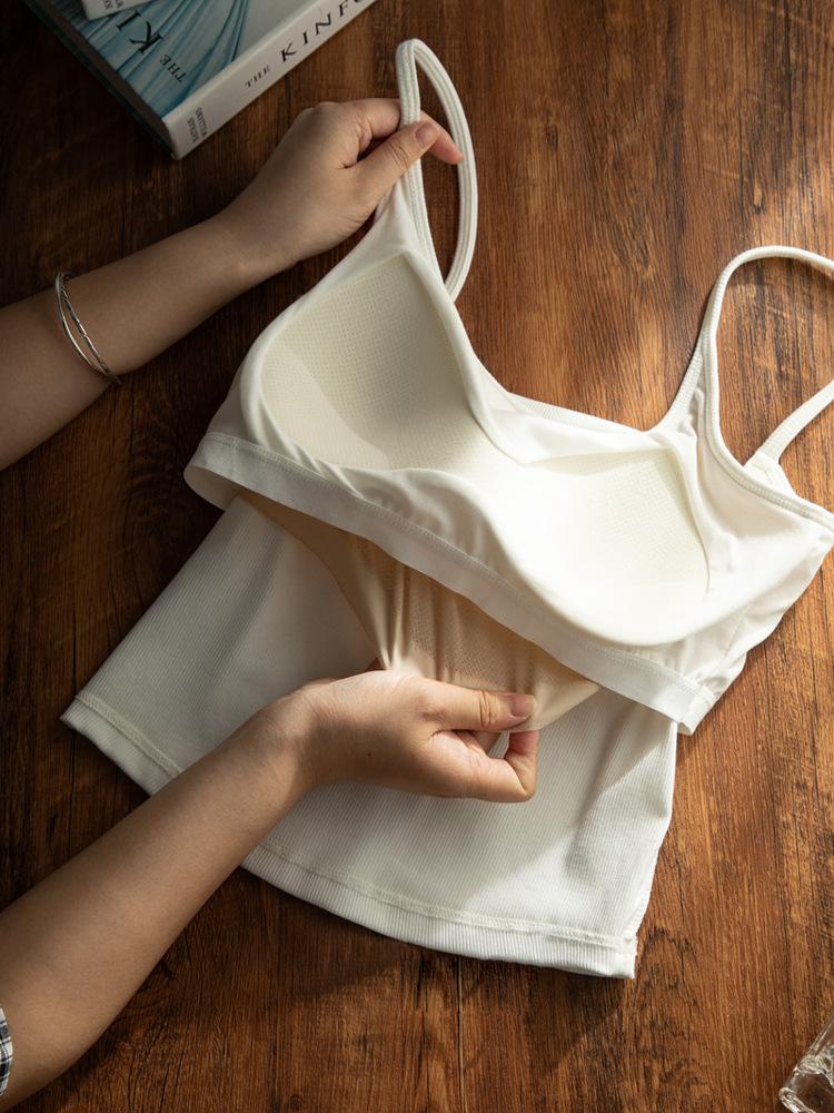 Camisola Blanca No Transparente Seleccionada Cuidadosamente para Mujer 2025 Nuevo Estilo Ropa Interior Verano Ropa Exterior con Almohadilla en el Pecho Hermoso Sujetador de Espalda Integrado