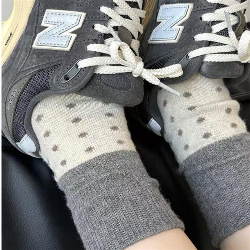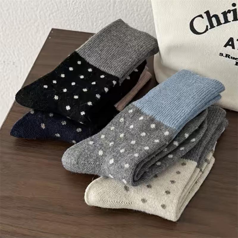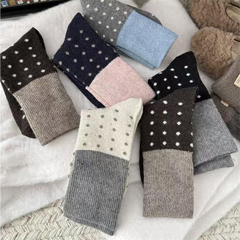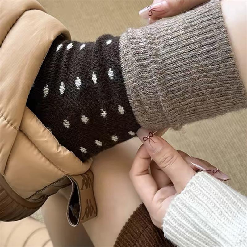 Calcetines de mujer de invierno engrosados de lana ondulada calcetines japoneses de combinación de colores retro de felpa calcetines cálidos al por mayor