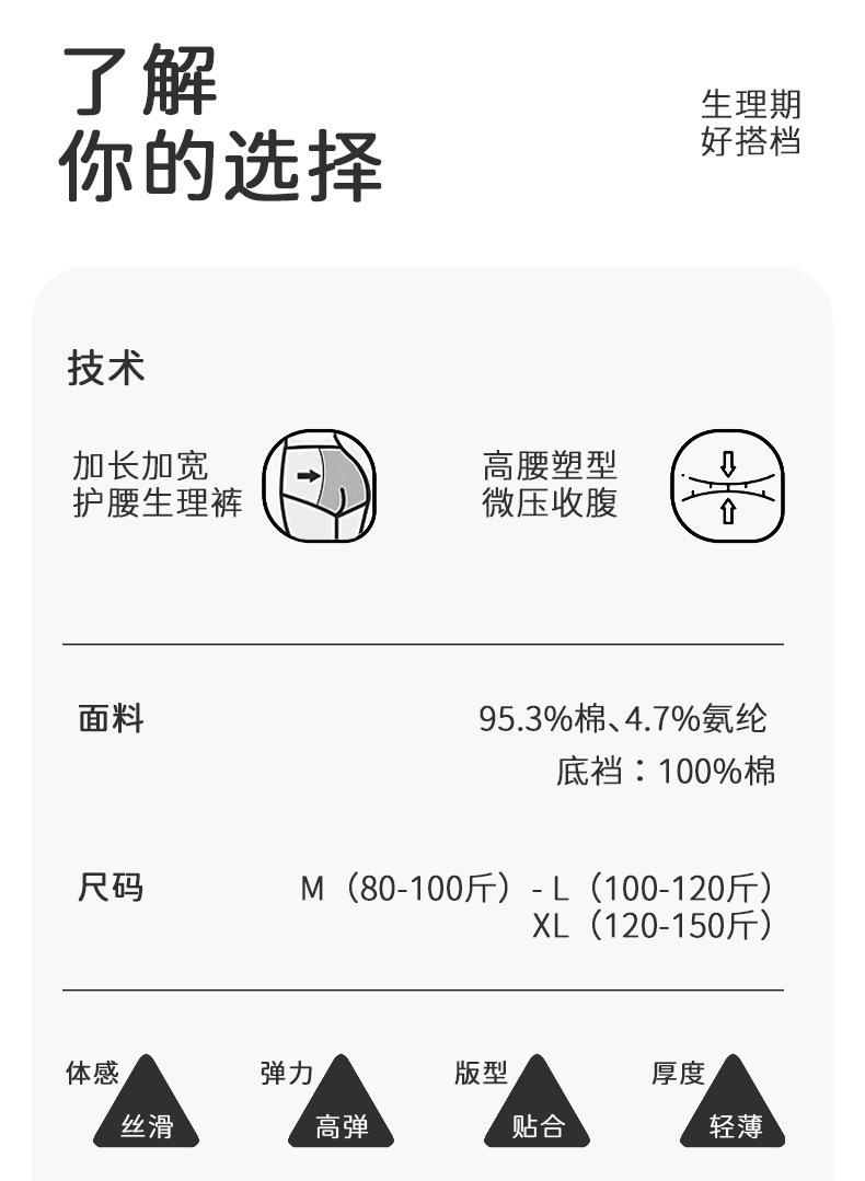 Talla Grande Algodón Puro Periodo Menstrual a Prueba de Fugas Entrepierna Extendida Transpirable Cómodo Antibacteriano Pantalón Fisiológico Ropa Interior Nueva de Cintura Alta para Mujer