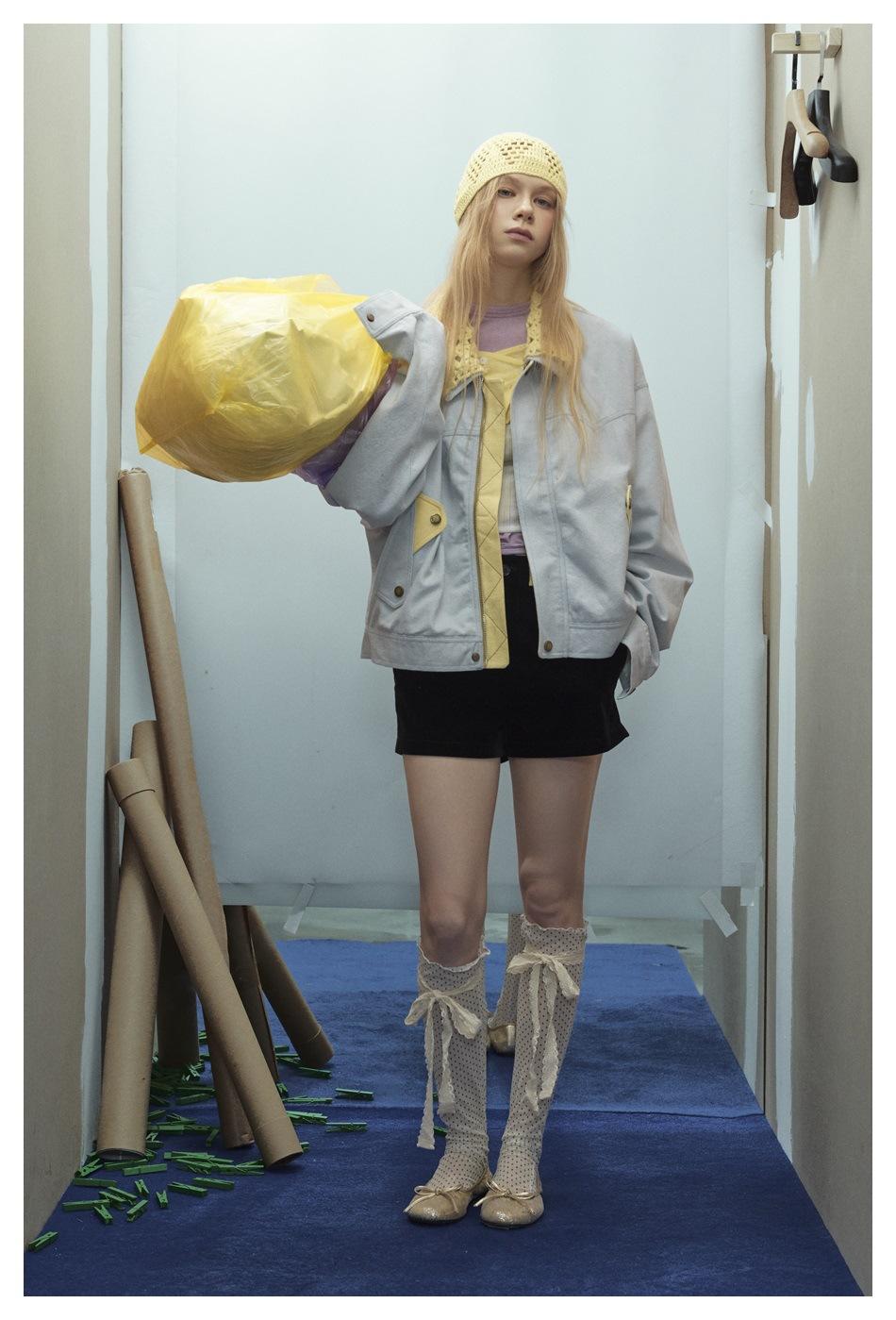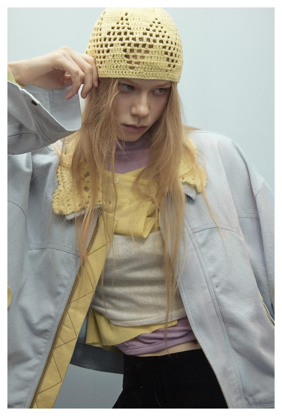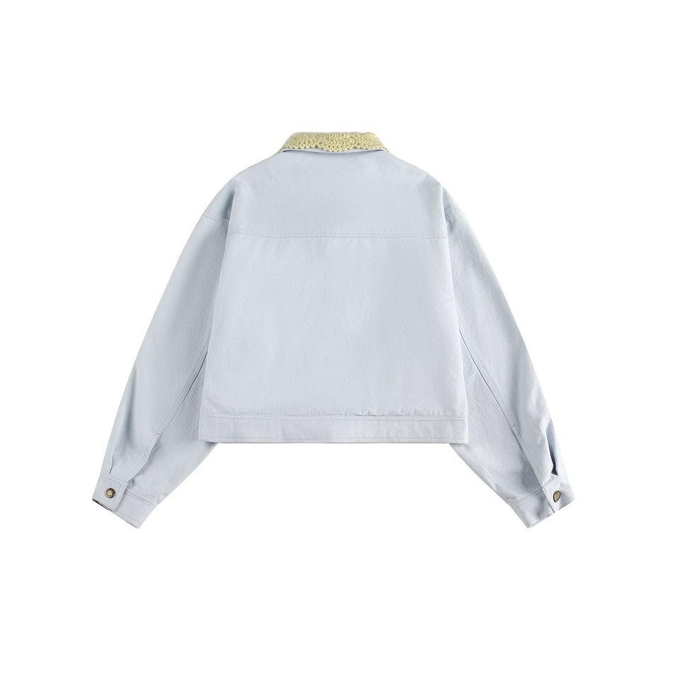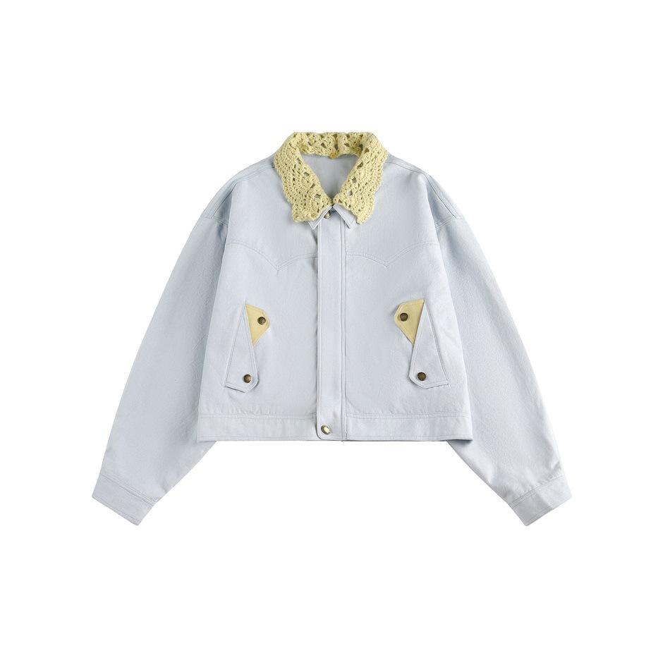 STAFFPICK Chaqueta de Trabajo Streetwear de Diseño Retro Americano para Mujer Solapa Tejida Primavera Otoño Ropa Exterior W253