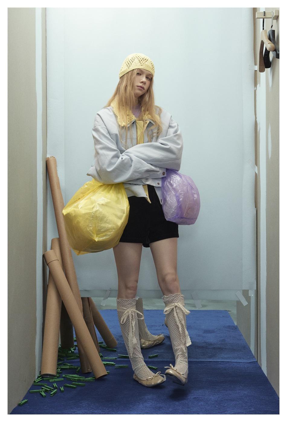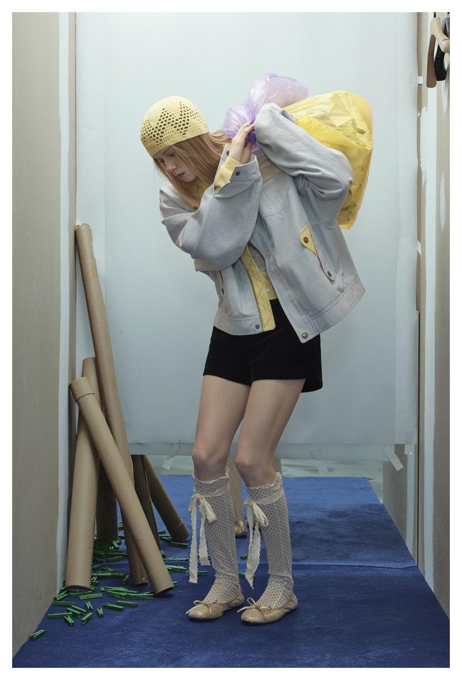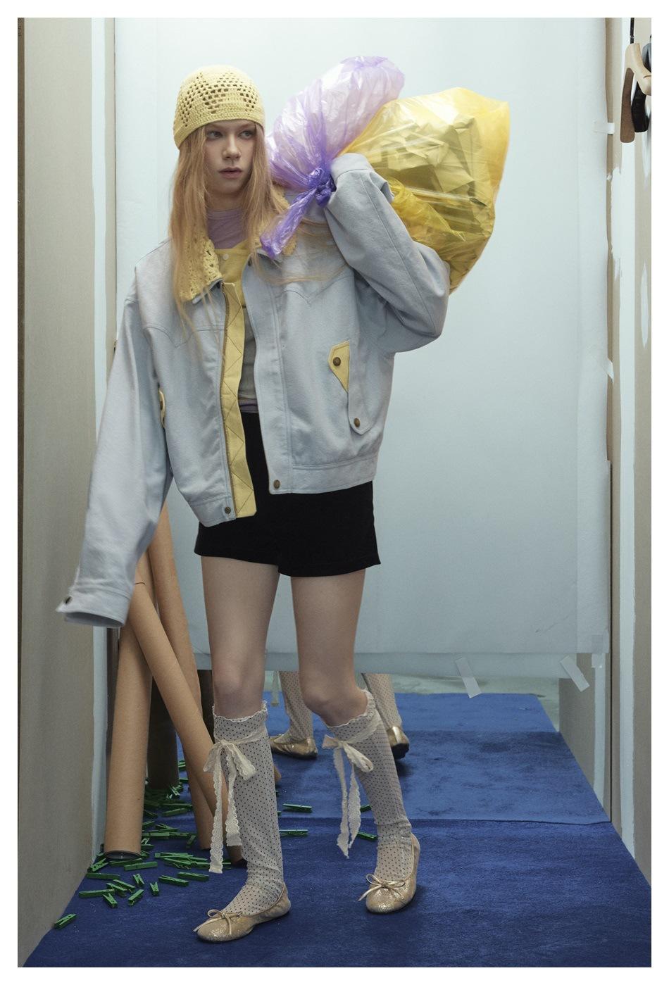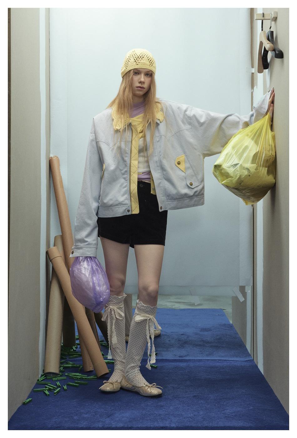 STAFFPICK Chaqueta de Trabajo Streetwear de Diseño Retro Americano para Mujer Solapa Tejida Primavera Otoño Ropa Exterior W253