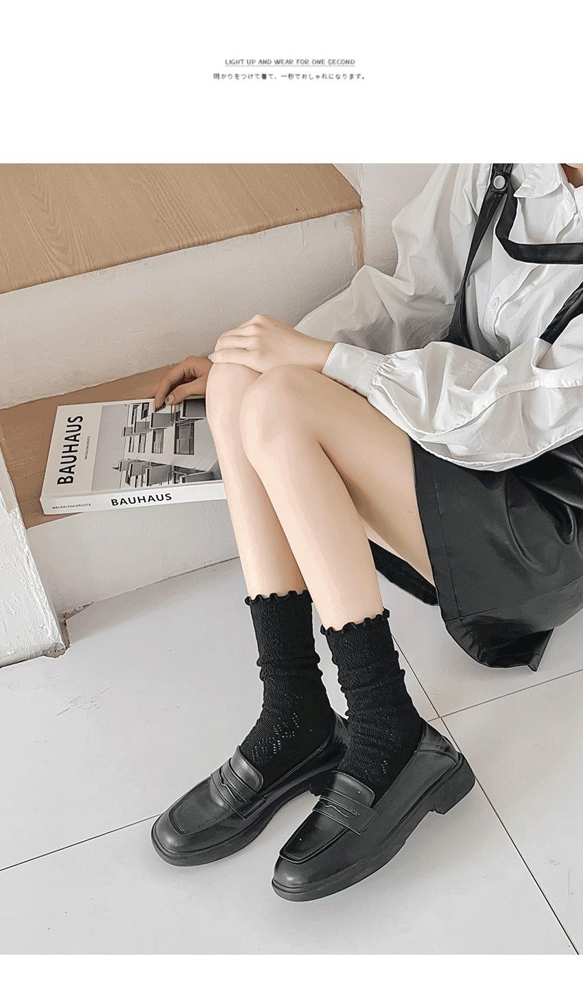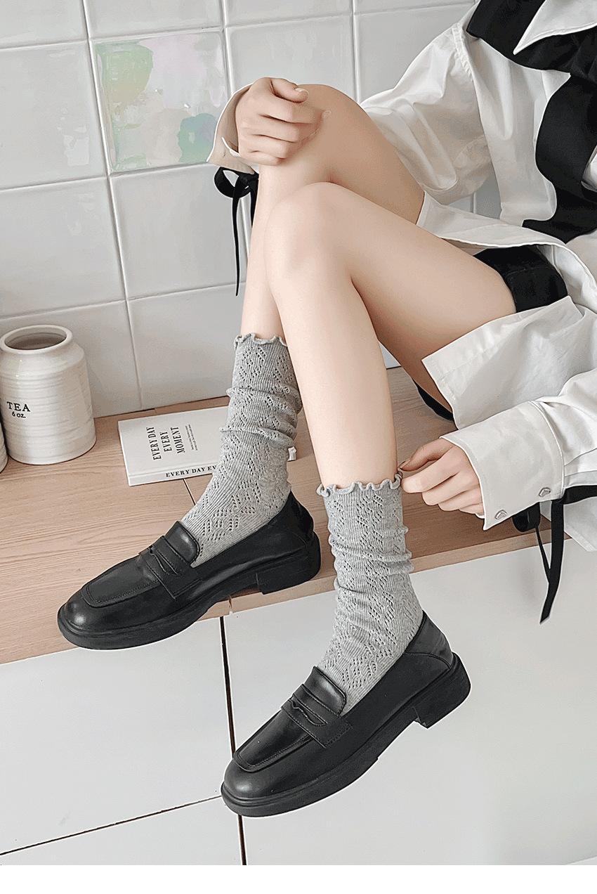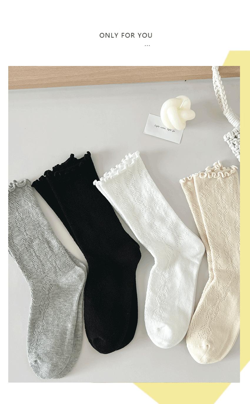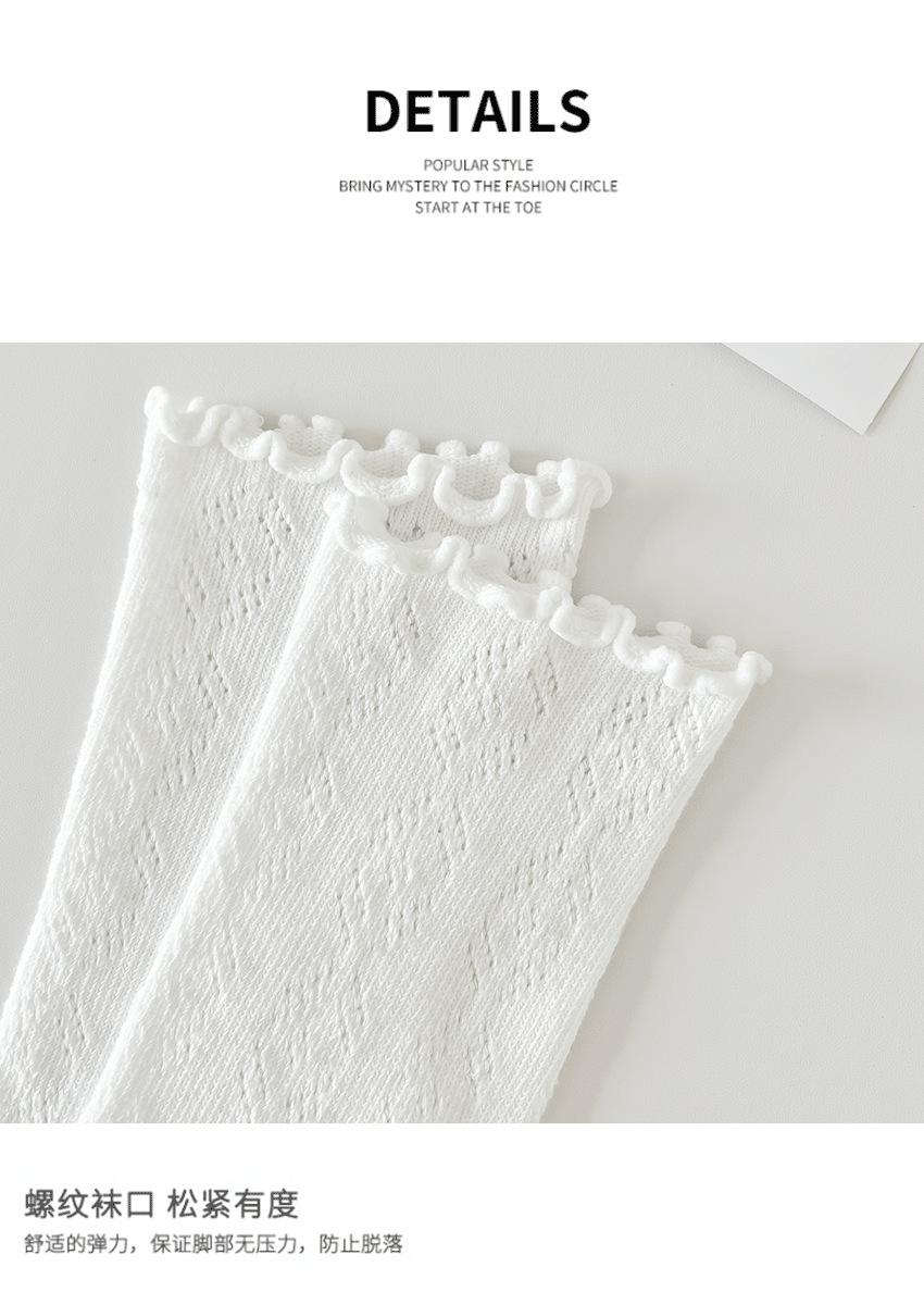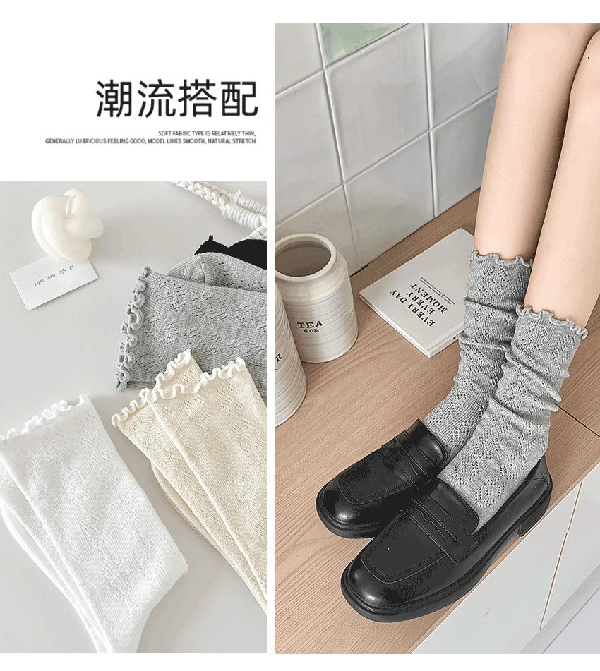 Calcetines de Media Caña para Mujer, Borde con Volantes Moderno, Calcetines Apilados, Estilo Universitario, Calcetines Largos Blancos, Transpirables y Ligeros