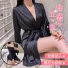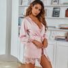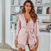 Preciosa Bata Sexy Abierta al Frente con Escote en V Profundo, Tentación, Encaje en la Cinturilla, Bata Exterior, Bata de Baño, Puede Usarse Afuera, Ropa de Casa para Mujer 19056