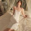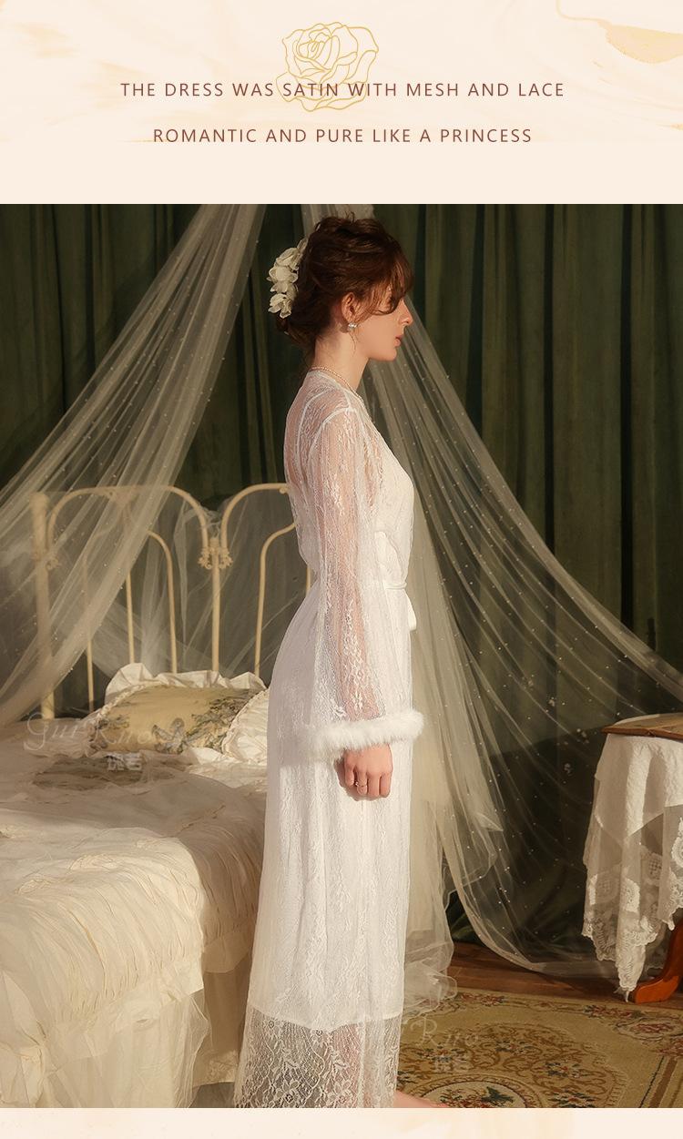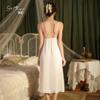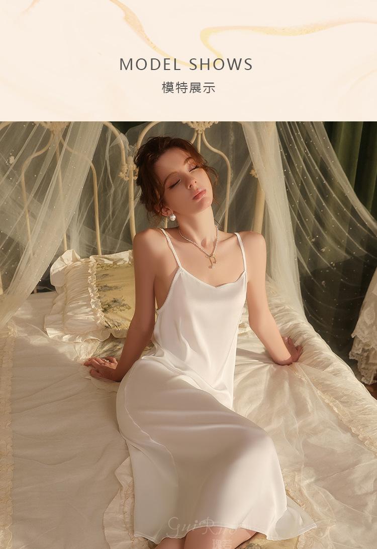 Dz Guiruo Marca Lencería Sexy Escote V Profundo Satín Delgada Camisón con Tirantes Bata Exterior Larga Conjunto para el Hogar 5485