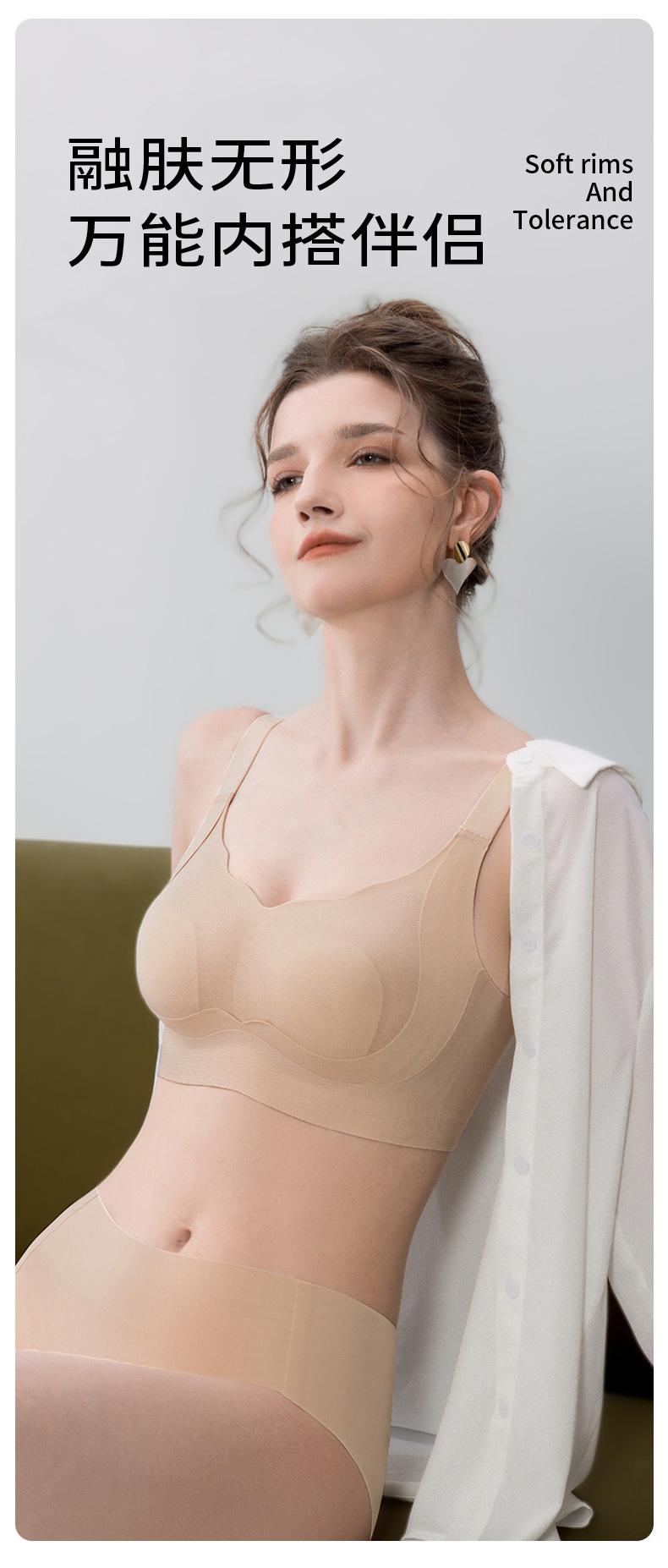 Ropa interior de plástico sin costuras de soporte suave para levantar para mujeres con busto grande, delgada, sin aros, doble elevación, sostén anti-flacidez