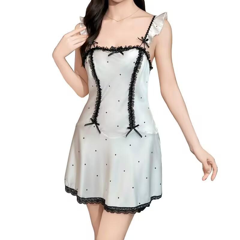 Ropa de Dormir de Verano para Mujer: Camisón de Tirantes Pure Desire con Lunares, Vestido de Tirantes Rosa y Sexy