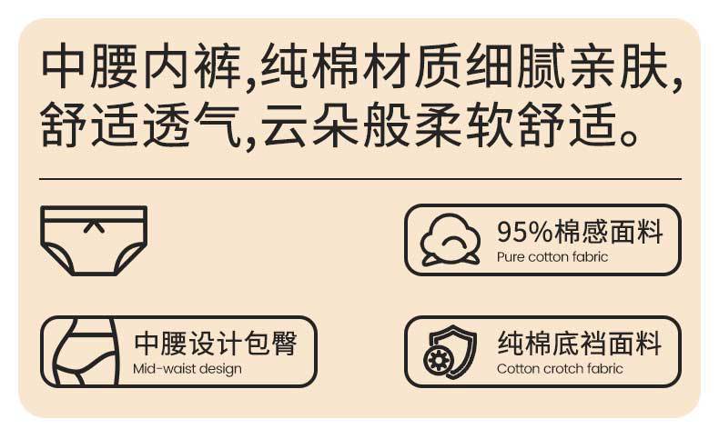 Ropa Interior Antibacterial de Algodón Puro para Mujer Ropa Interior de Algodón 100% de Cintura Media Sin Costuras Transpirable Talla Grande Estilo Japonés Shorts Triangulares para Niñas