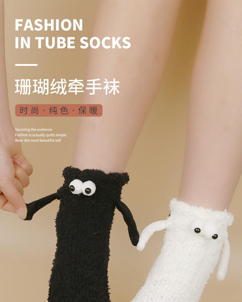 Calcetines lindos, gruesos y cálidos de forro polar de coral para mujer en otoño e invierno, calcetines de piso modernos y originales para dormir y para el posparto
