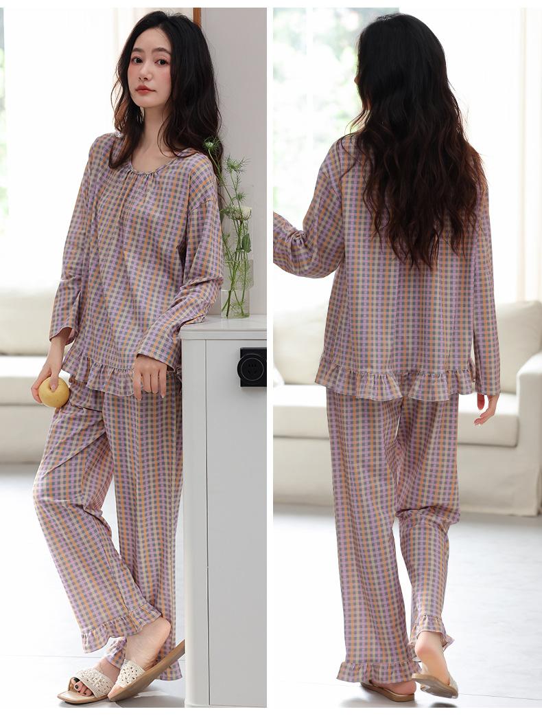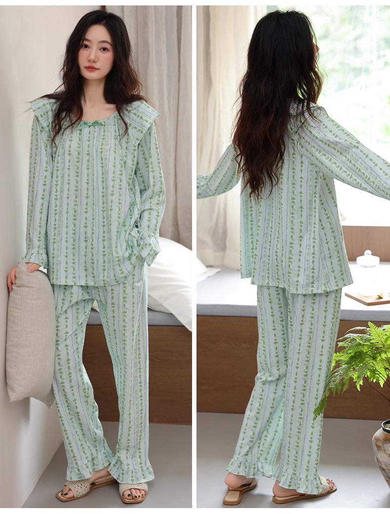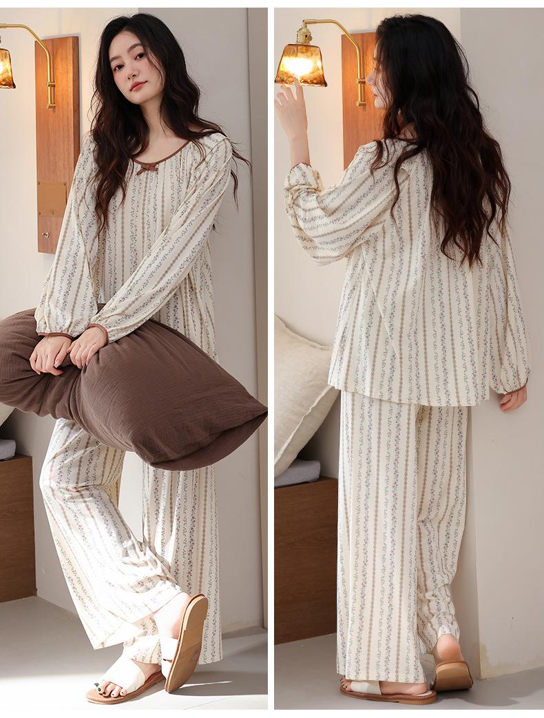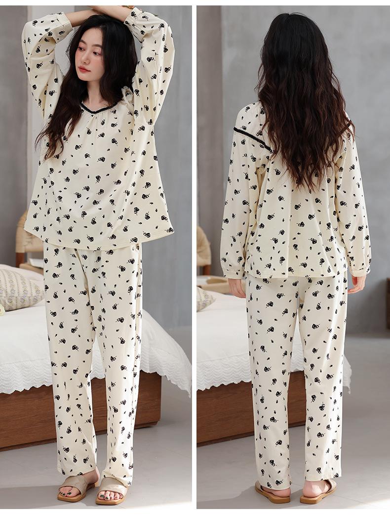 Pijamas de Mujer Estilo Primavera y Otoño Algodón Puro Manga Larga Pantalón Largo 2025 Otoño e Invierno Nuevo Estilo Talla Grande Cómodo Casual Conjunto Ropa de Casa