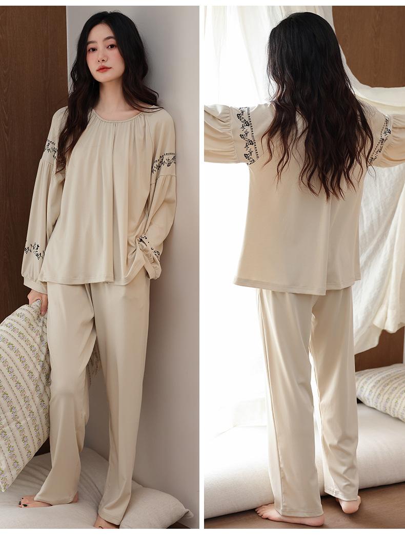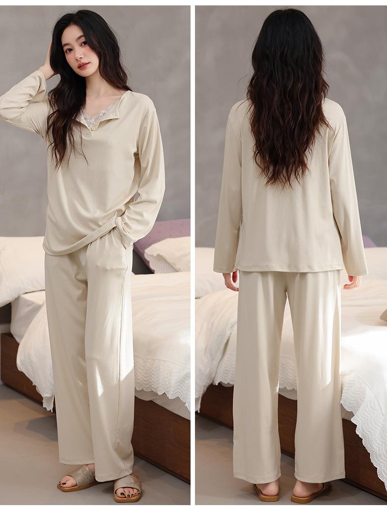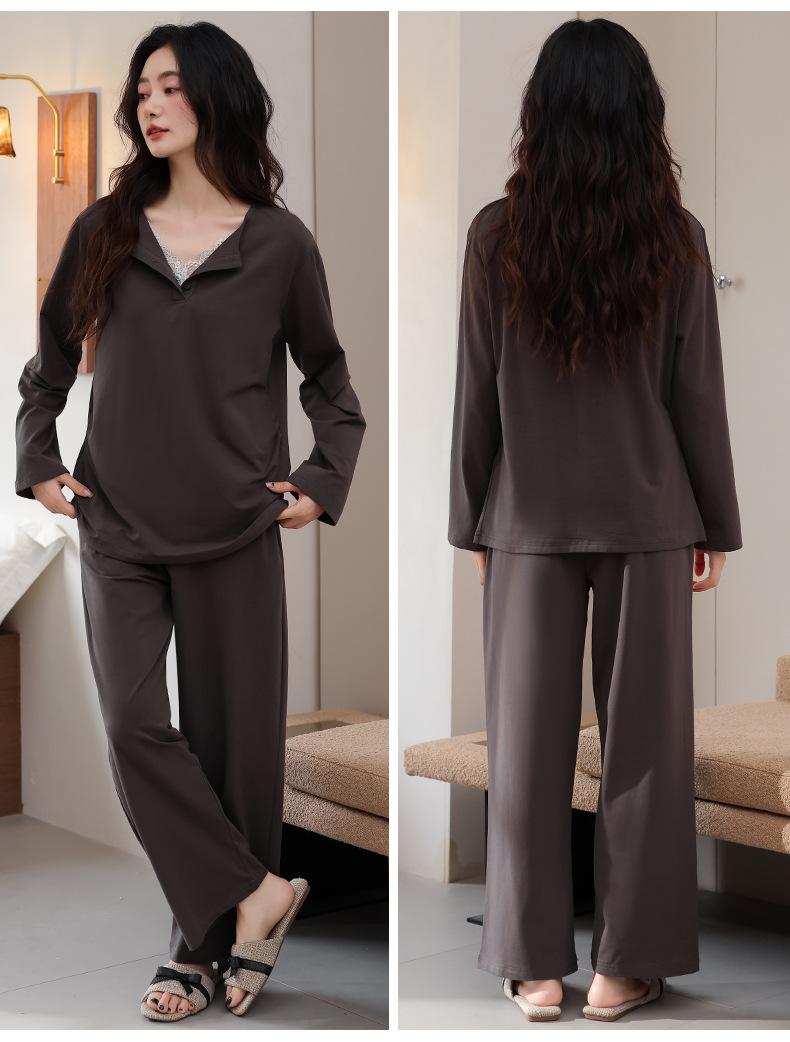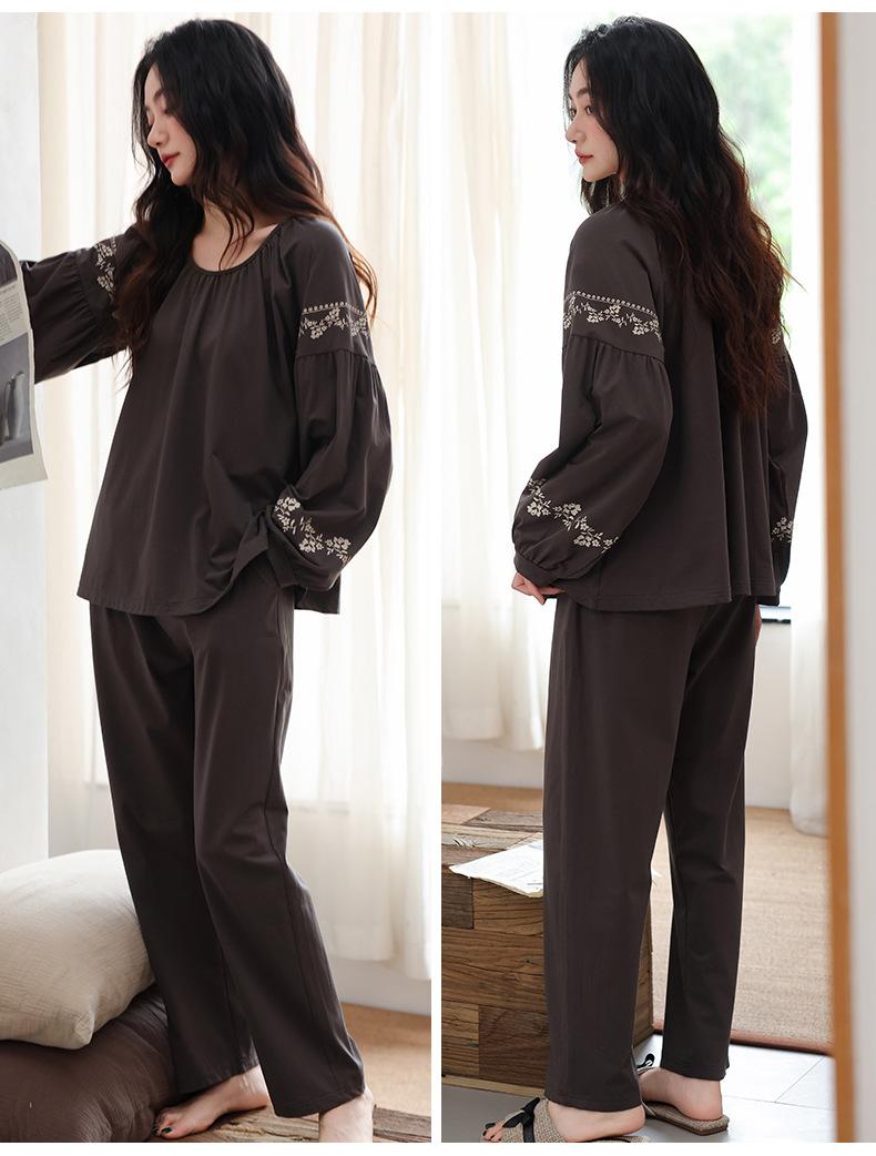 Pijamas de Mujer Estilo Primavera y Otoño Algodón Puro Manga Larga Pantalón Largo 2025 Otoño e Invierno Nuevo Estilo Talla Grande Cómodo Casual Conjunto Ropa de Casa