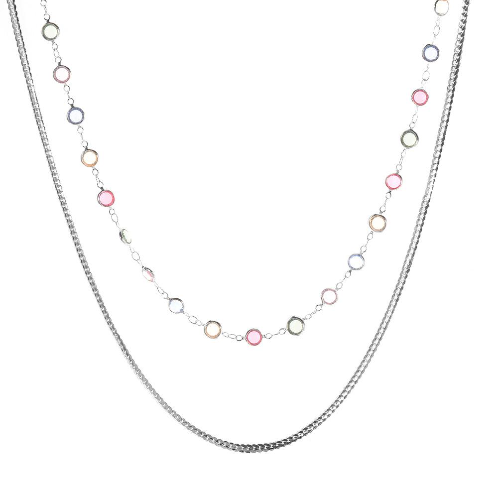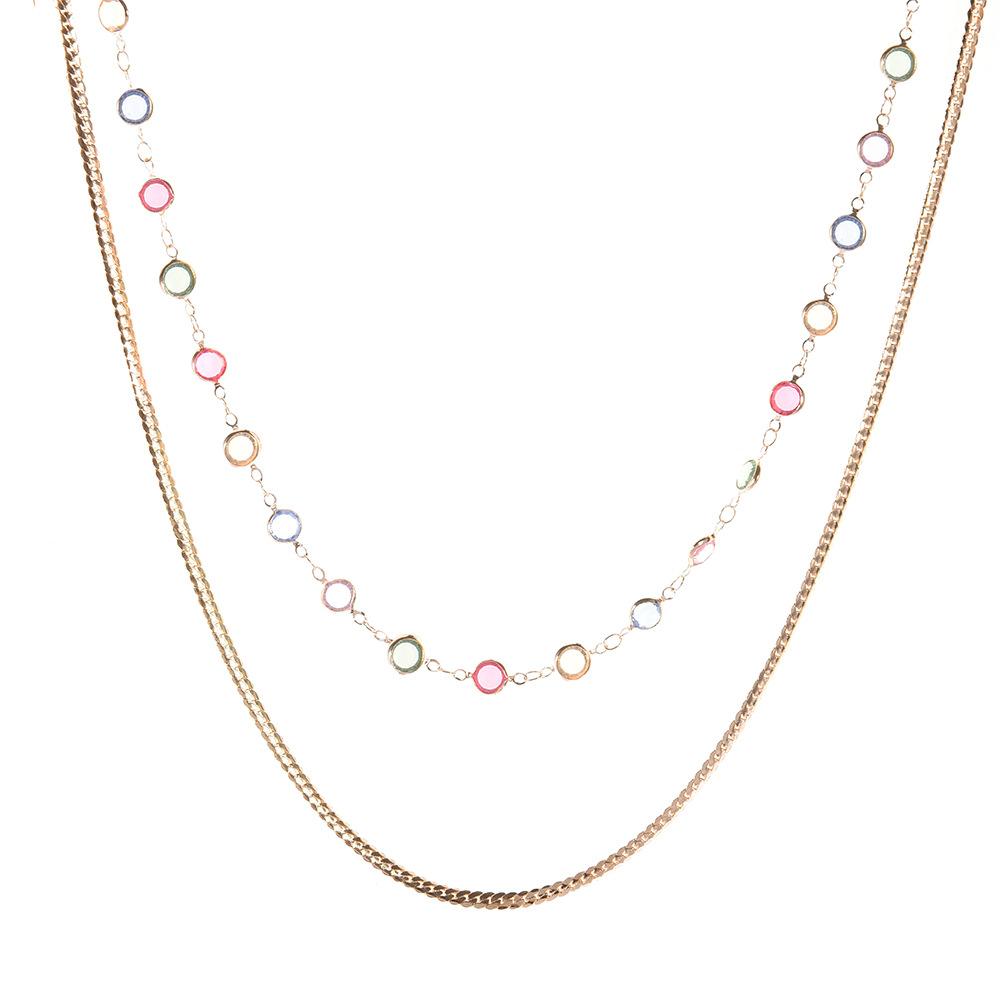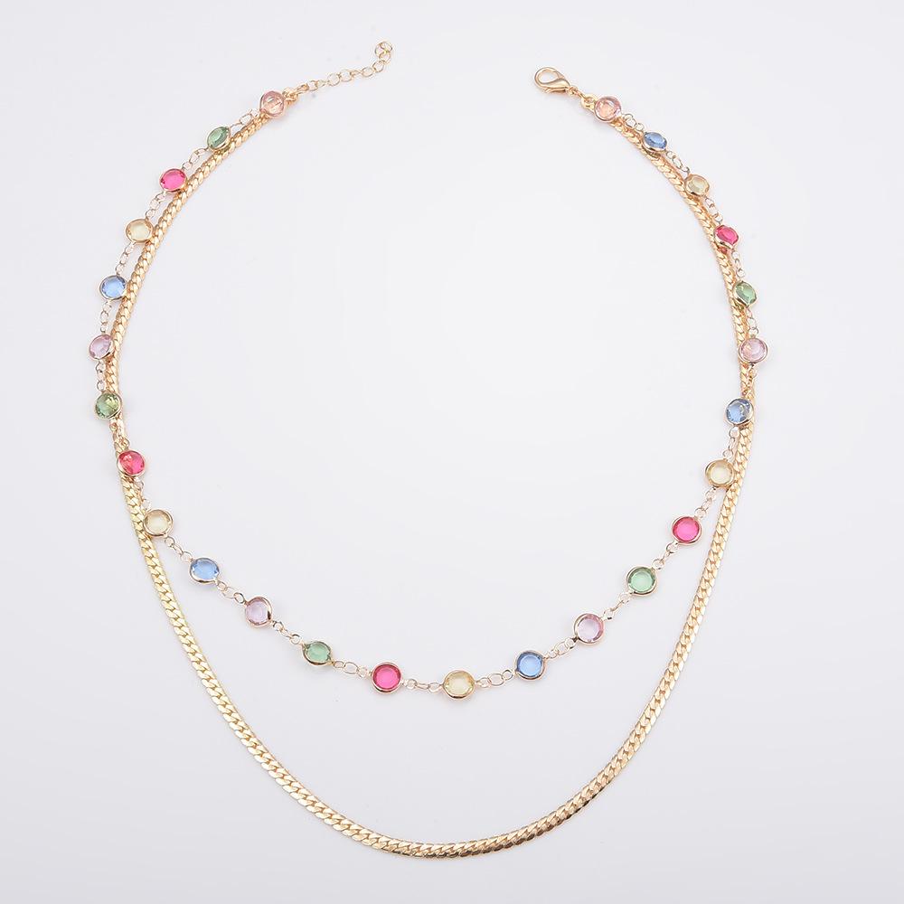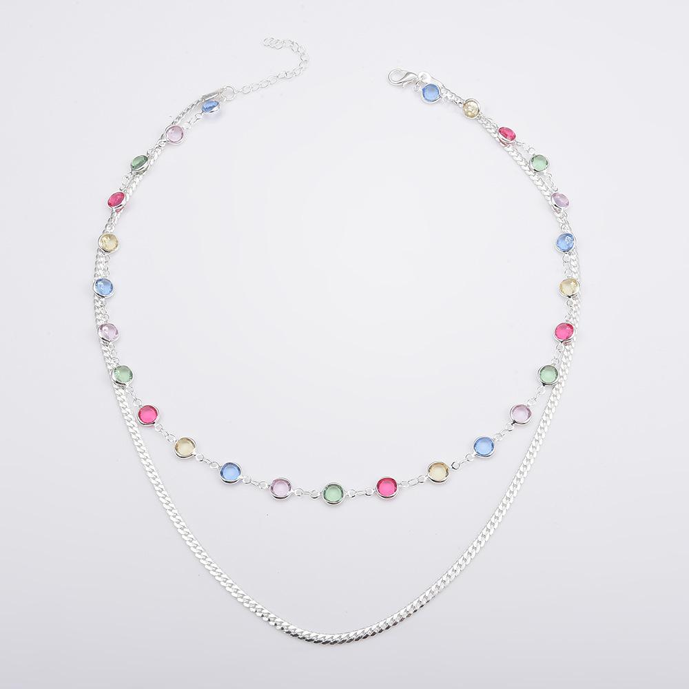 Joyería Popular Transfronteriza Europea y Americana Set de Combinación de Cristal Colorido Collar de Aleación de Doble Capa Corto para Mujer