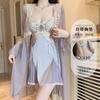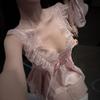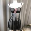 Pijama Explosivo de Talla Grande Estilo Deseo Puro para Mujer Cinturón Almohadilla para el Pecho Camisón con Tirantes Estilo Francés Sexy Encaje Malla Ropa para el Hogar