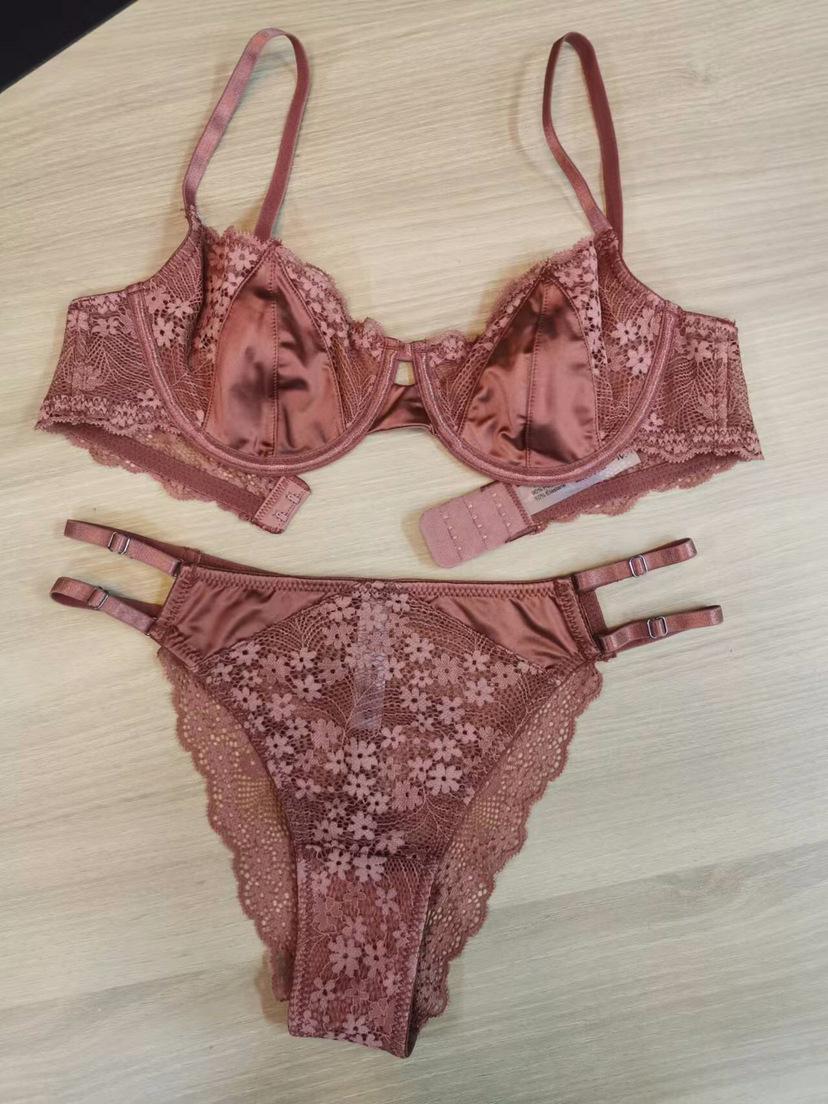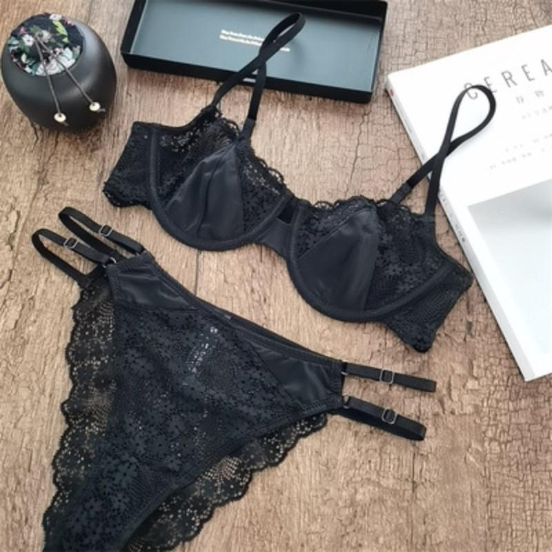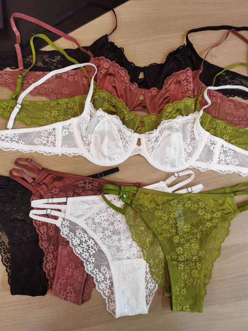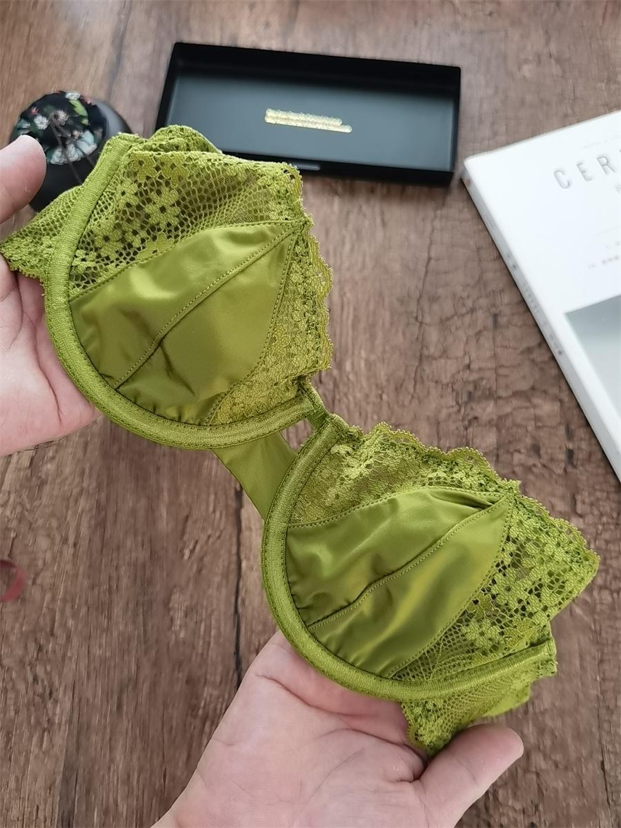 Estilo Francés Sexy Encaje Costuras Satén Ultradelgado Sujetador Pecho Grande Chica Pecho Pequeño Cómodo Transpirable Conjunto de Ropa Interior