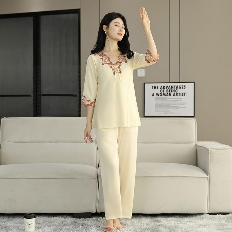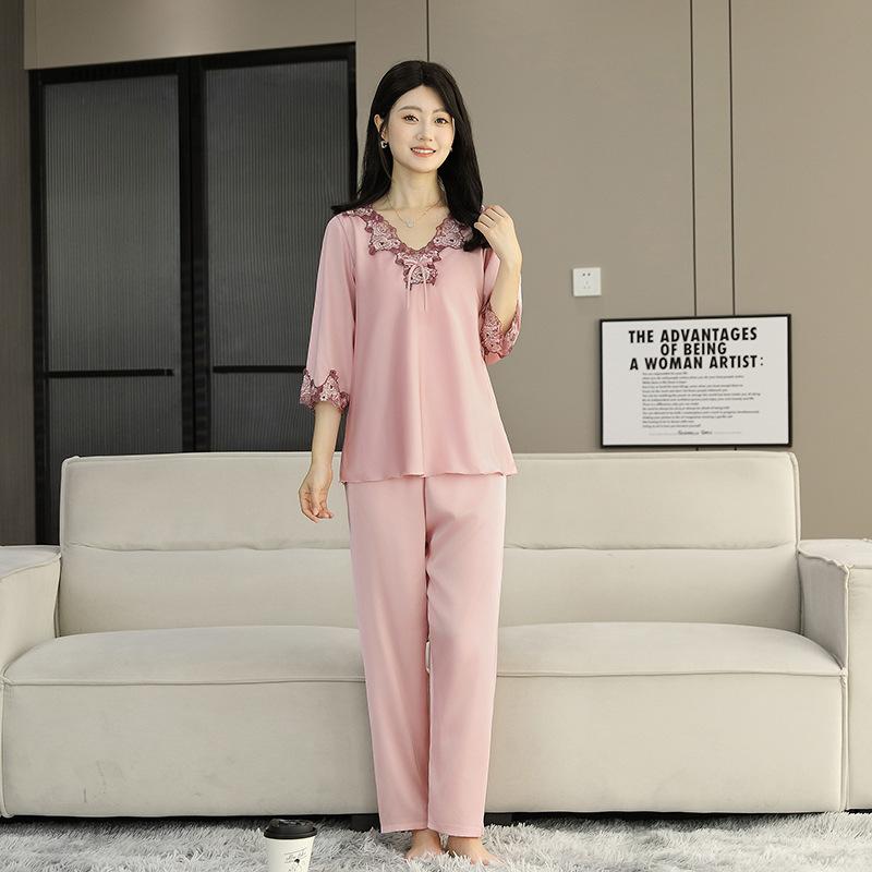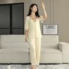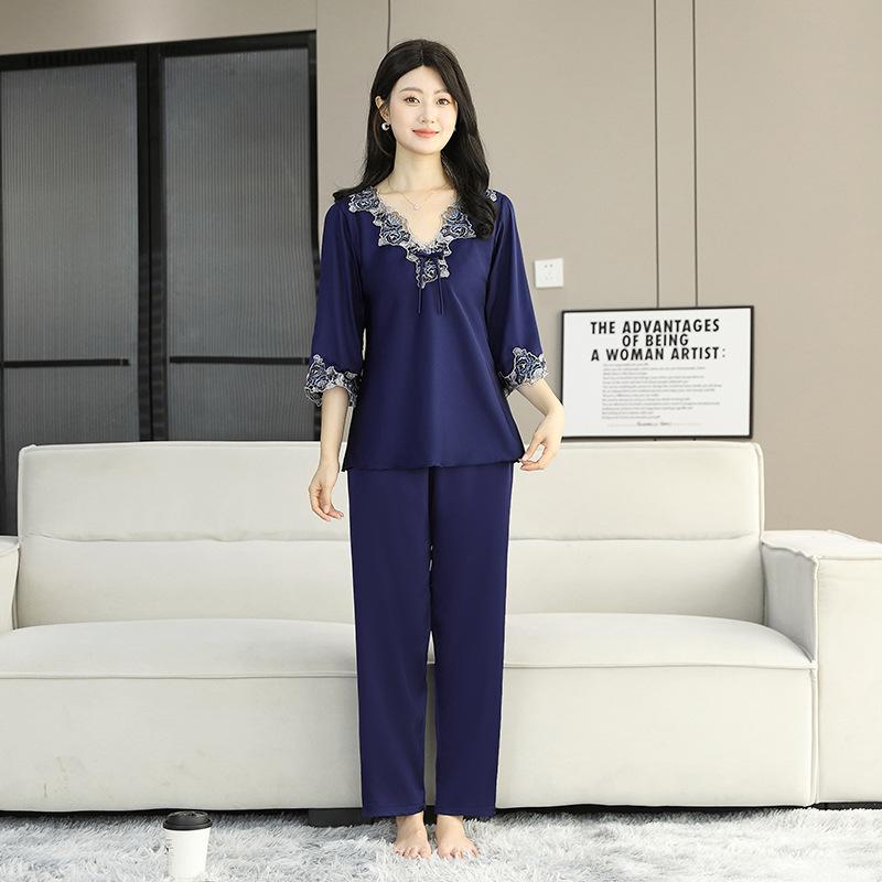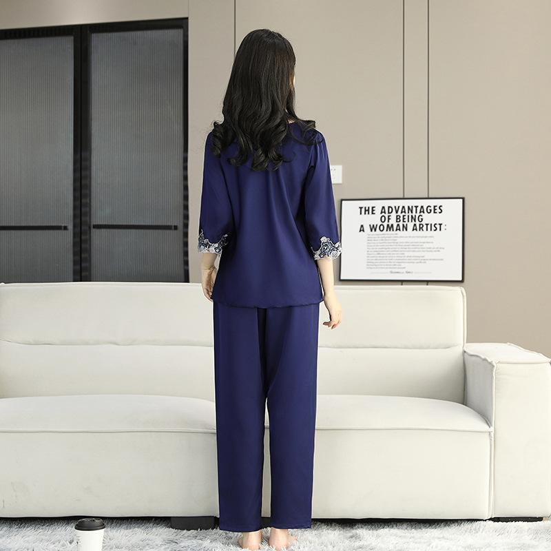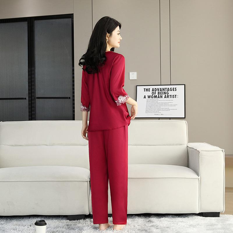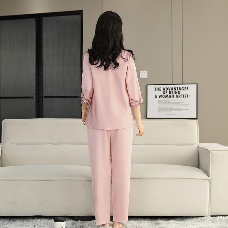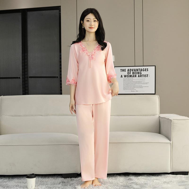 Pijama de Satén para Mujer, Camisón de Encaje de Alta Gama, Traje de Pantalón Delgado de Seda de Hielo para Verano, Se Puede Usar como Ropa de Casa