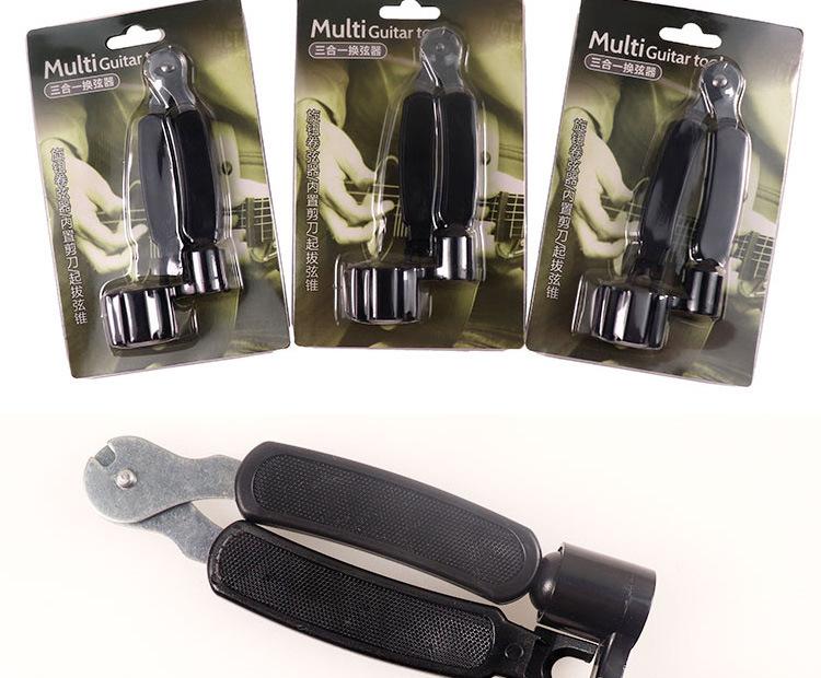 Cambiador de cuerdas de guitarra eléctrica de madera, extractor de cuerdas, clavo para cuerda, cono para cuerda, cortador de cuerdas, rizador de cuerdas, multifuncional, tres en uno