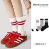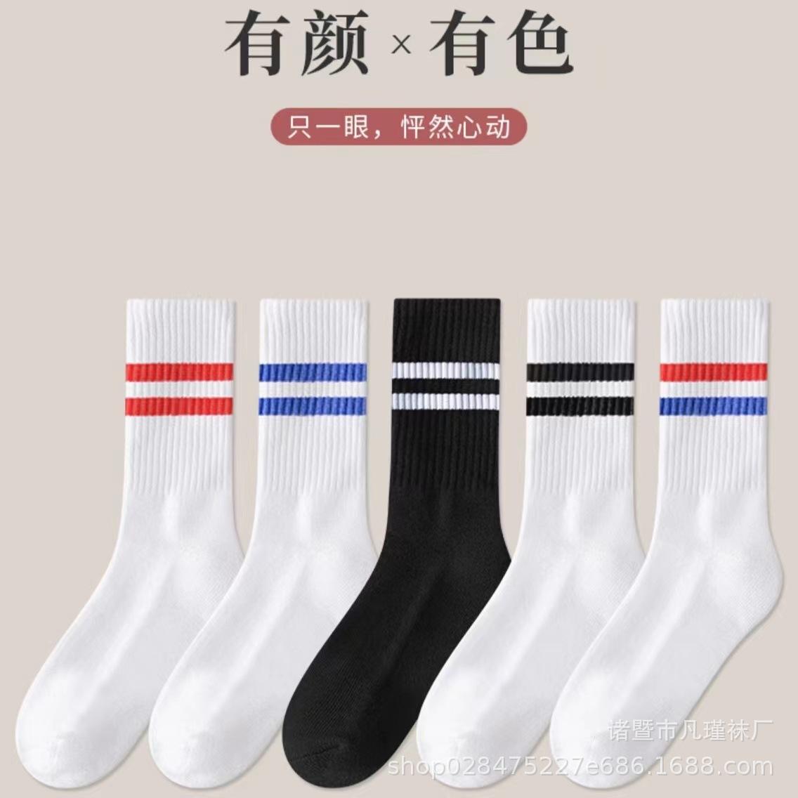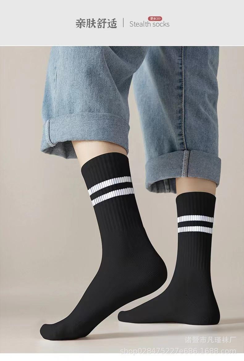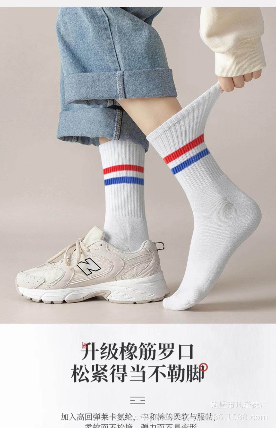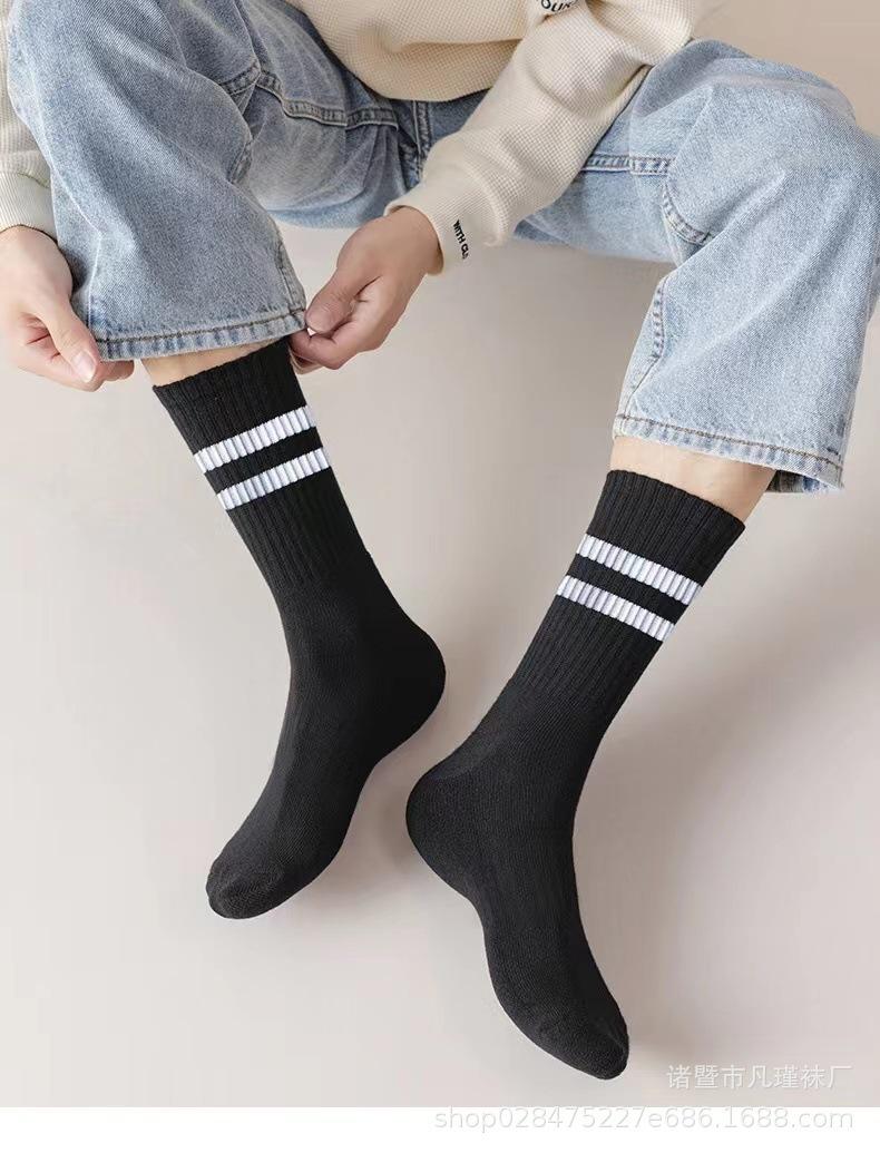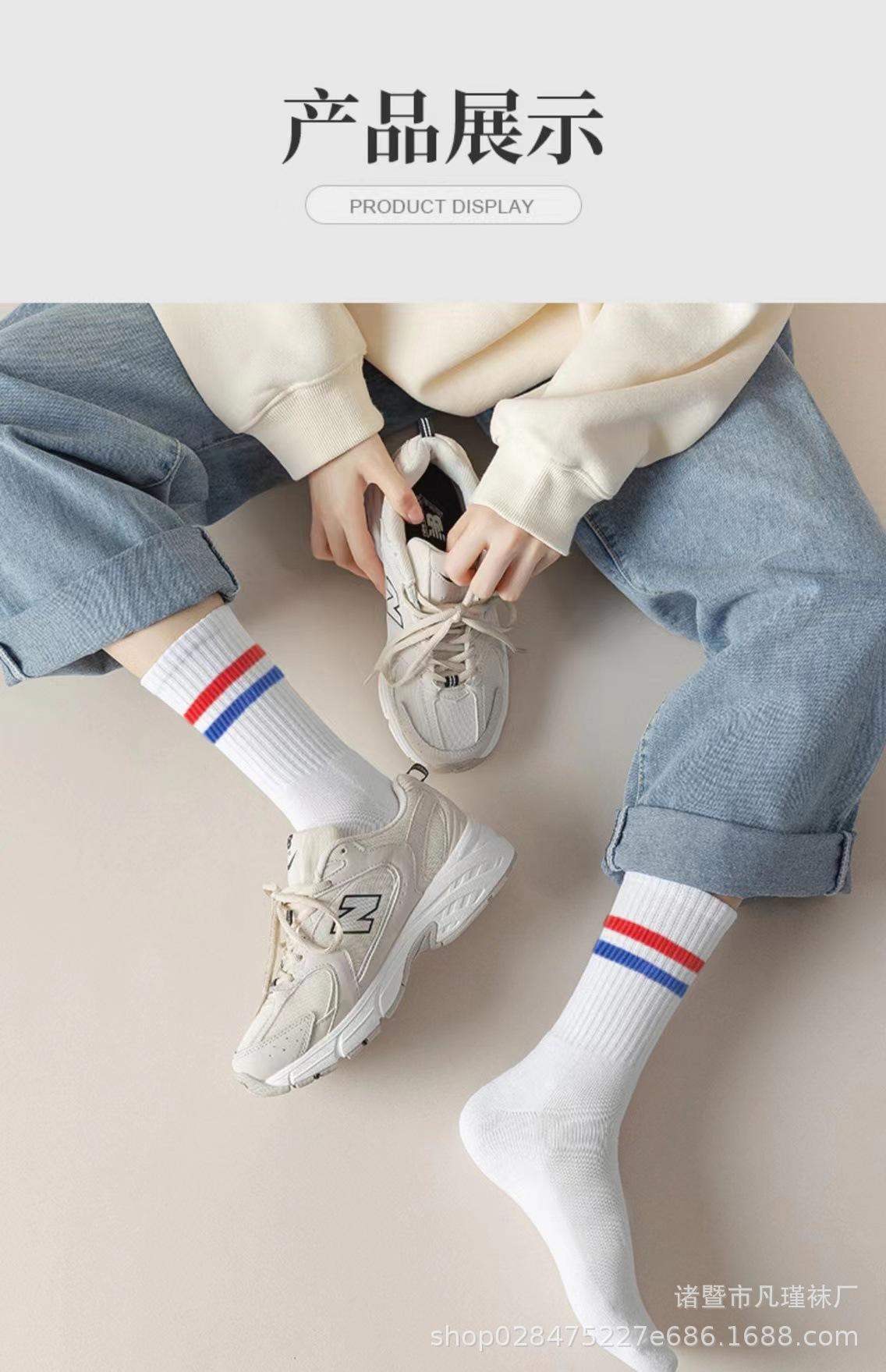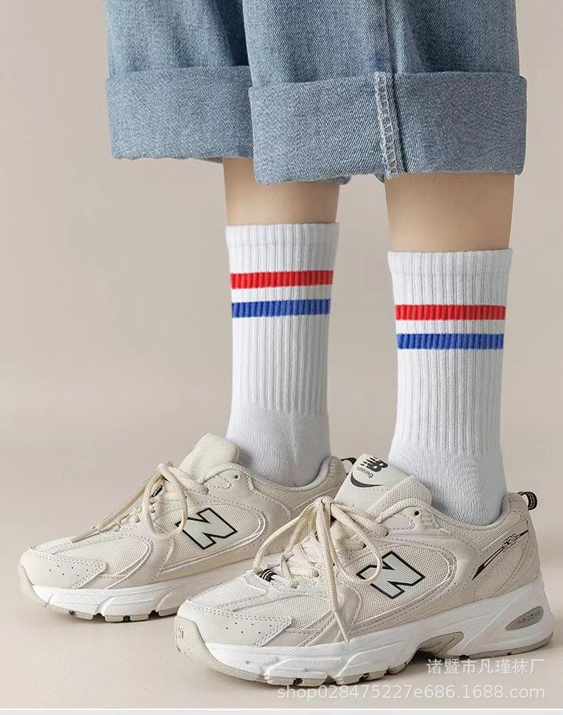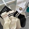 Calcetines deportivos de media pantorrilla a rayas para mujer, para correr, versátiles, sencillos, estilo universitario, primavera y verano, altos, largos, estilo coreano