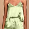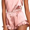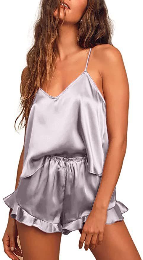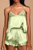 Pijama de Seda Imitación para Mujer, Pijama de Dos Piezas con Tirantes y Shorts de Color Sólido con Cuello en V, Set de Ropa para el Hogar Sexy y a la Moda