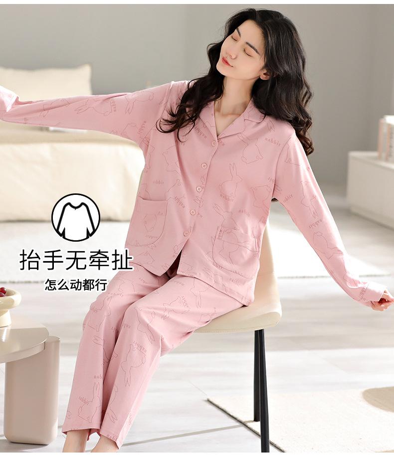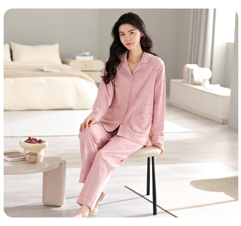 EM. Traje Cárdigan de Ropa de Casa de Primavera y Otoño de Yu Zhaolin Algodón Puro Se Puede Usar Afuera Lindo Traje de Pijama Estampado para Niña