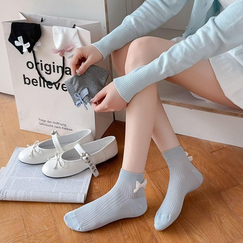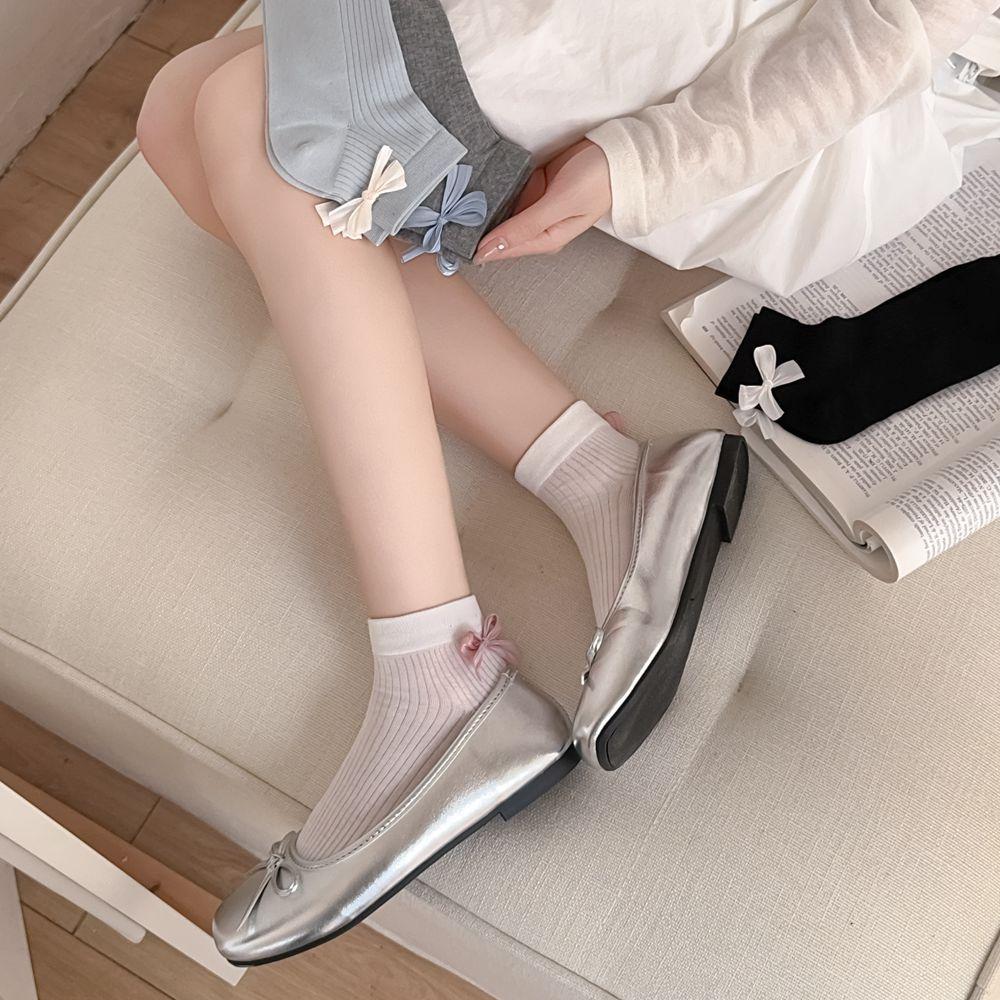 25 Calcetines de Primavera y Verano Calcetines Finos de Algodón Fino Japonés para Verano Combinan con Todo Calcetines Finos con Lazo de Joyería Calcetines Calcetines de Barco para Mujer