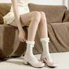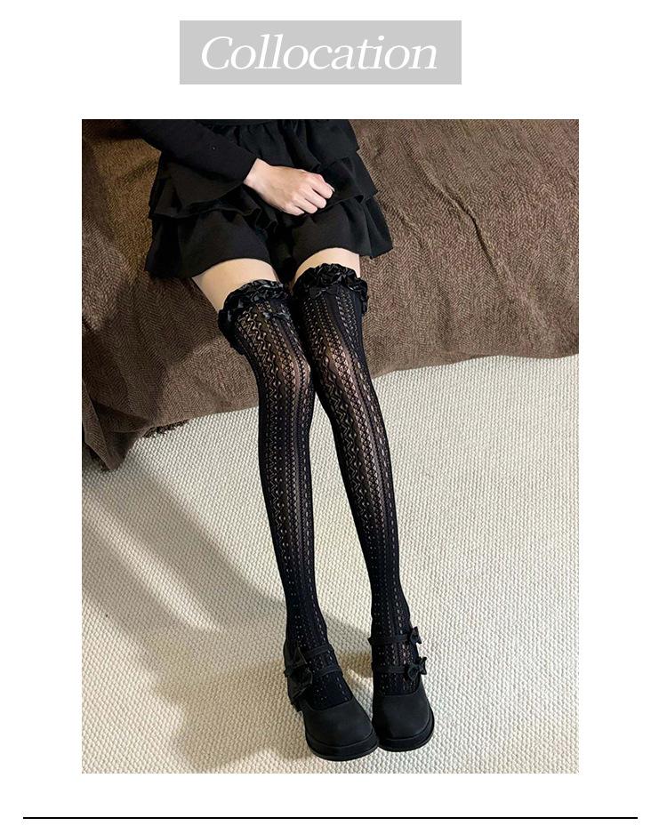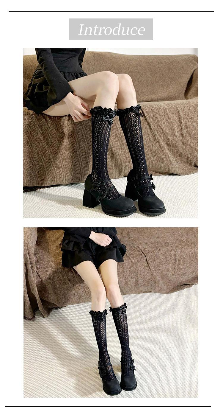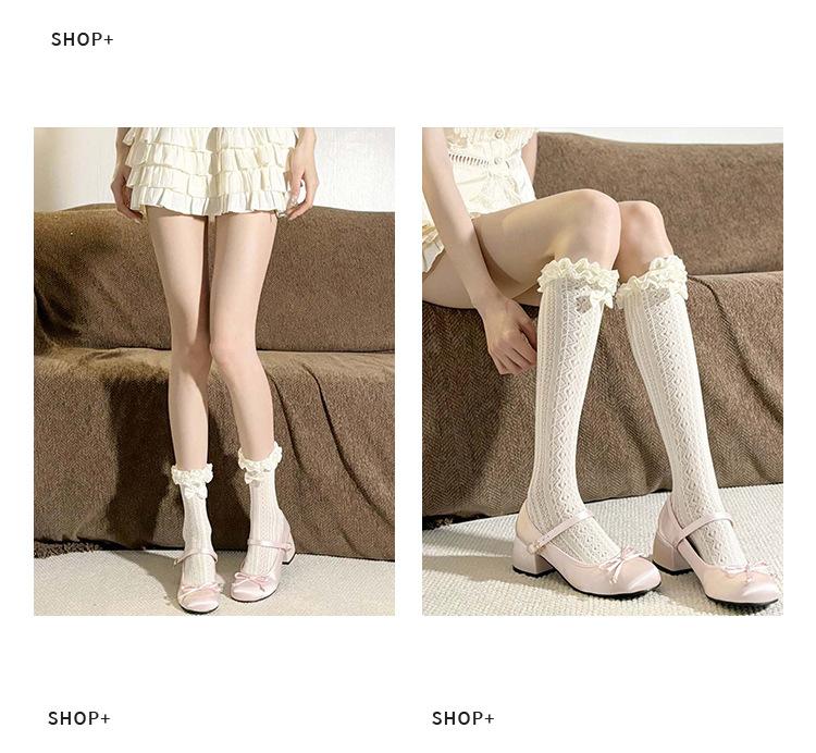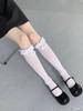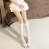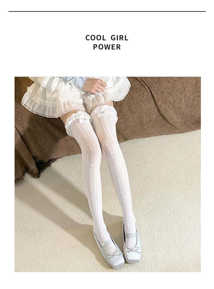 Calcetines de pantorrilla con lazo Sweet Lolita para mujer, medias finas de red de encaje para primavera y verano, calcetines blancos puros por encima de la rodilla