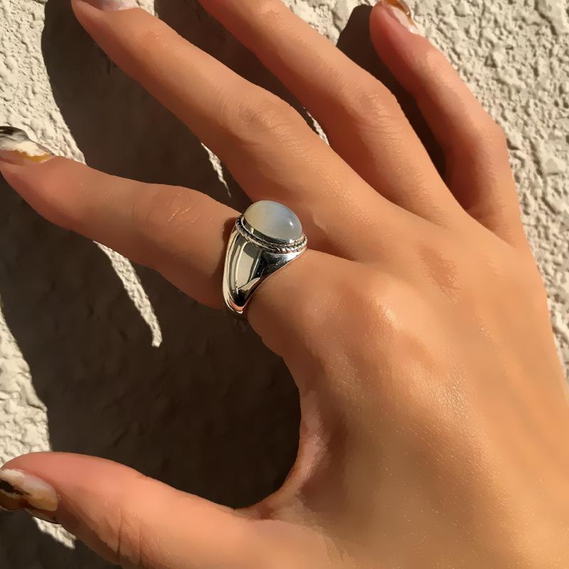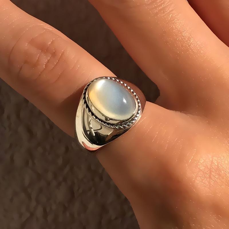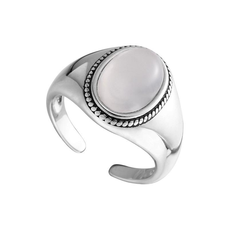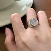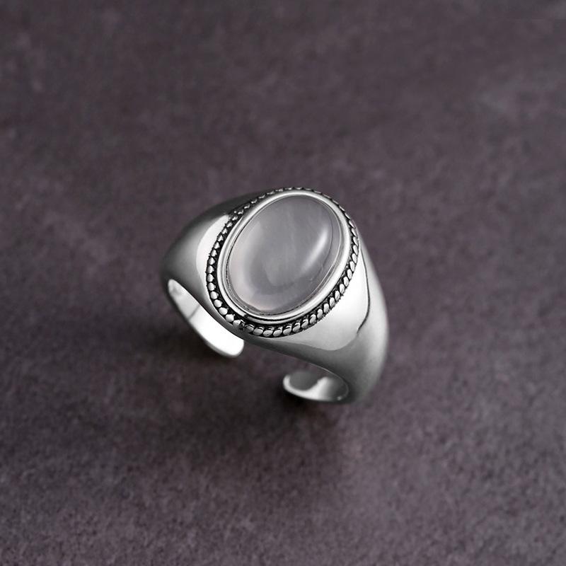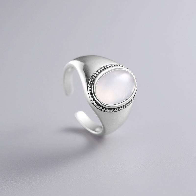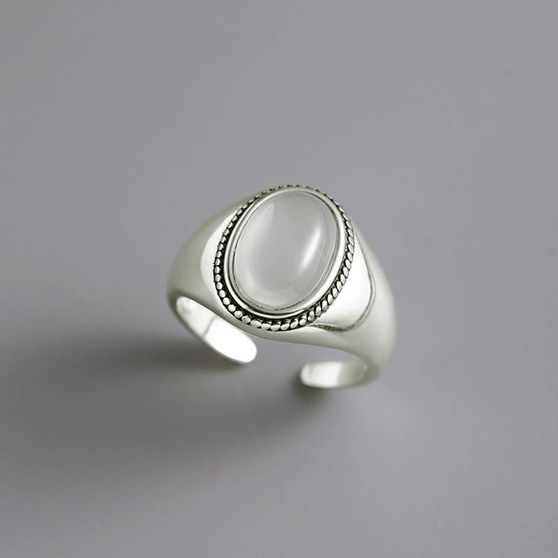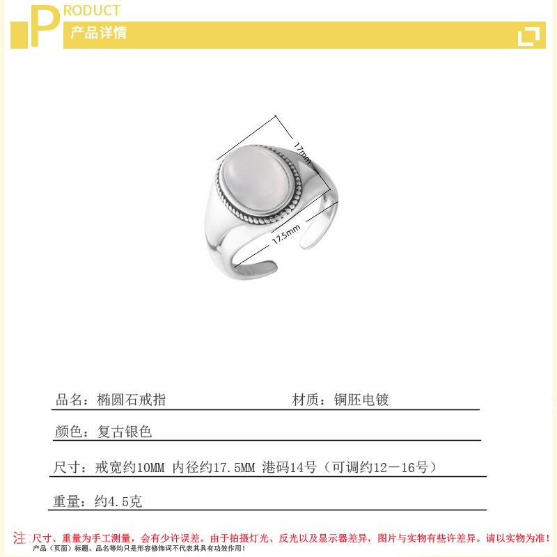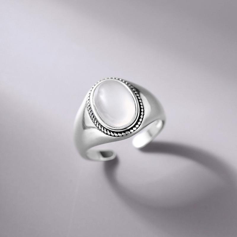 Anillo de Piedra Ovalada Ancha para Mujer Elegante Elegante Combinable Diseño Único Plata Electrochapada Vintage Envejecido Anillo Abierto