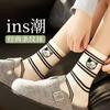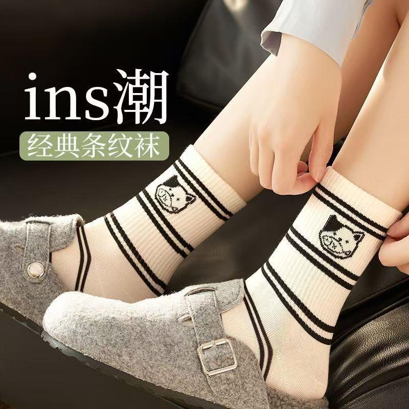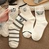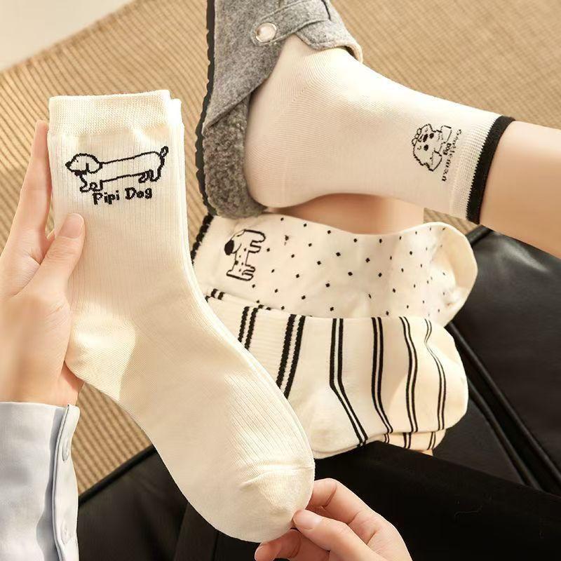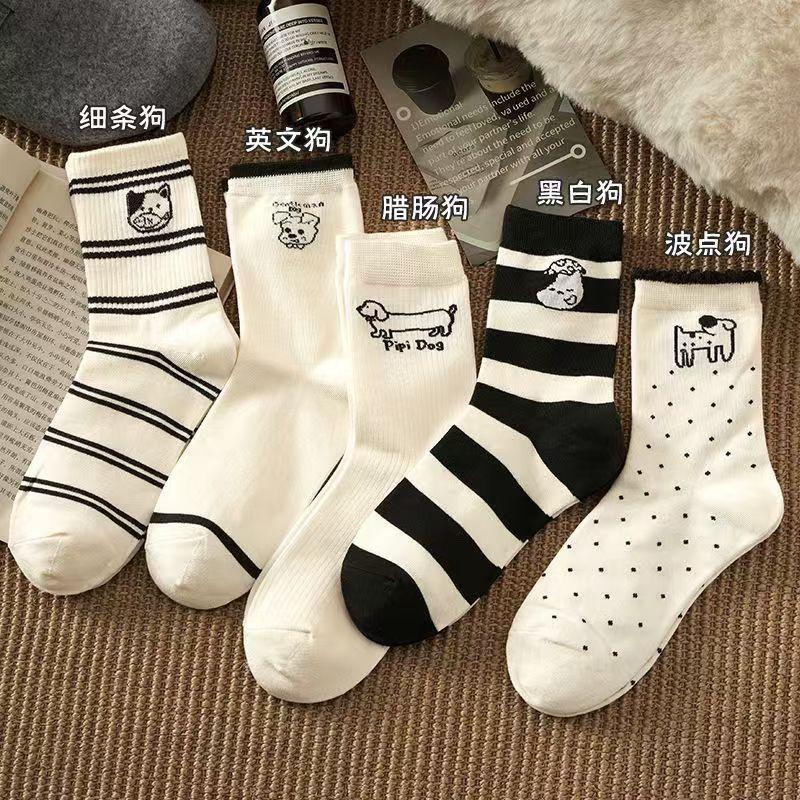 Calcetines de mujer con dibujos de cachorros a rayas, calcetines de otoño e invierno, bonitos calcetines japoneses para mujer, medias coreanas al por mayor