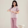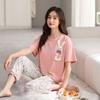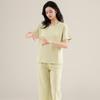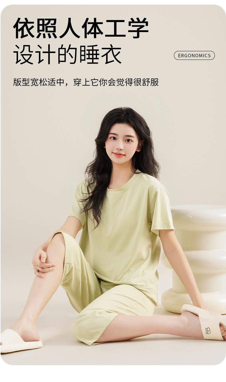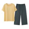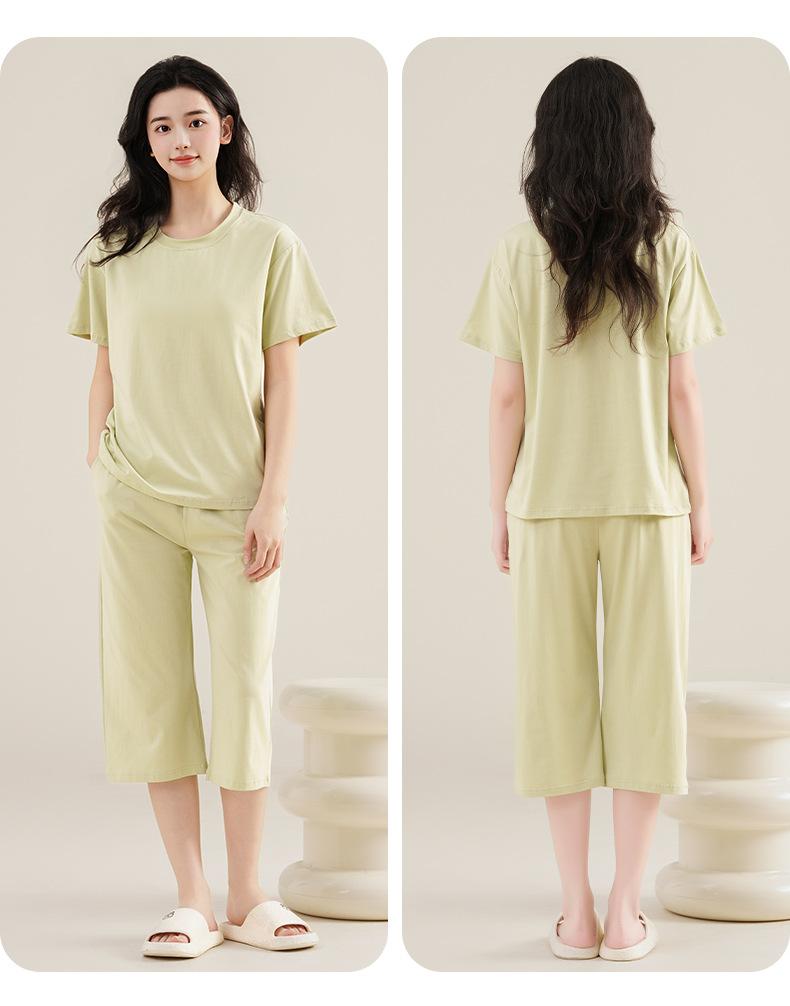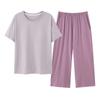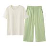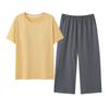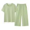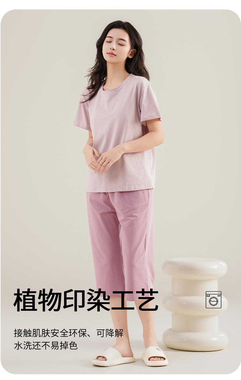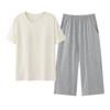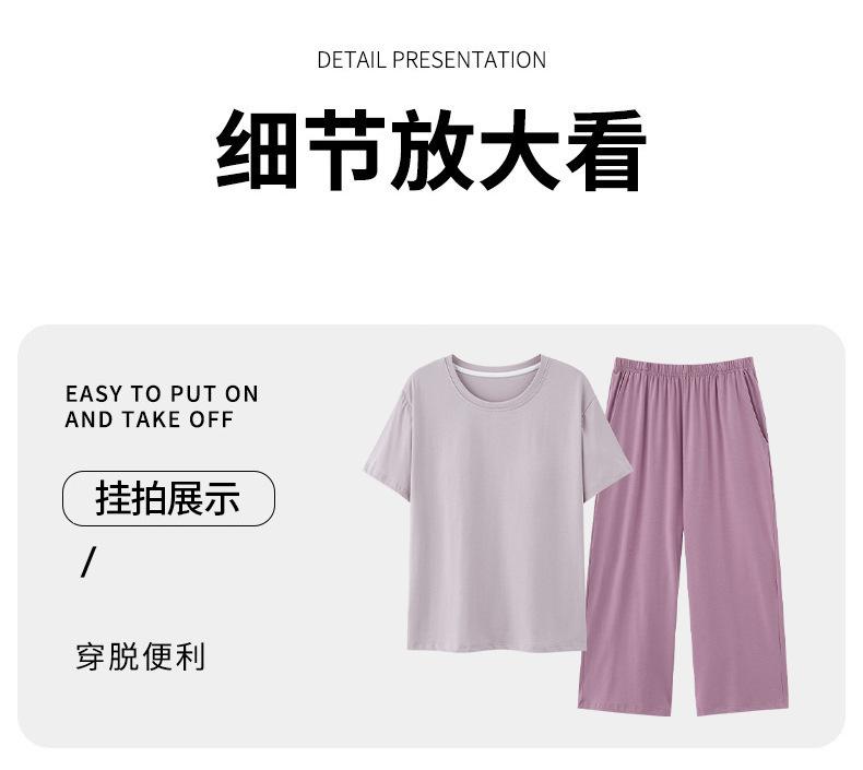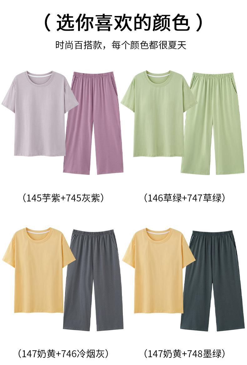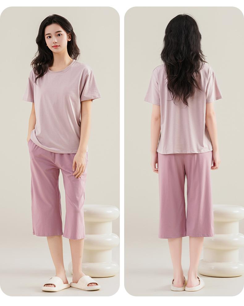 Pijama de Verano para Mujer, Fresco Modal de Manga Corta y Pantalón Capri, Cuello Redondo Holgado, Ropa de Casa Sencilla con Set de Almohadilla para el Pecho