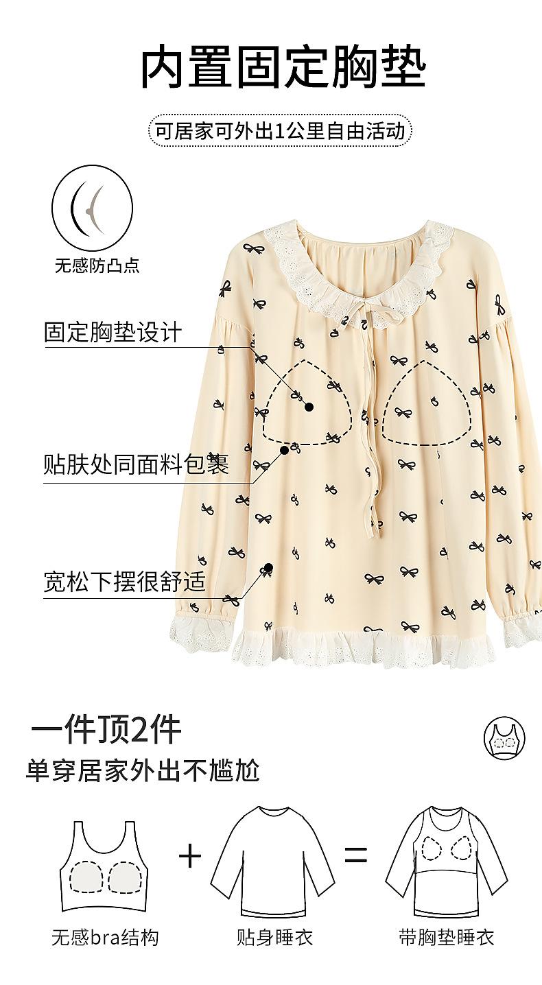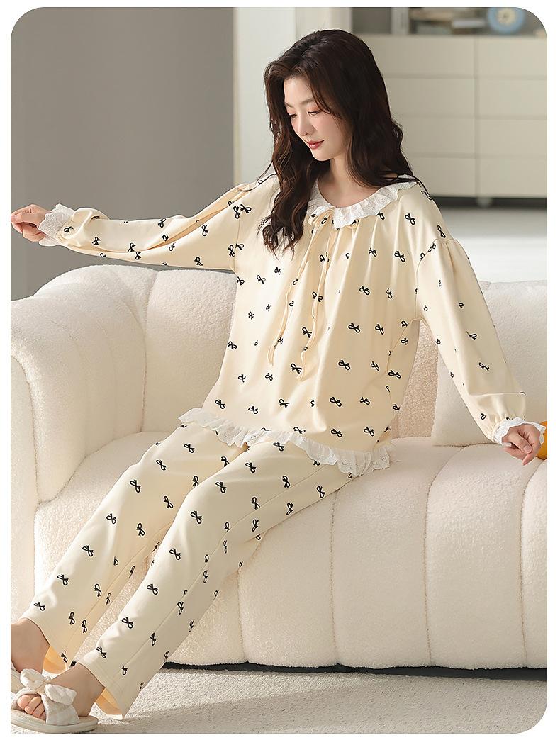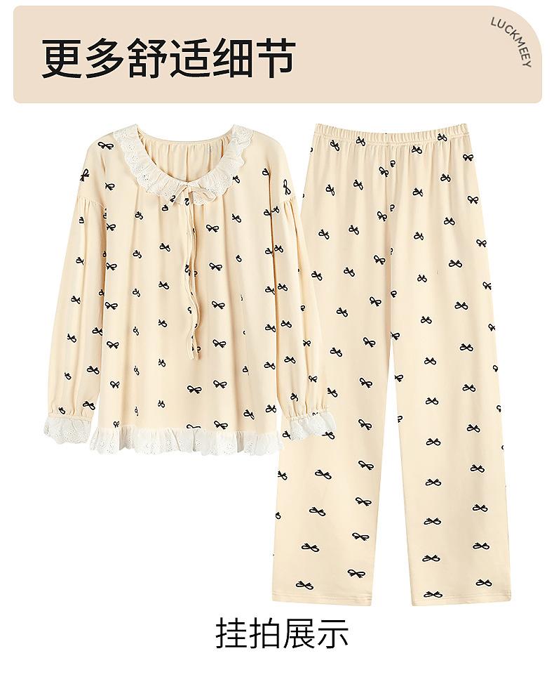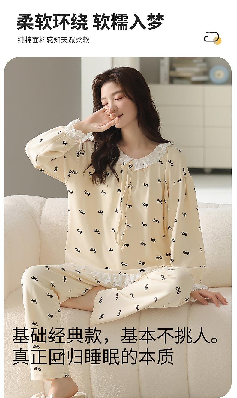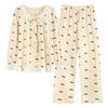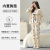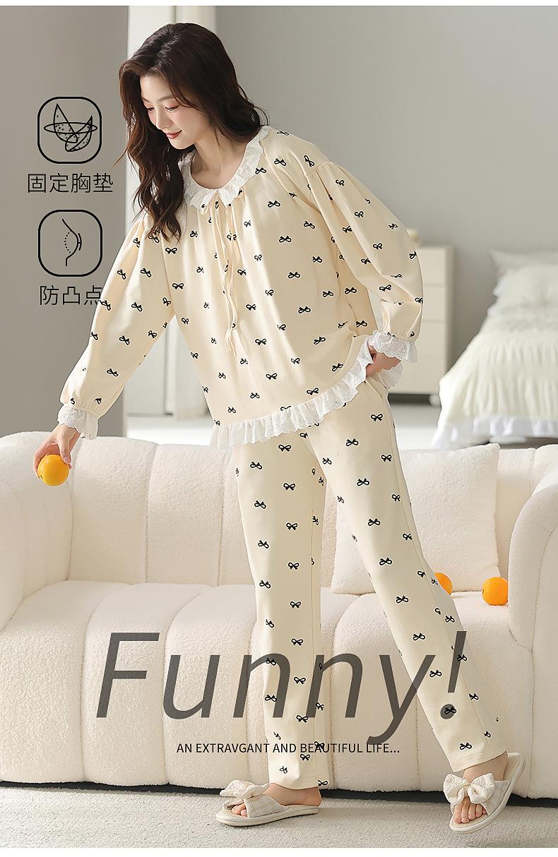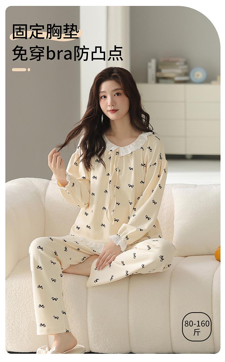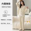 2025 Otoño Nuevo Manga Larga Pantalón Largo Algodón Puro Pijama de Mujer con Almohadilla en el Pecho Holgado Cómodo Ropa de Casa Dulce Conjunto