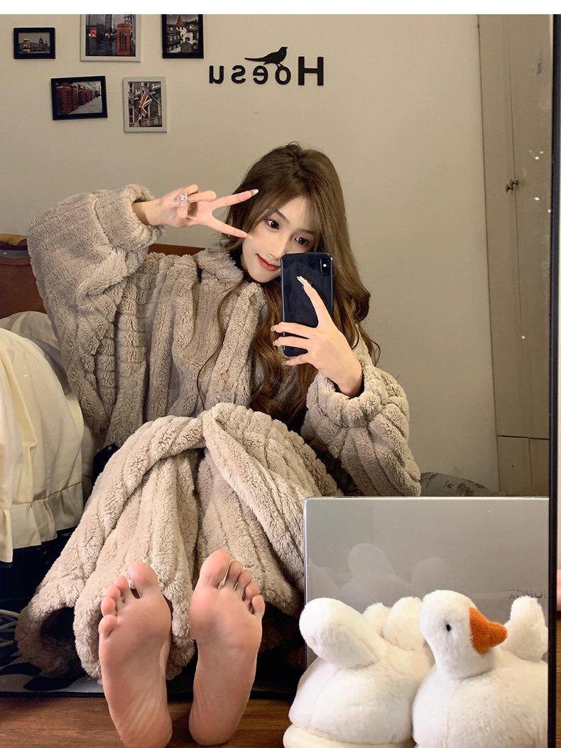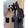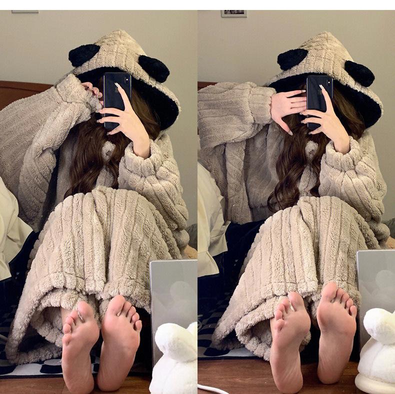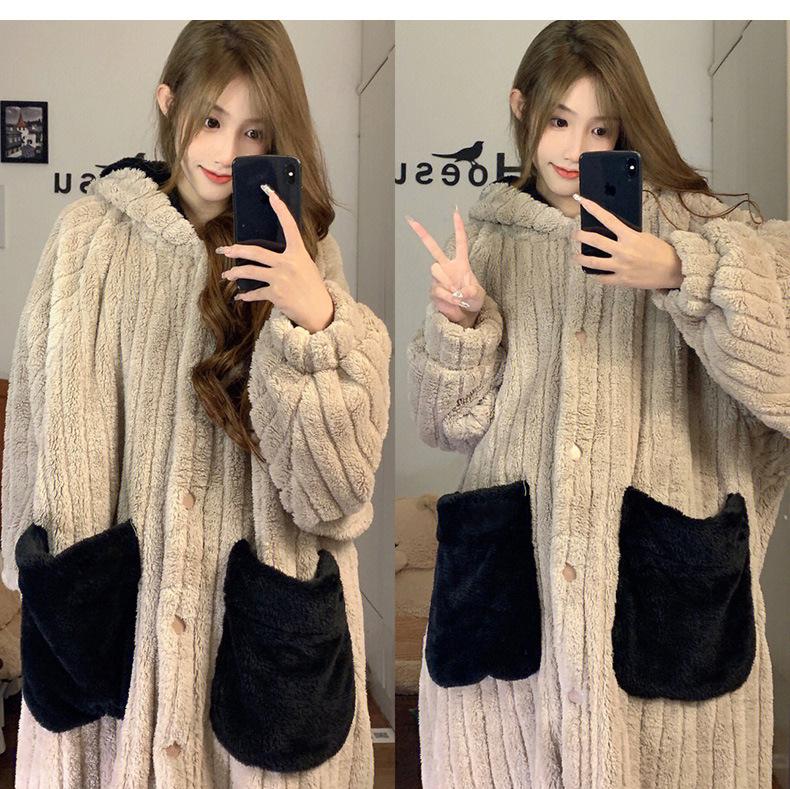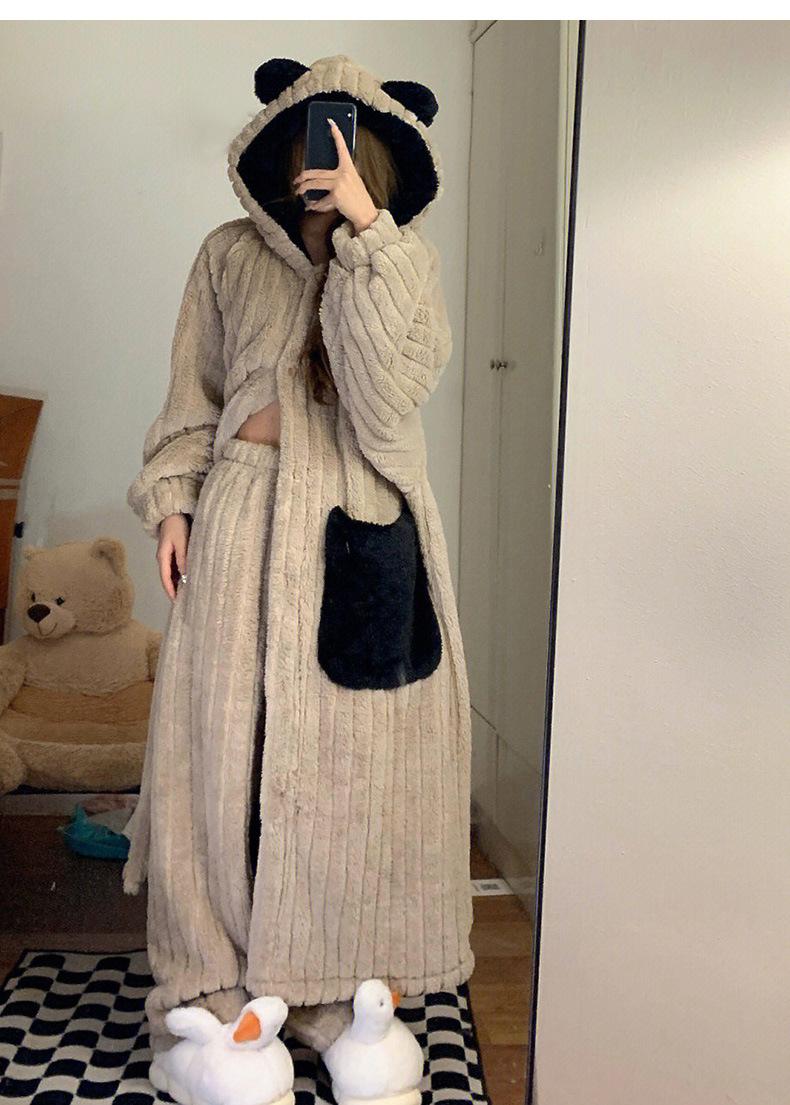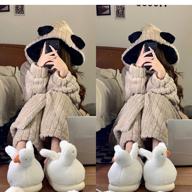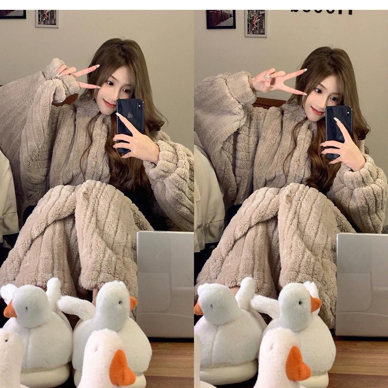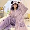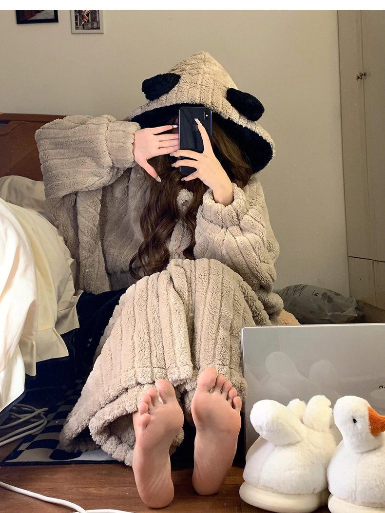 Pijama lindo con capucha de forro polar coral para niña, para mujer, invierno, nuevo, grueso, de felpa, camisón, pantalones de camisón, traje para el hogar