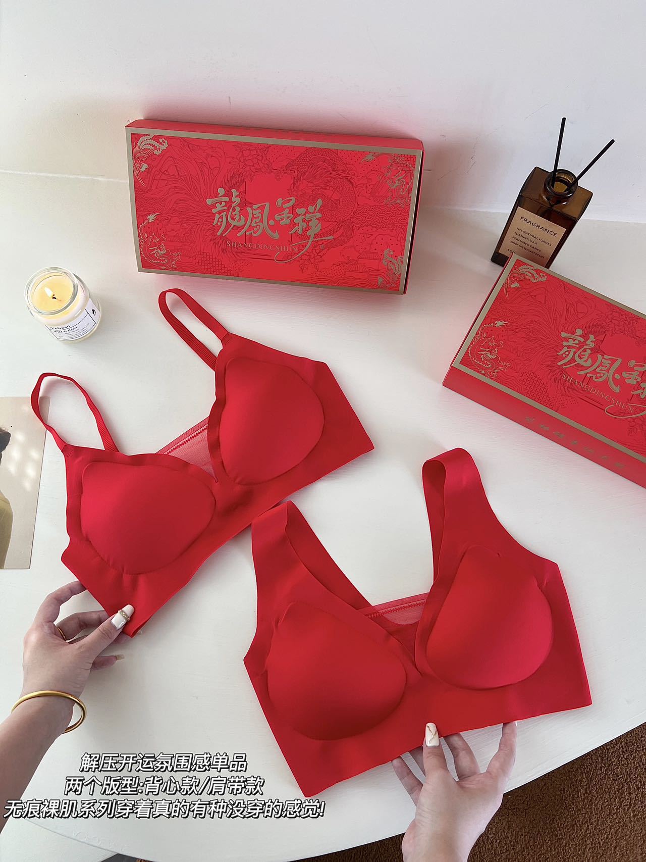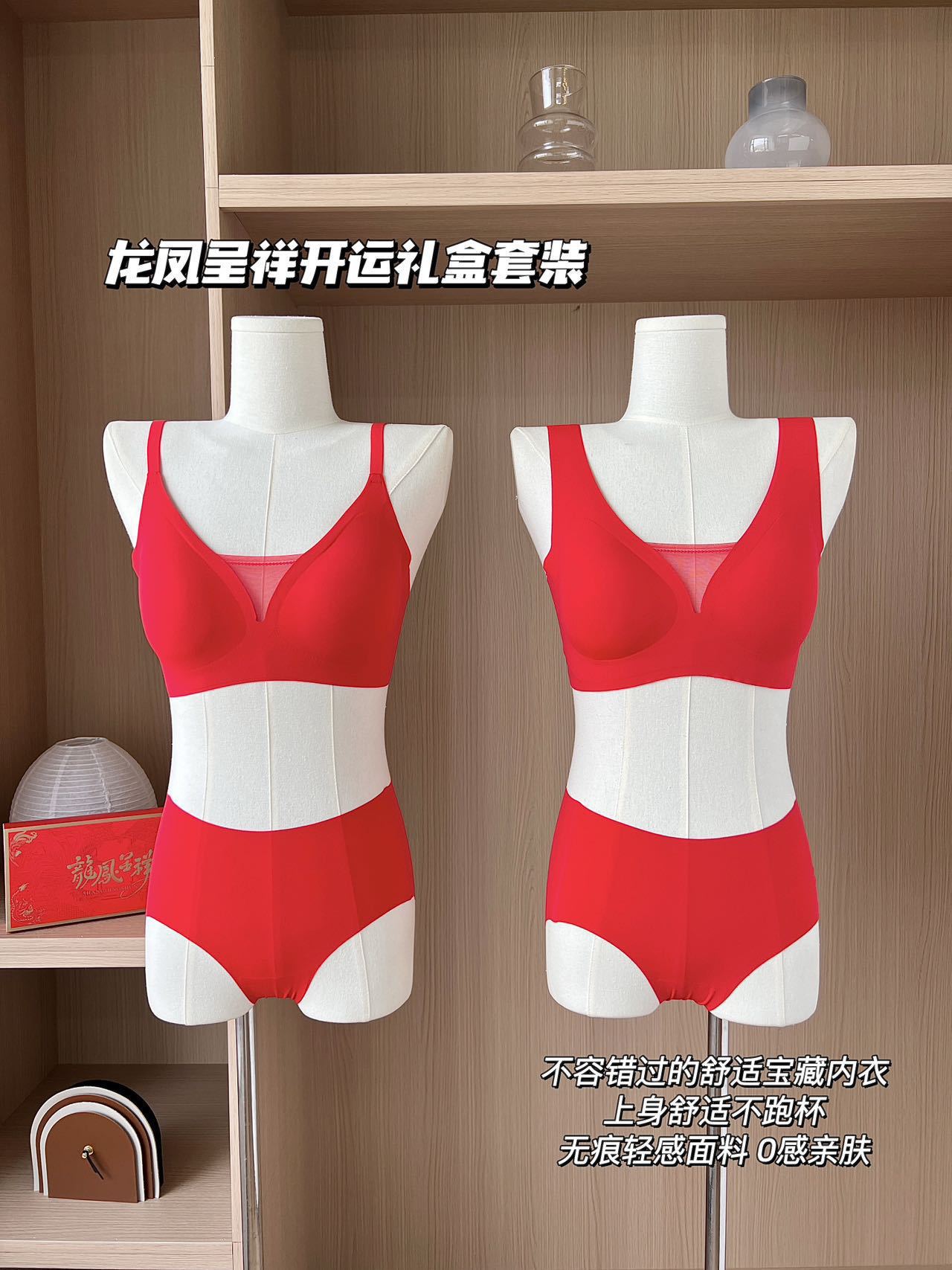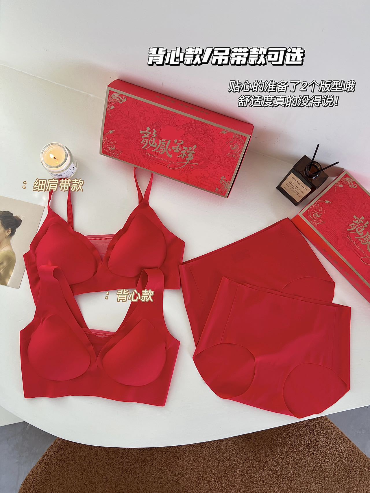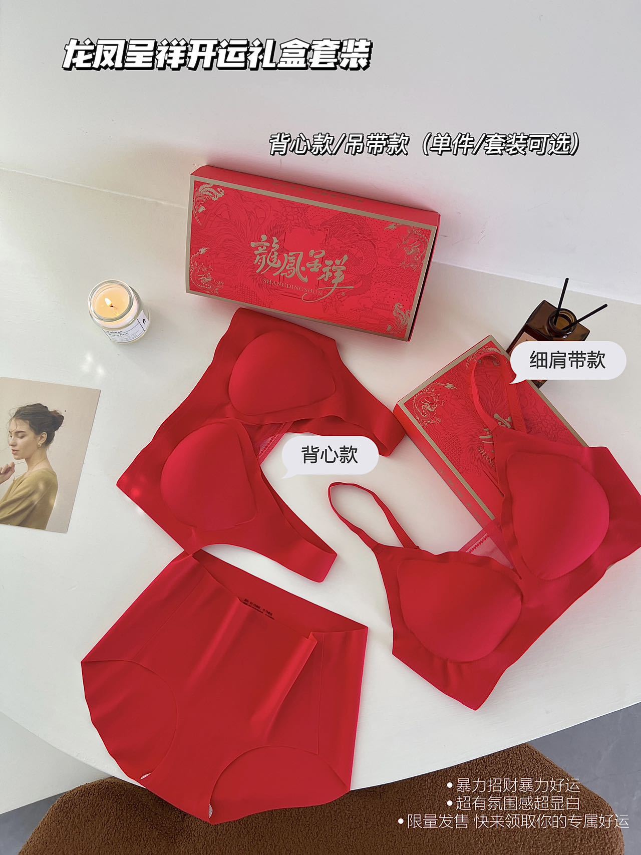 Conjunto de Ropa Interior Roja del Año del Zodíaco para Mujer, Año Nuevo, Boda, Buena Suerte, Reunión, Sin Costuras, Rojo, Francés, Sexy