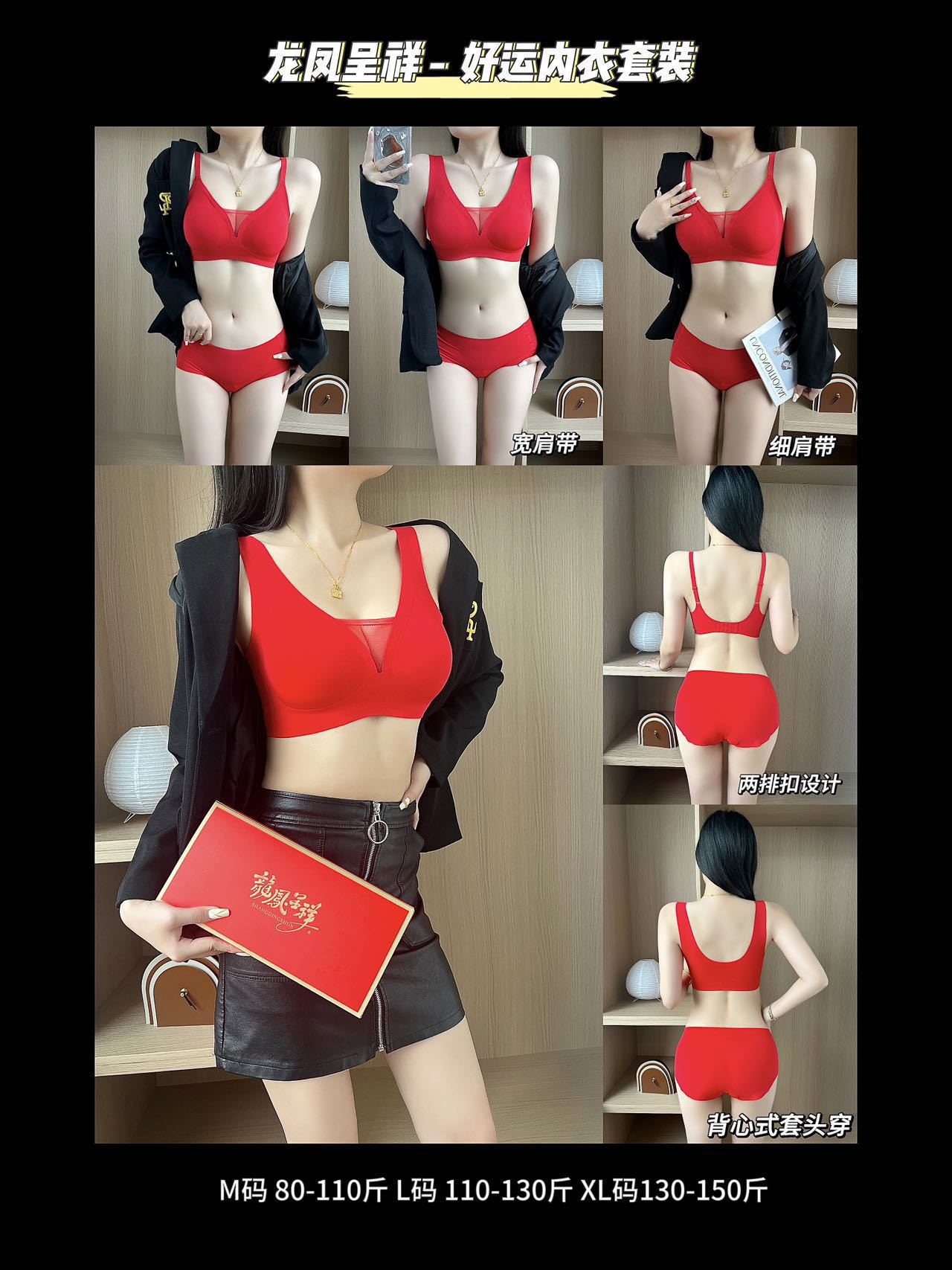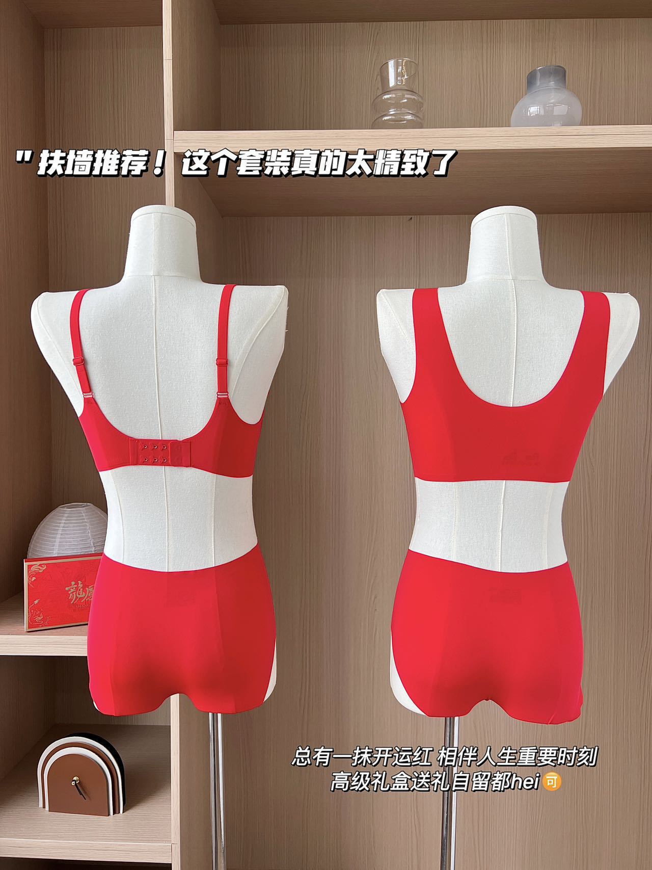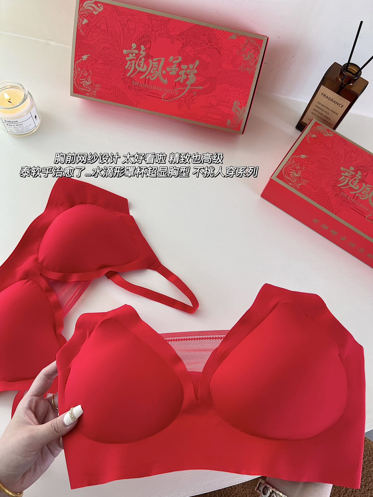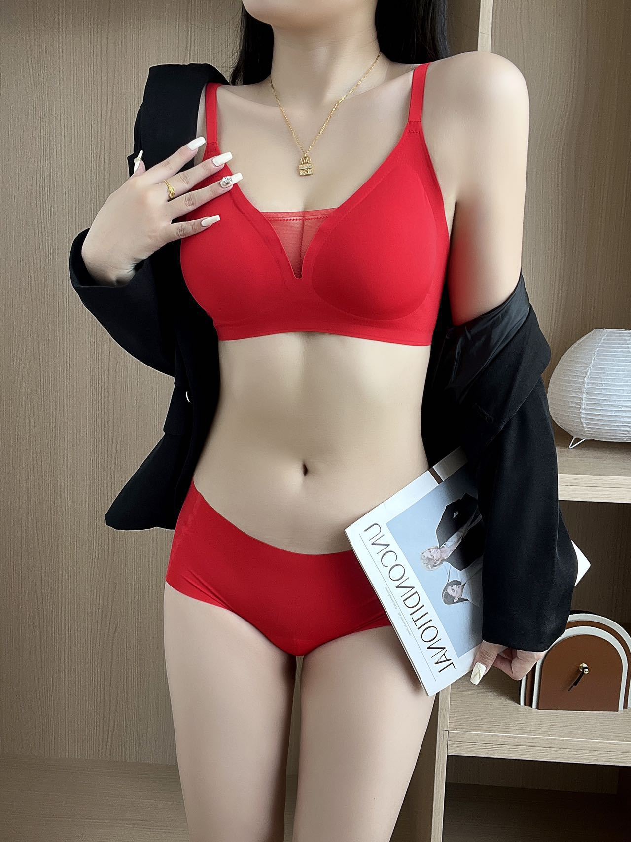 Conjunto de Ropa Interior Roja del Año del Zodíaco para Mujer, Año Nuevo, Boda, Buena Suerte, Reunión, Sin Costuras, Rojo, Francés, Sexy
