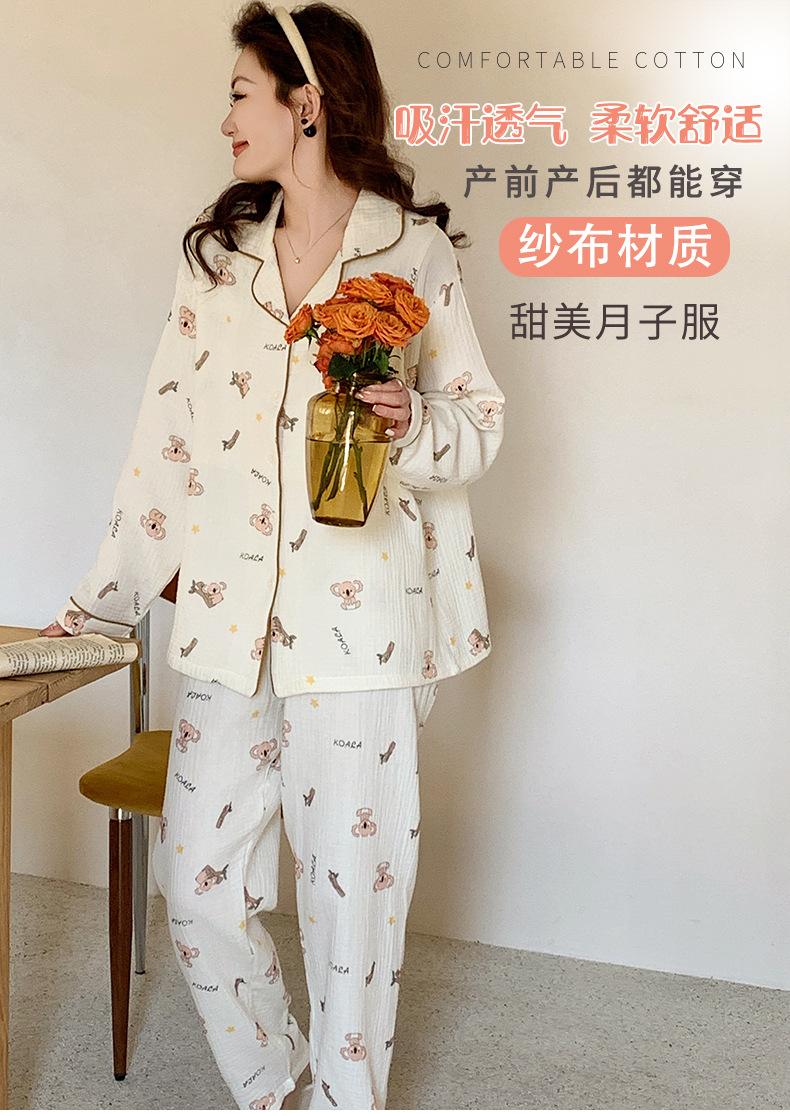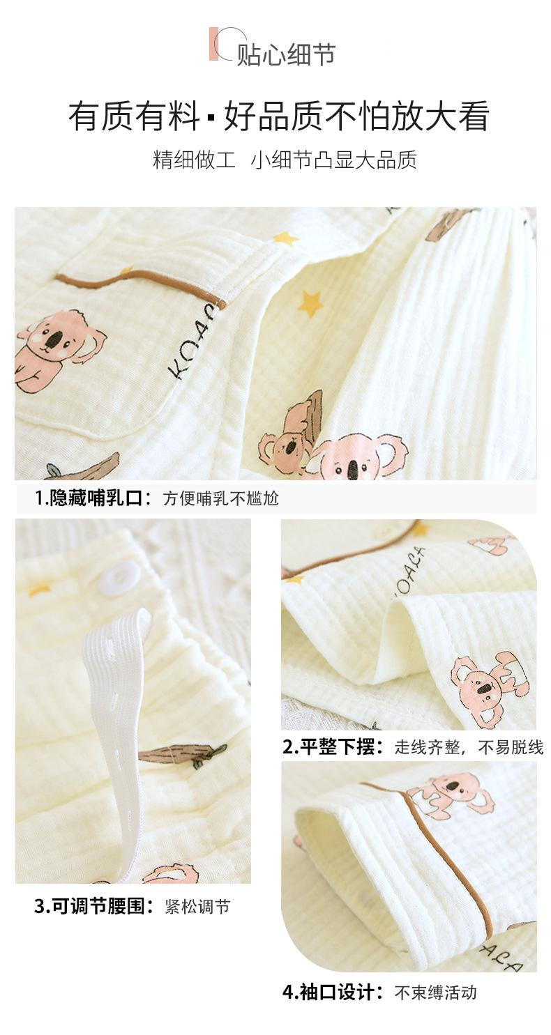 Feliz Luna 2025 Nuevo Estilo Algodón Puro Gasa Doble Capa Ropa de Maternidad Mujeres Verano Embarazada Lactancia Dulce Conjunto de Ropa para el Hogar