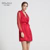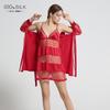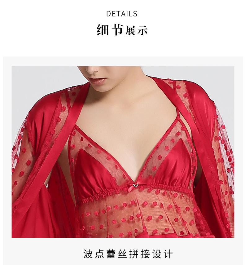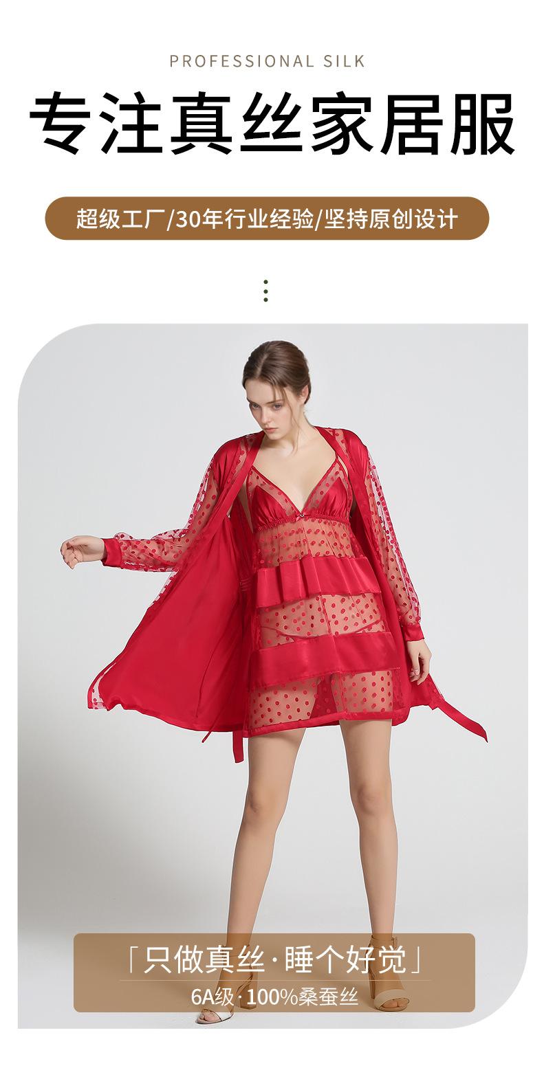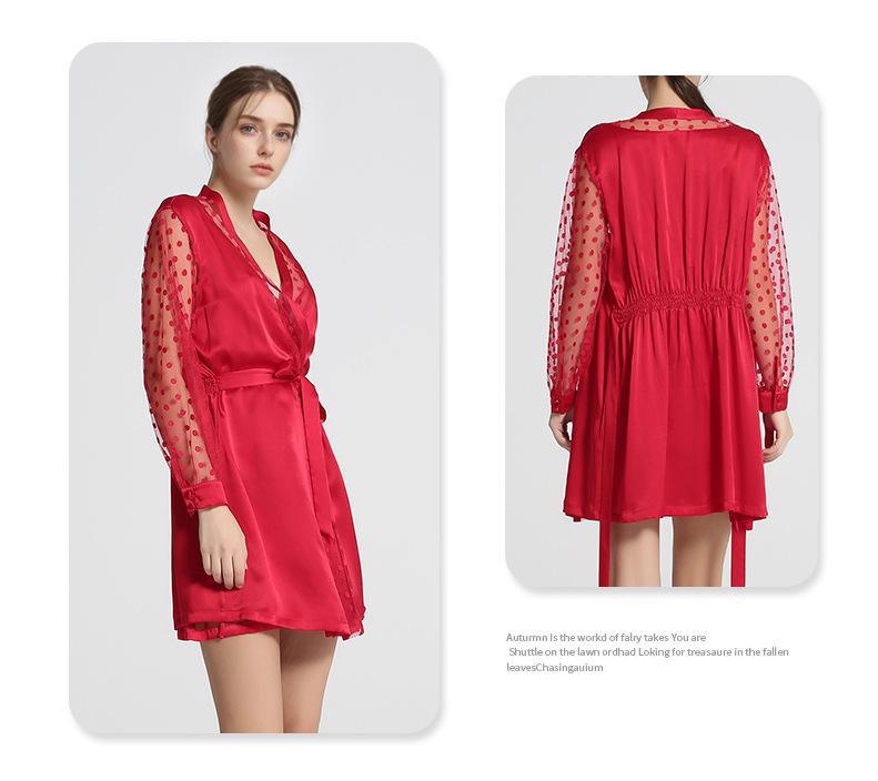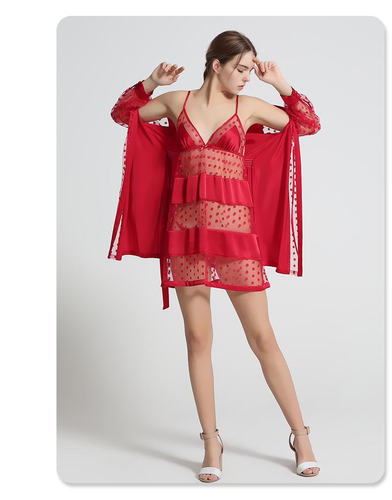 Verano Nuevo Sexy Transparente Seda Camisón Bata Conjunto de Dos Piezas 100% Seda de Morera Tirantes Finos Vestido Corto Conjunto Bata Mañanera