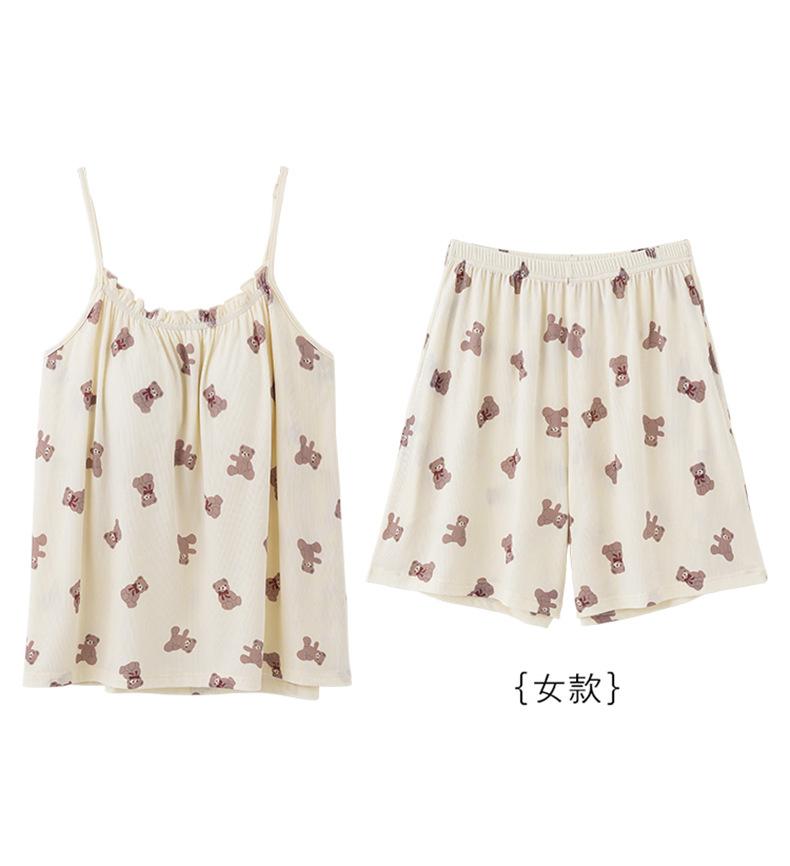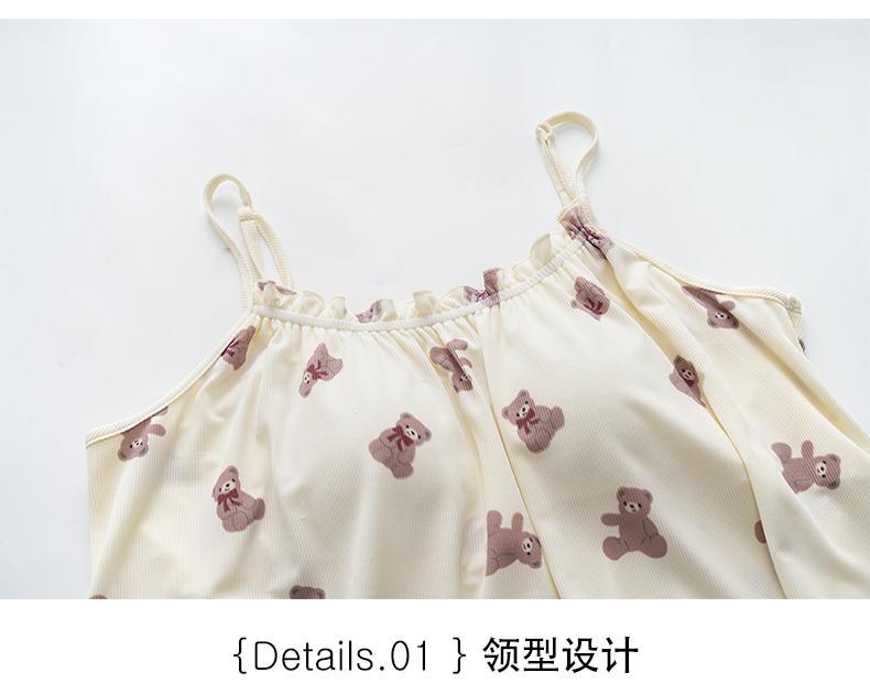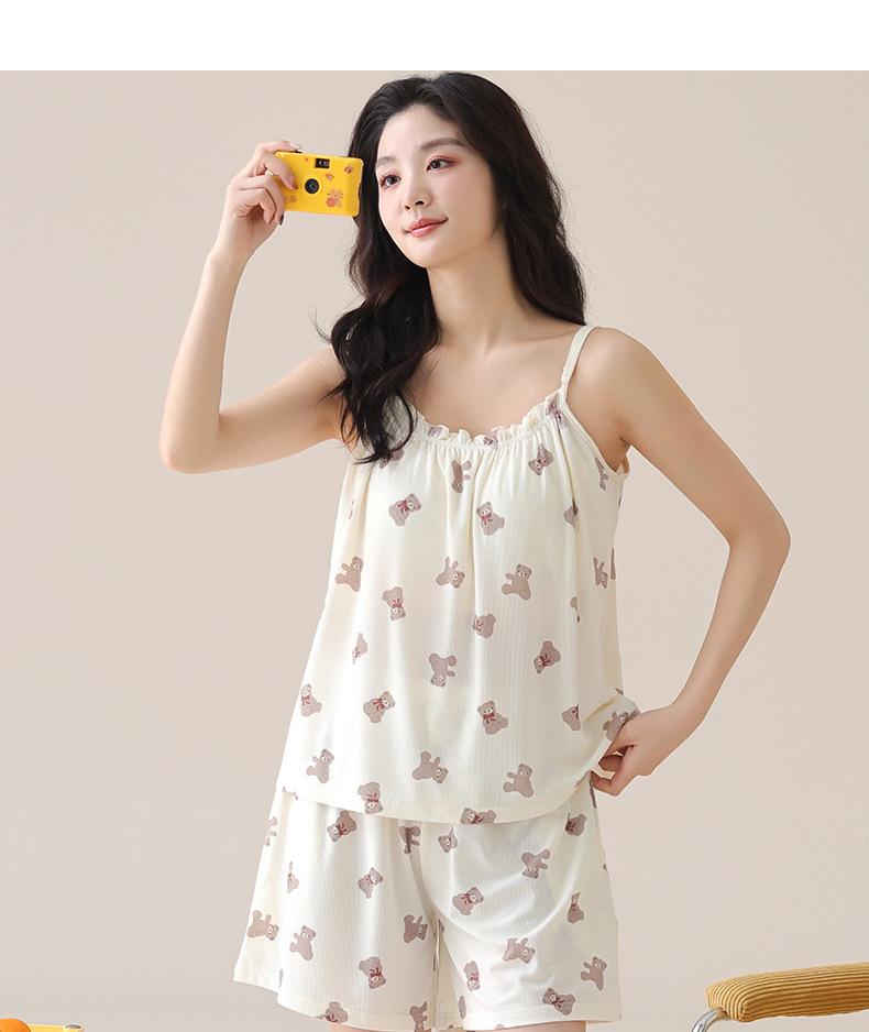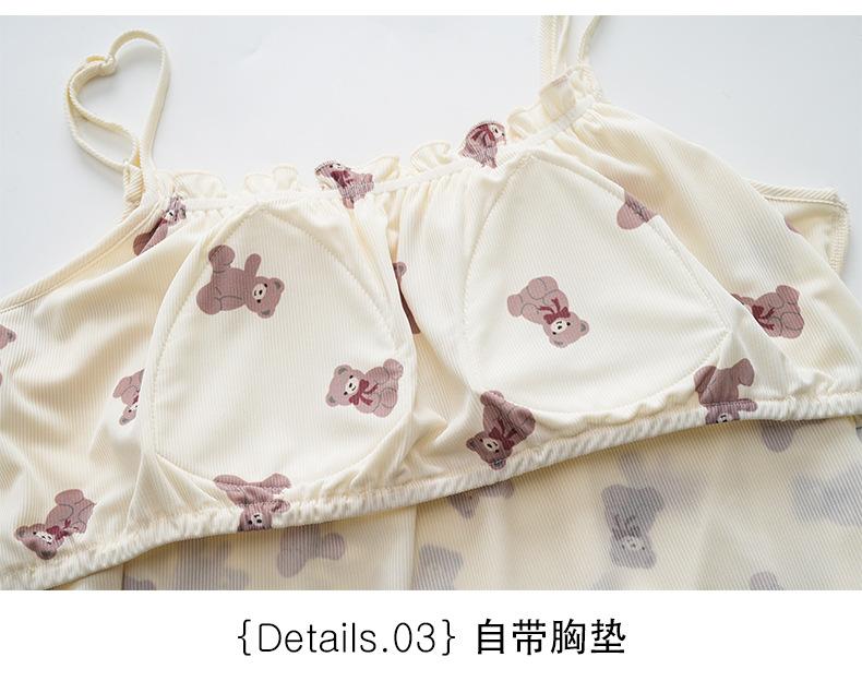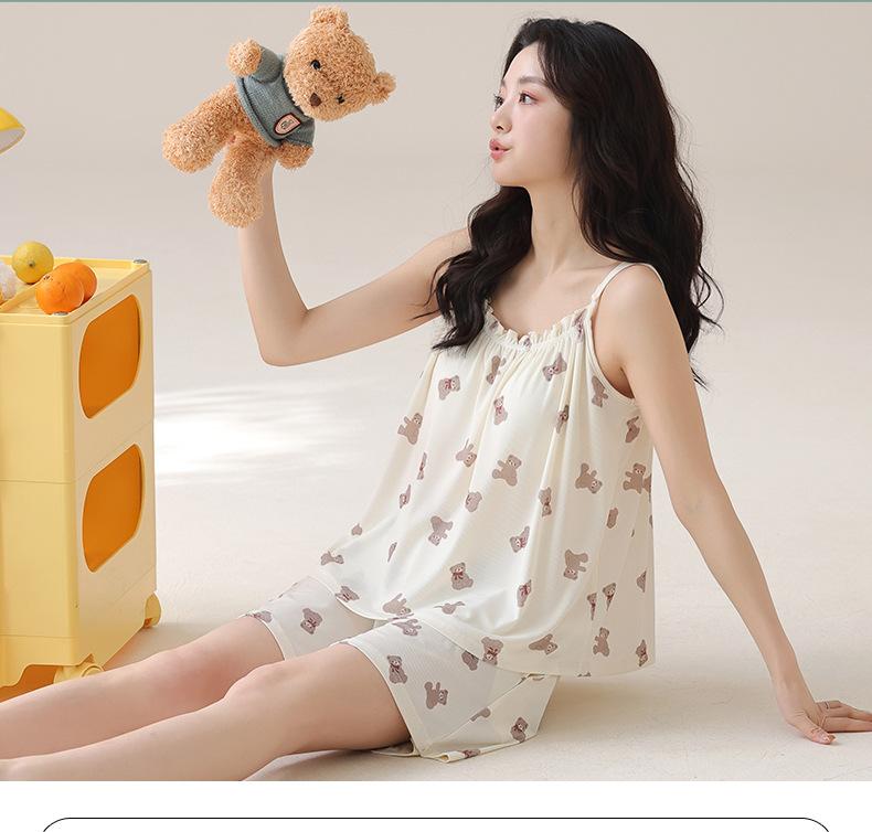 Pijamas Nuevos para Estar en Casa para Mujer Verano Oso Encaje Tirantes Transpirables Amigables con la Piel Cómodos Suaves Lindo Conjunto Estampado