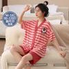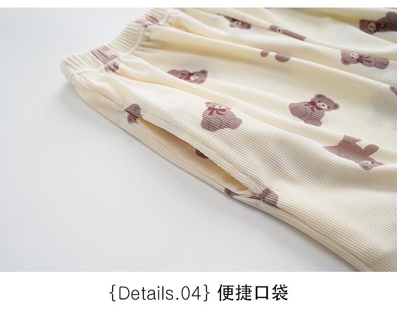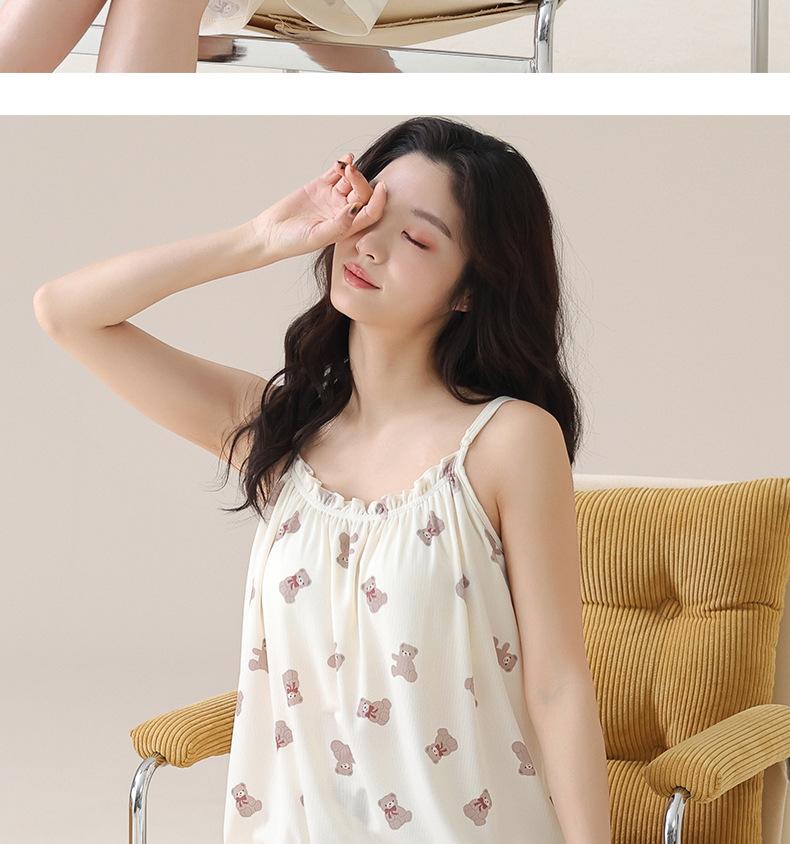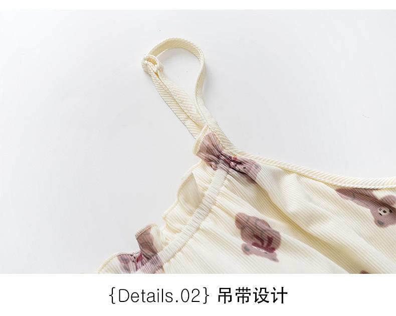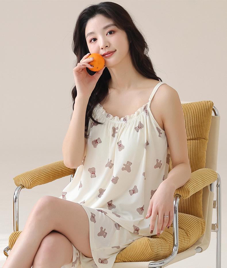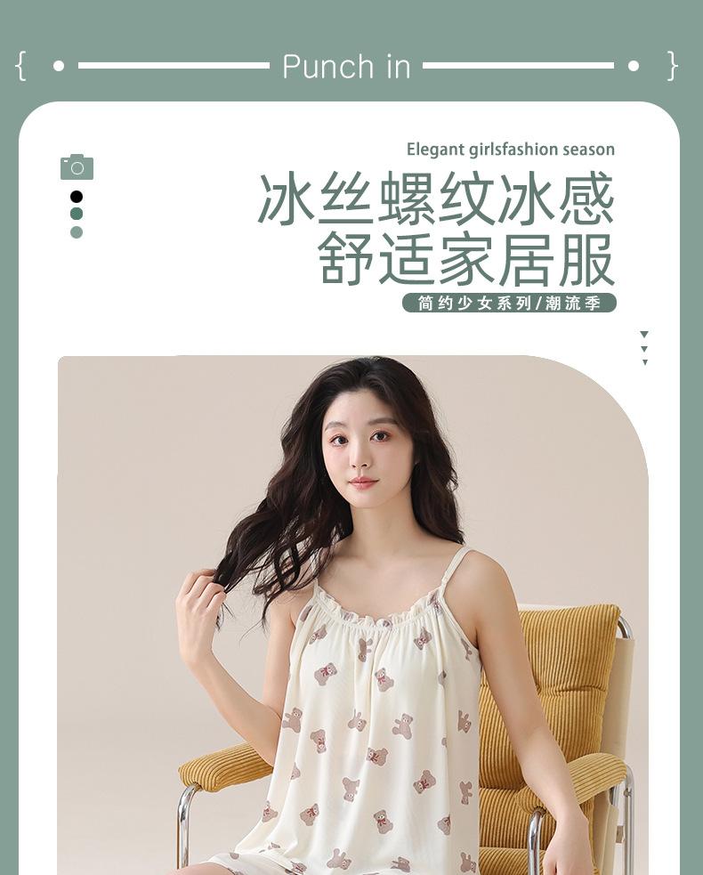 Pijamas Nuevos para Estar en Casa para Mujer Verano Oso Encaje Tirantes Transpirables Amigables con la Piel Cómodos Suaves Lindo Conjunto Estampado