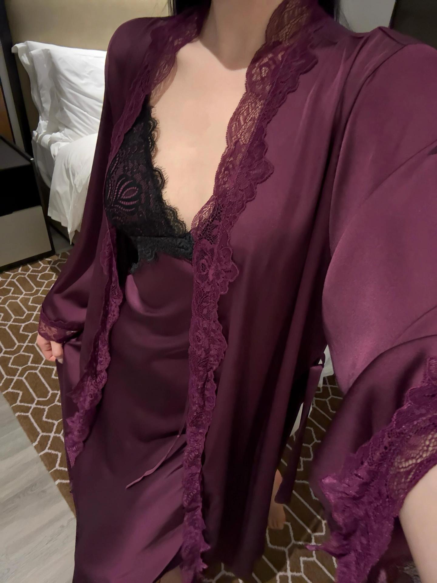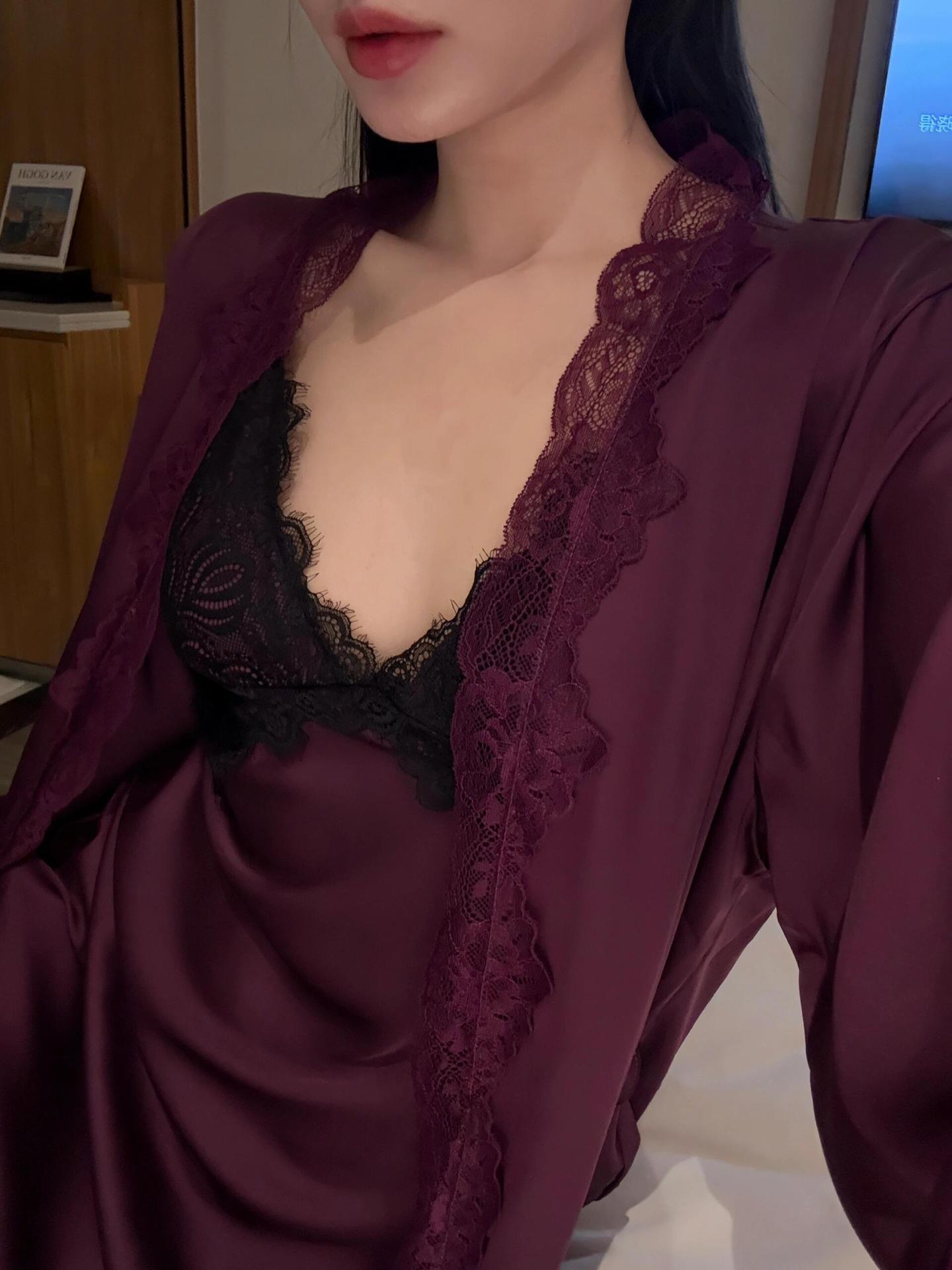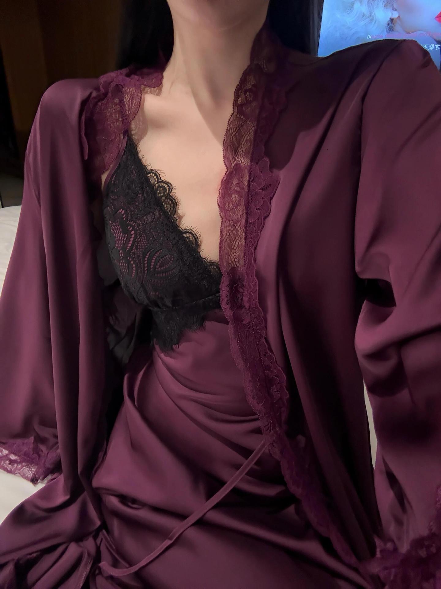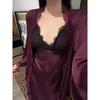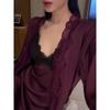 Deseo Puro Camisón de Tirantes de Encaje de Alta Gama sin Espalda para Mujer Verano Sexy Seda de Hielo Cárdigan Camisón Conjunto de Ropa para el Hogar