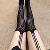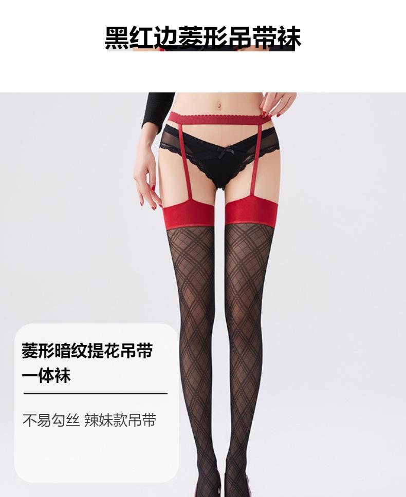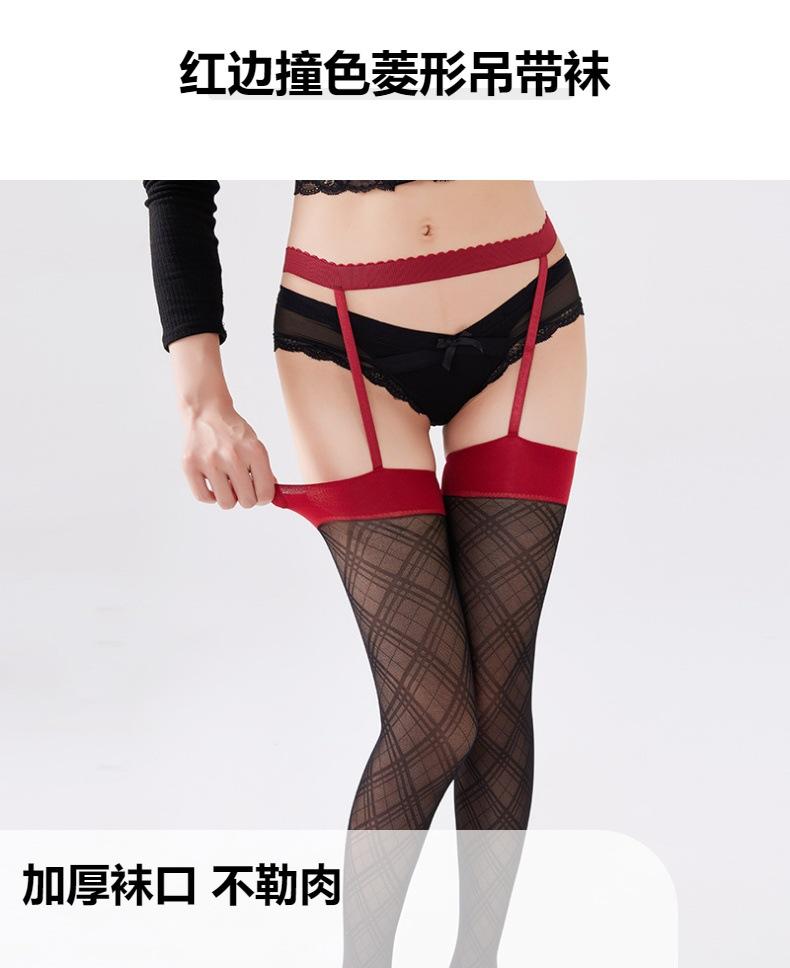 Medias Largas con Liguero de Borde Rojo con Patrón Argyle Medias Sexy para Chica Caliente Medias Negras Primavera y Otoño Subcultura Medias Altas hasta el Muslo con Liguero