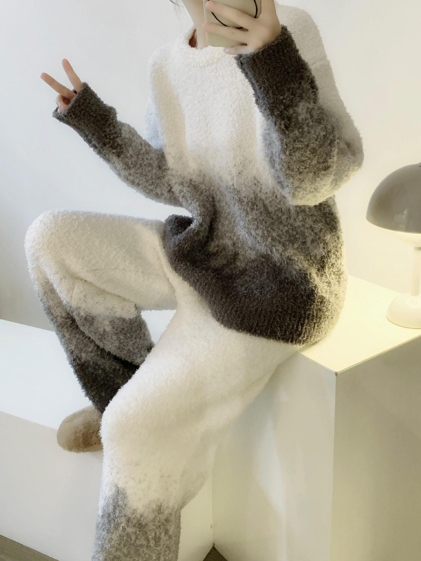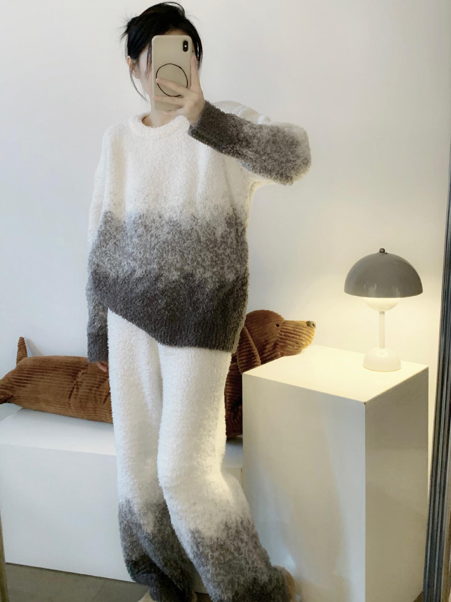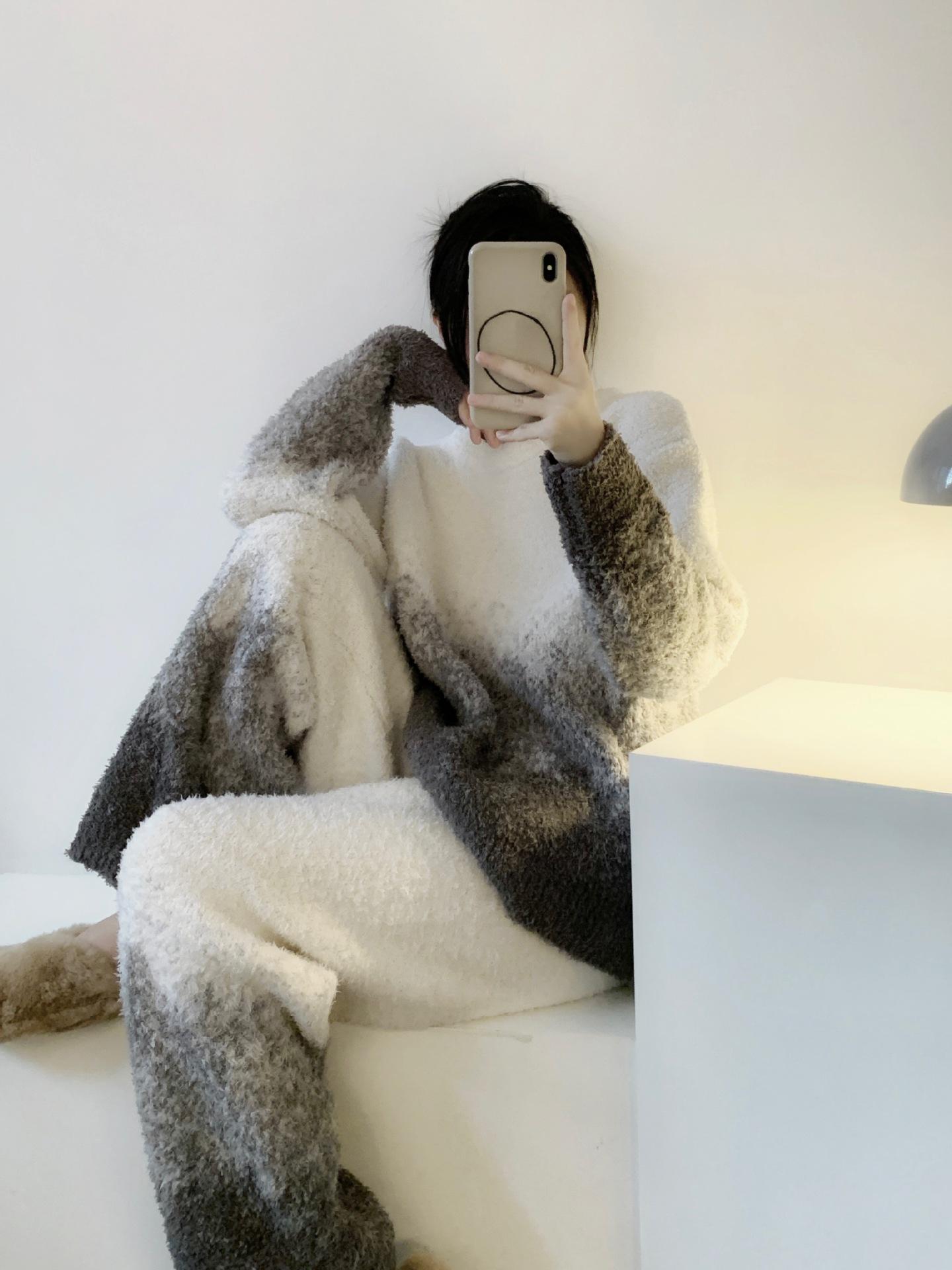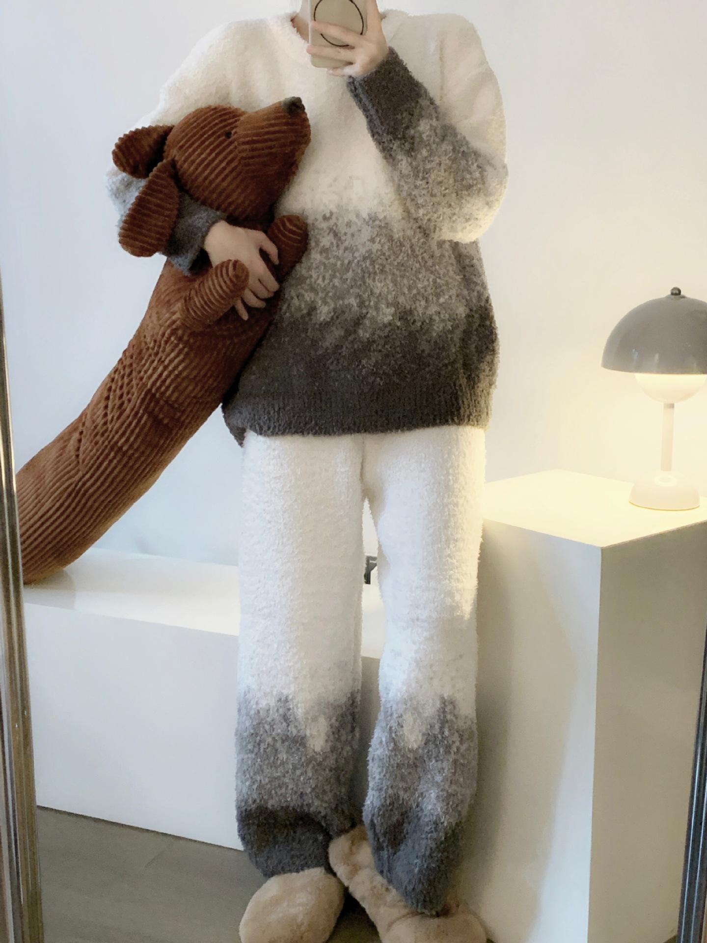 Ins estilo coreano de alta calidad color degradado mitad terciopelo pijama de mujer invierno nuevo engrosado felpa tejido traje de ropa para el hogar