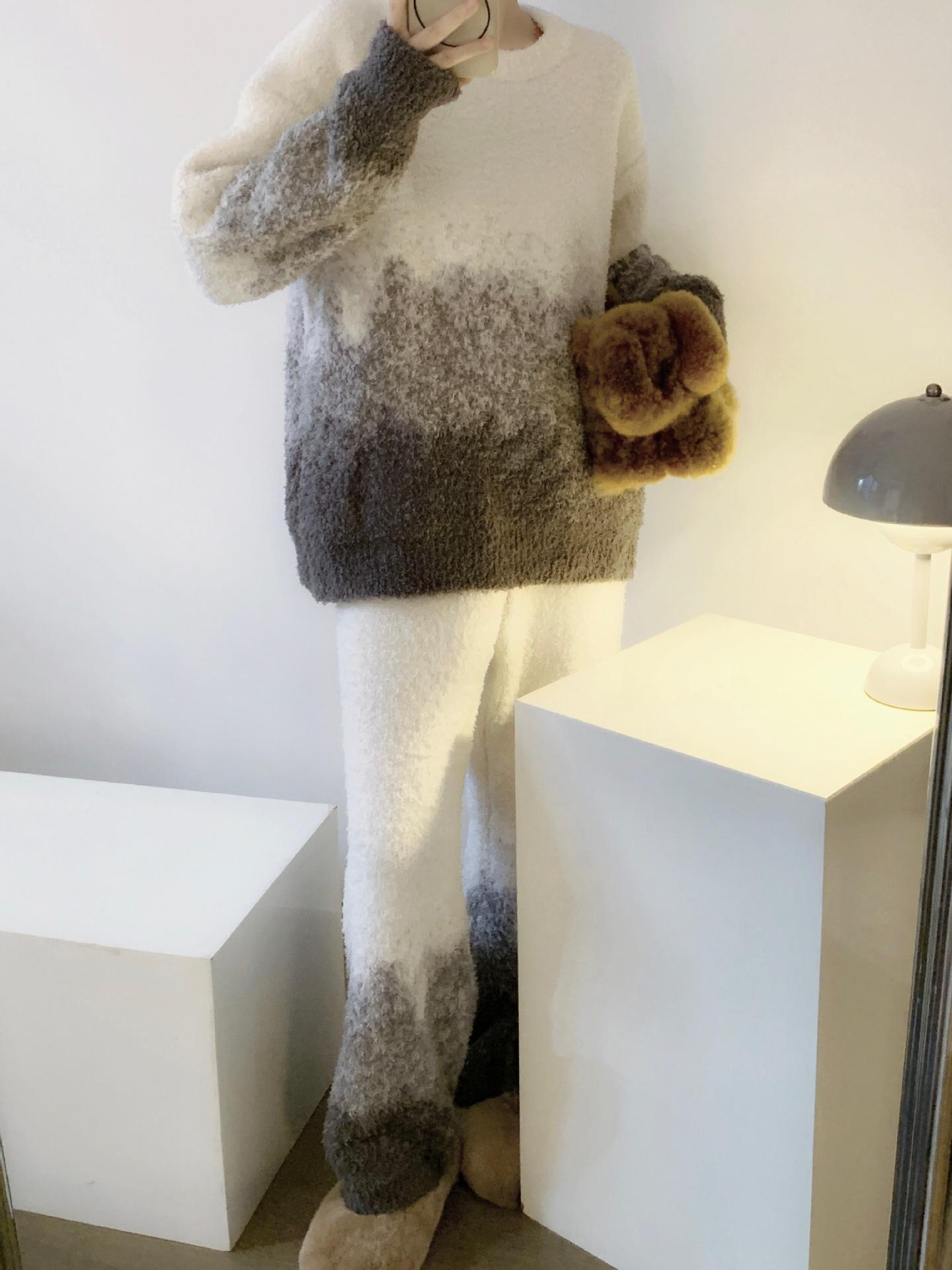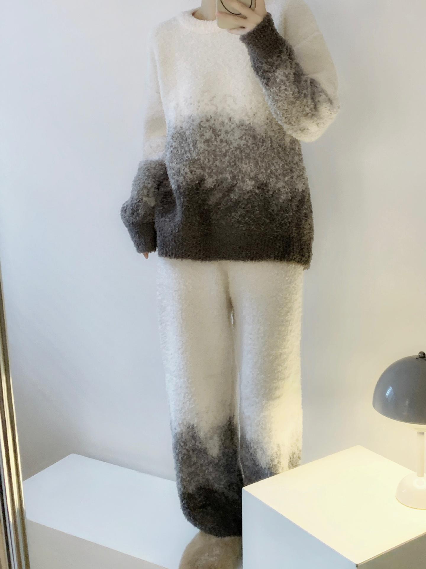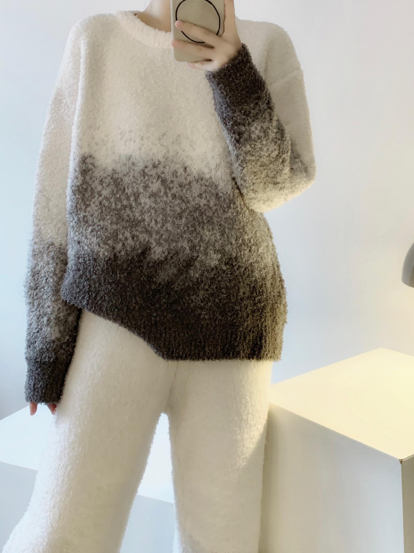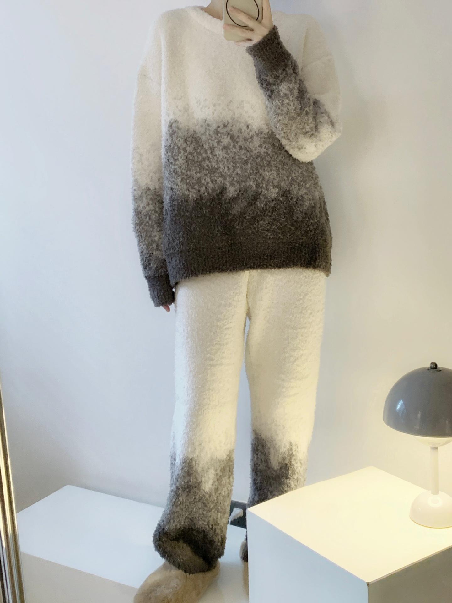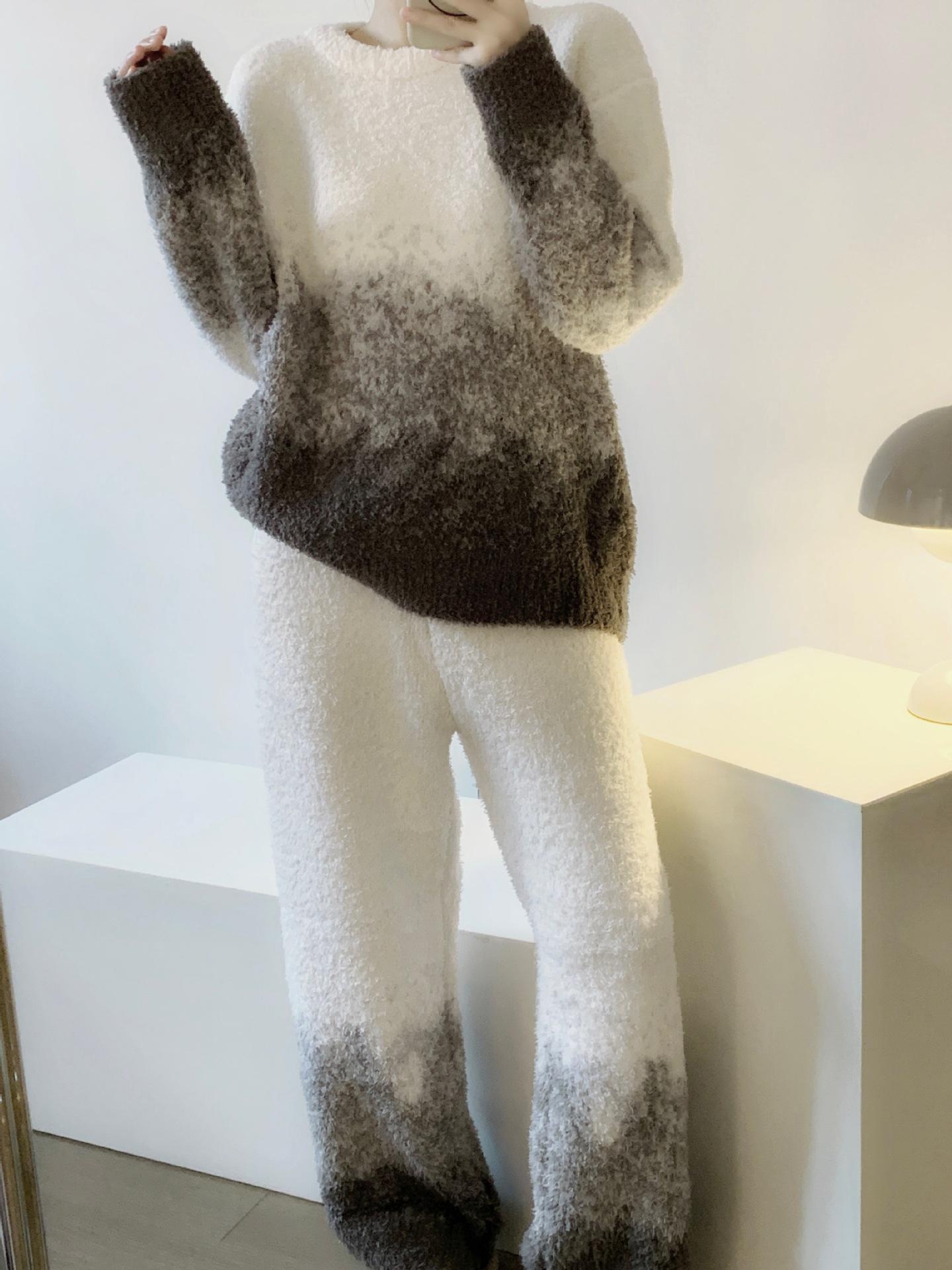 Ins estilo coreano de alta calidad color degradado mitad terciopelo pijama de mujer invierno nuevo engrosado felpa tejido traje de ropa para el hogar