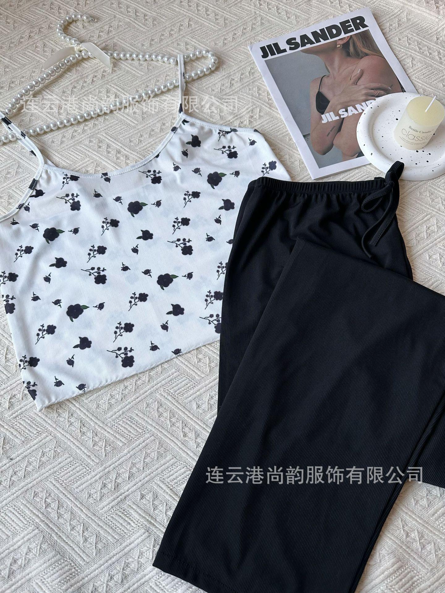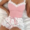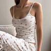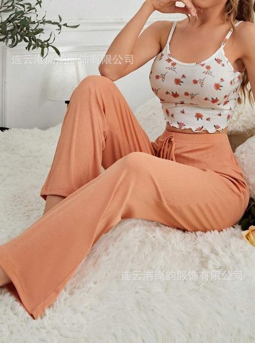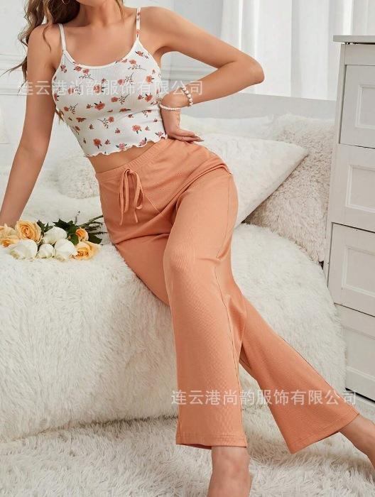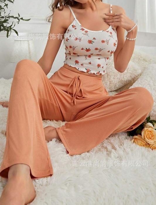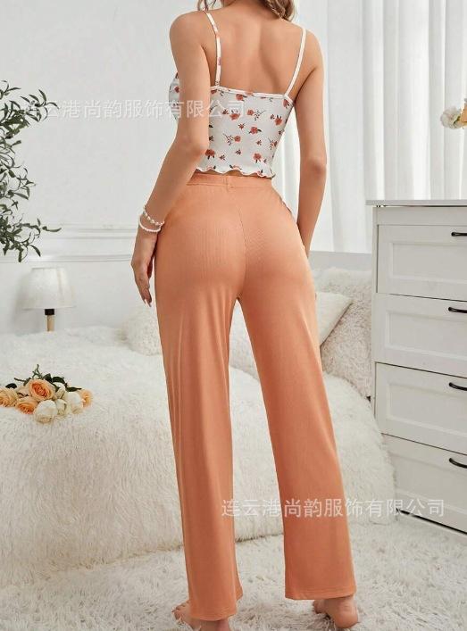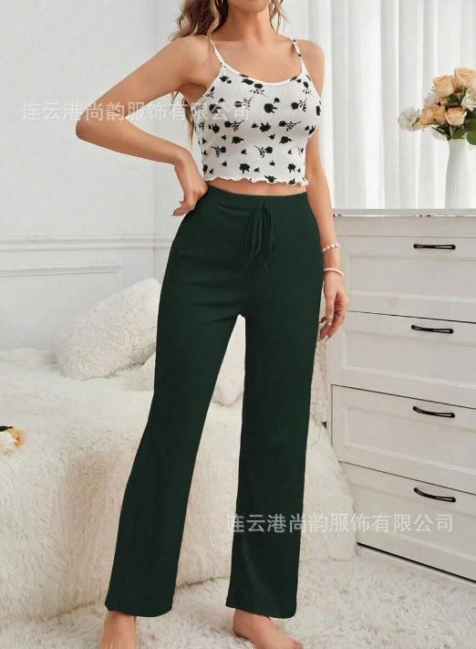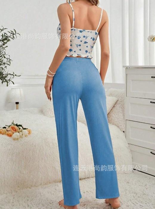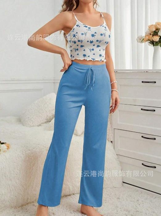 Camisola de Encaje Fino Transfronteriza Pantalones Largos Pijama Conjunto de Dos Piezas para Mujer Ropa Cómoda para el Hogar Nuevo Encaje Europeo y Americano