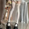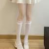 Calcetines Altos Blancos Lolita de Verano Delgados de Terciopelo Calcetines Altos hasta el Muslo Encaje Lazo Medias de Pura Lujuria
